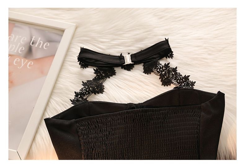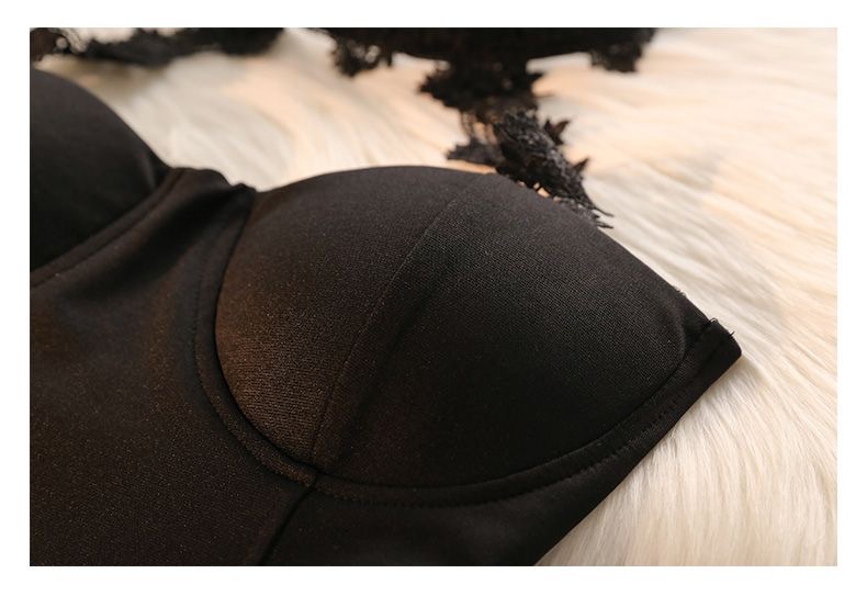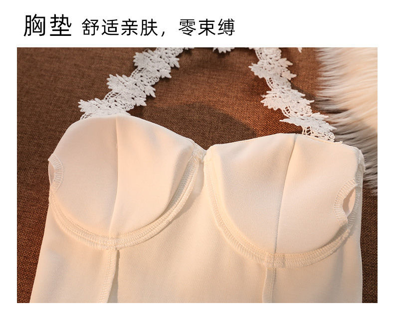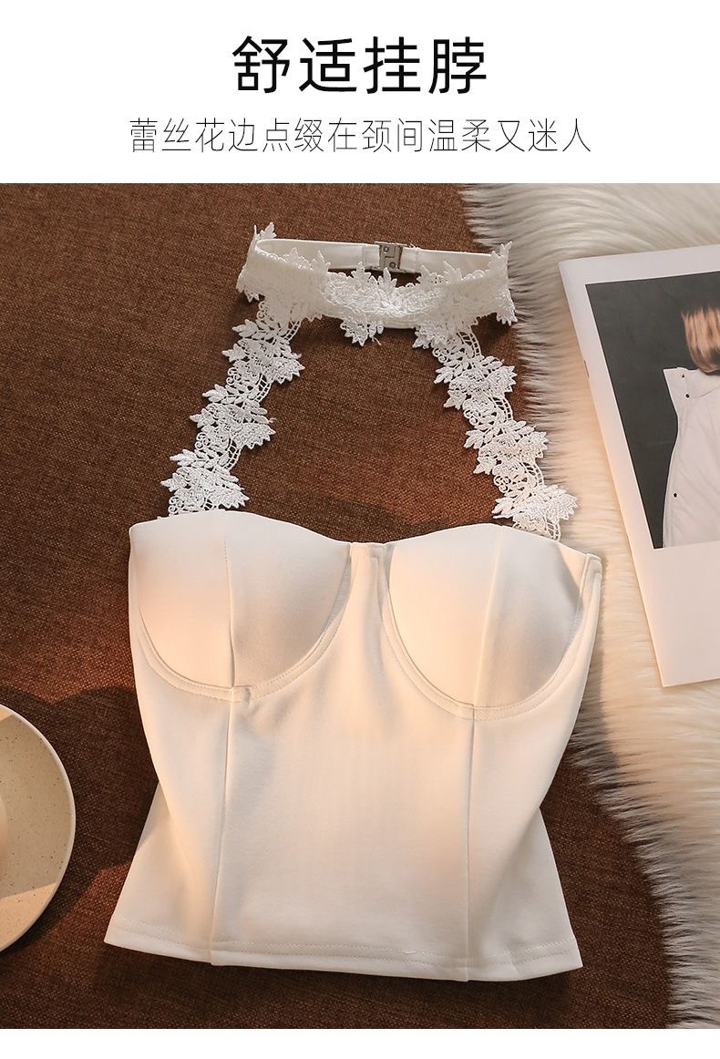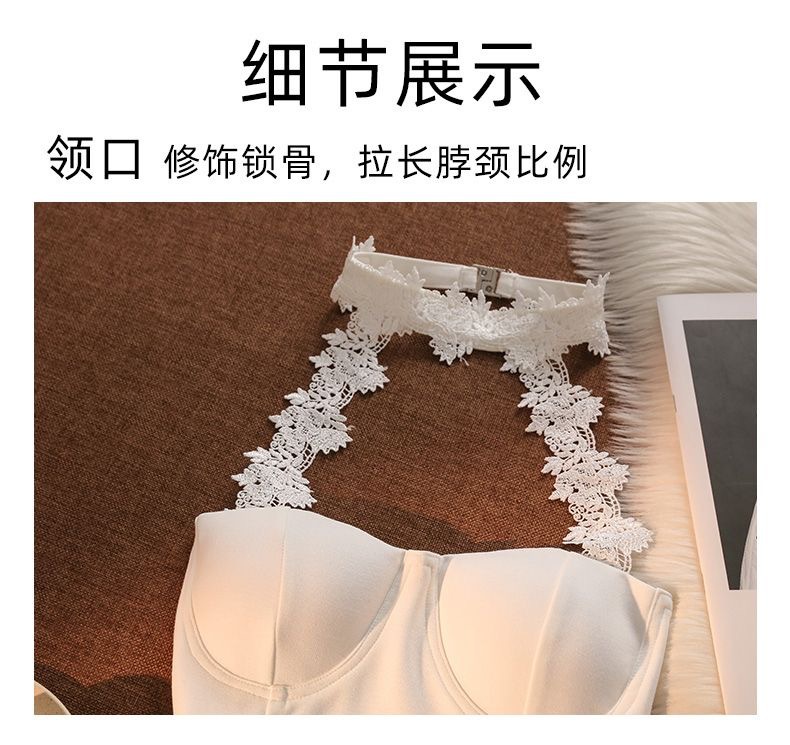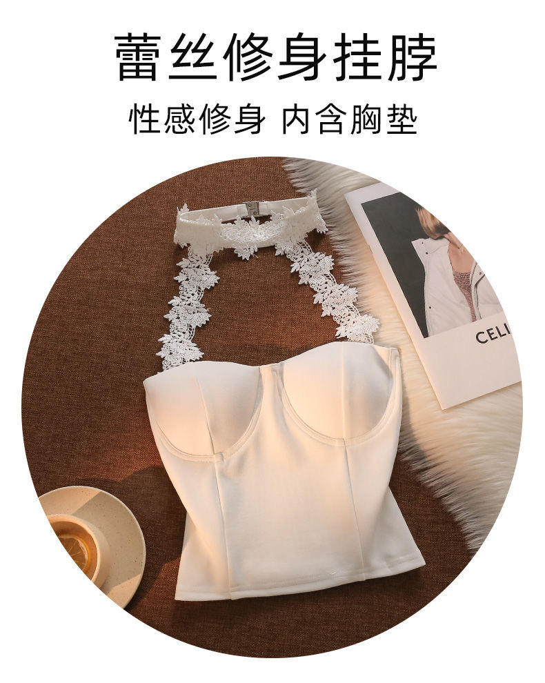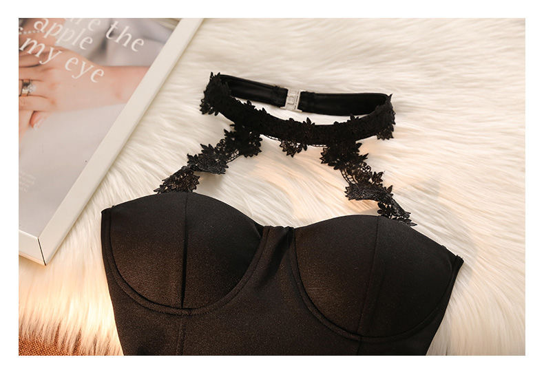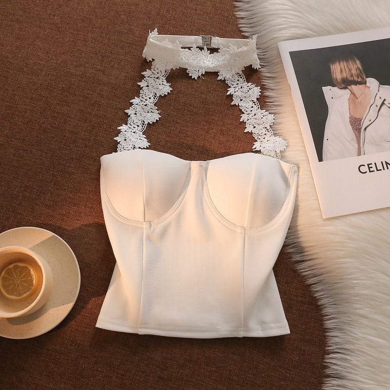 섹시한 스파이스 소녀 조끼 가슴 패드 블랙 레이스 넥 탑 슬림 핏 외부 착용 짧은 슬링 레이스 베이스