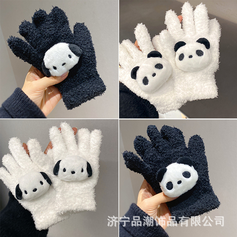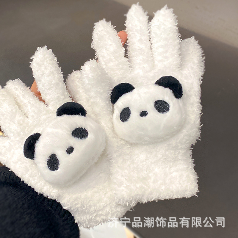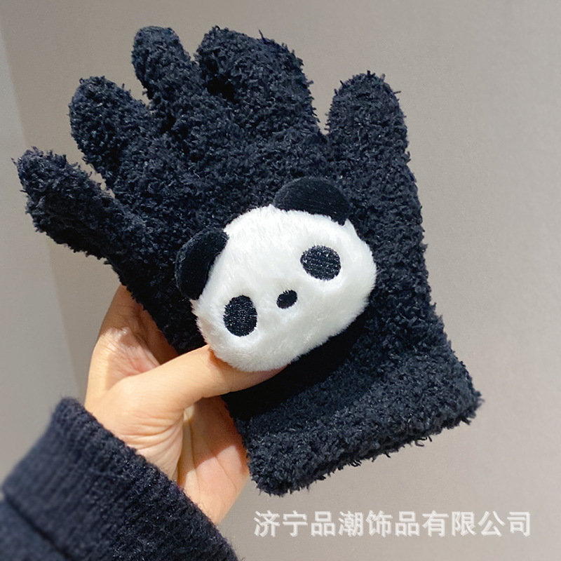 흑백 산호 양털 귀여운 팬더 봉제 장갑 학생 남녀 가을 커플 겨울 따뜻한 손가락 장갑을 타고 학생스토어 가기