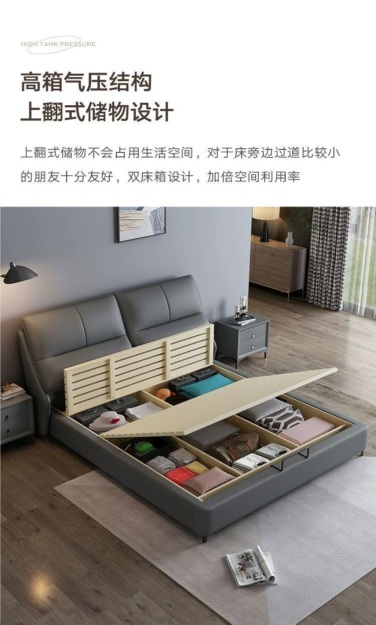 이탈리아 빛 고급 더블 침대 침실 편안한 싱글 더블 침대 현대 간단한 모든 단단한 나무 1.5 m 공기 압력 부드러운 침대스토어 가기