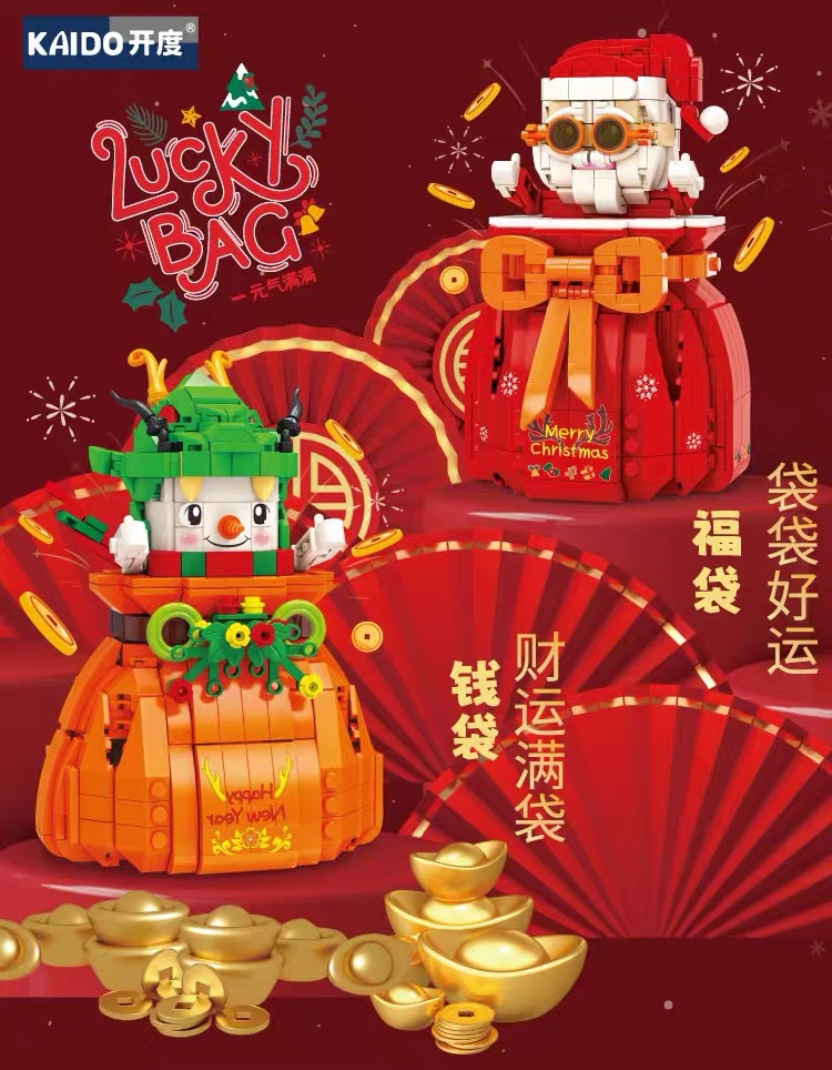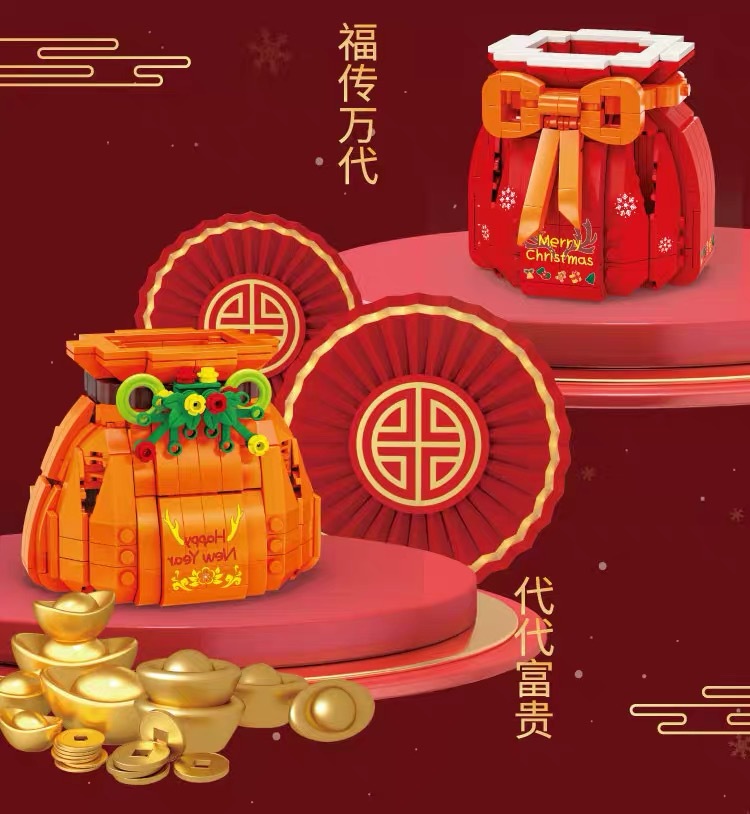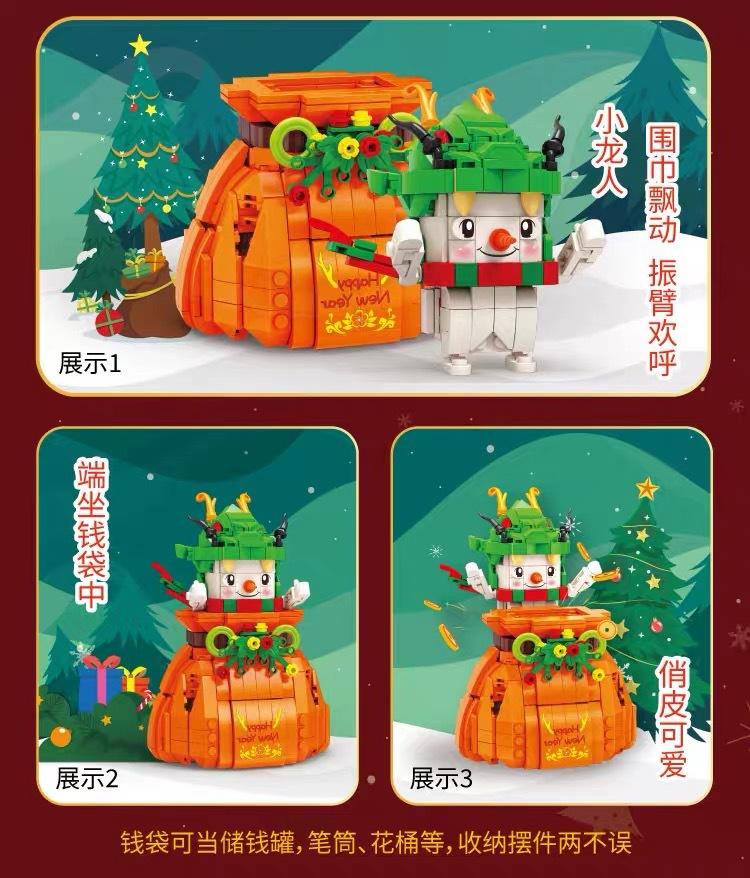 신제품 행운의 가방 빌딩 블록 크리스마스 테마 창조적 인 펜 홀더 Guochao Wenchuang 장식품 오프닝 99010스토어 가기