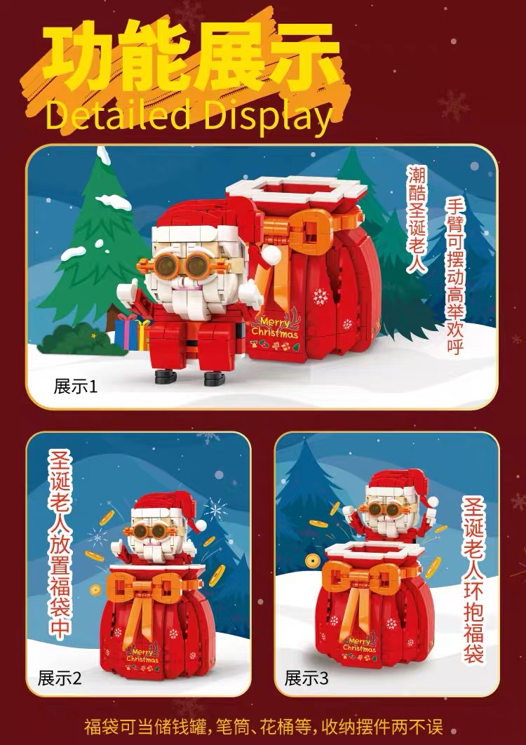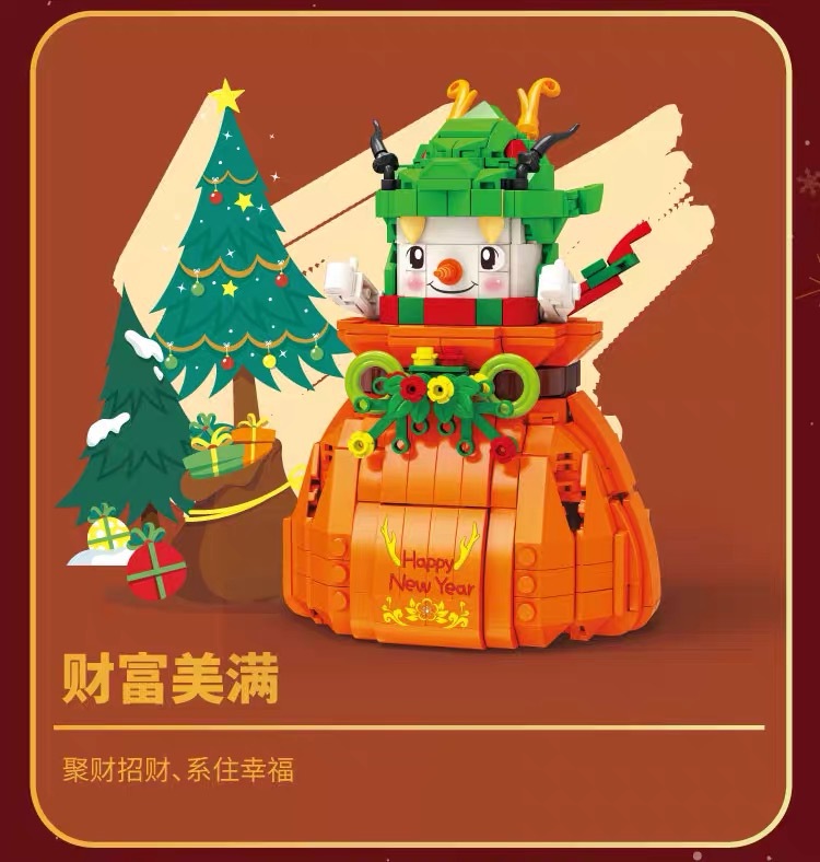 신제품 행운의 가방 빌딩 블록 크리스마스 테마 창조적 인 펜 홀더 Guochao Wenchuang 장식품 오프닝 99010