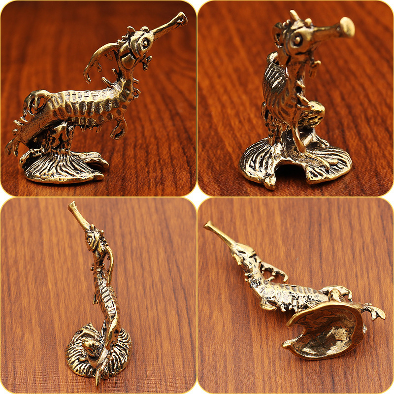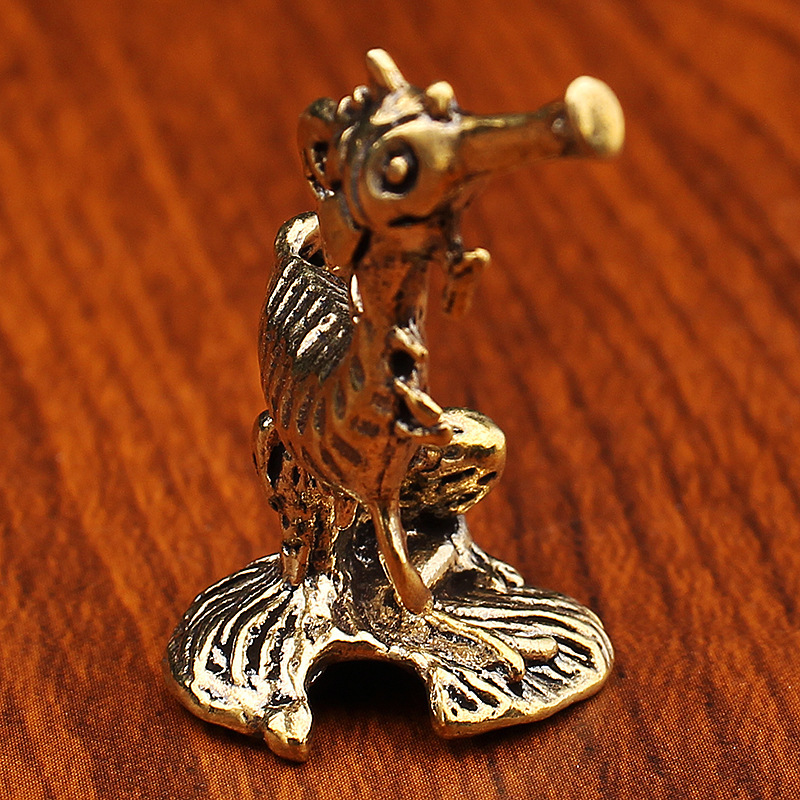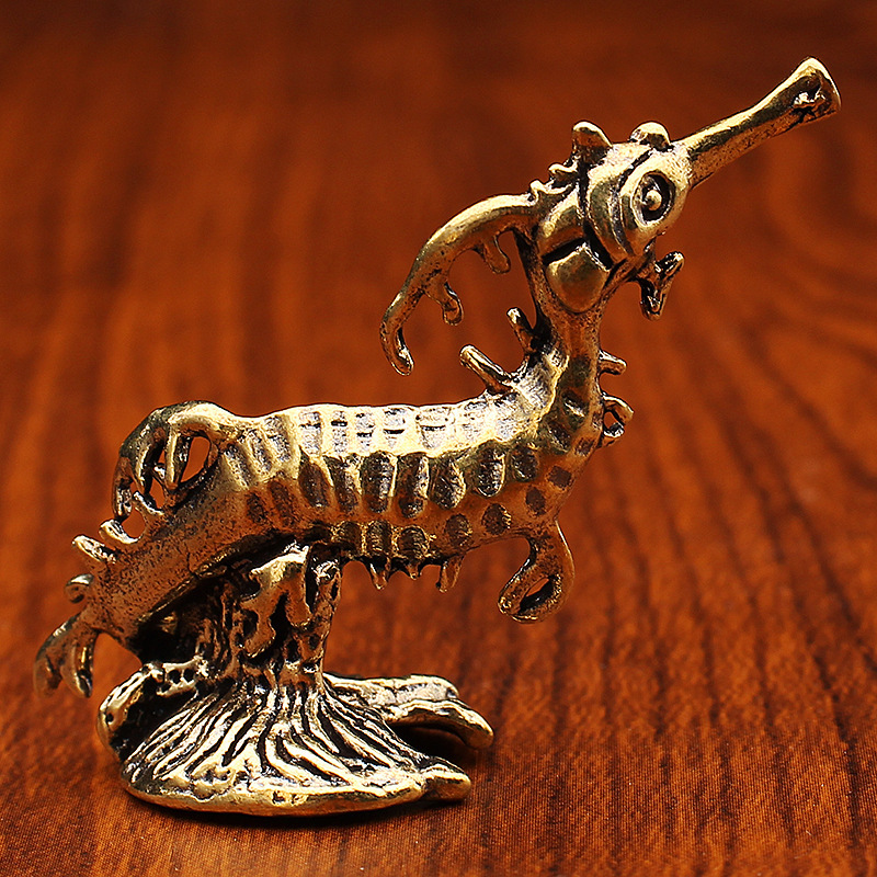 새로운 도착 해양 동물 골동품 옷을 입은 해마 황동 장식품 차 애완 동물 데스크탑 장식 공예 컬렉션 기념품