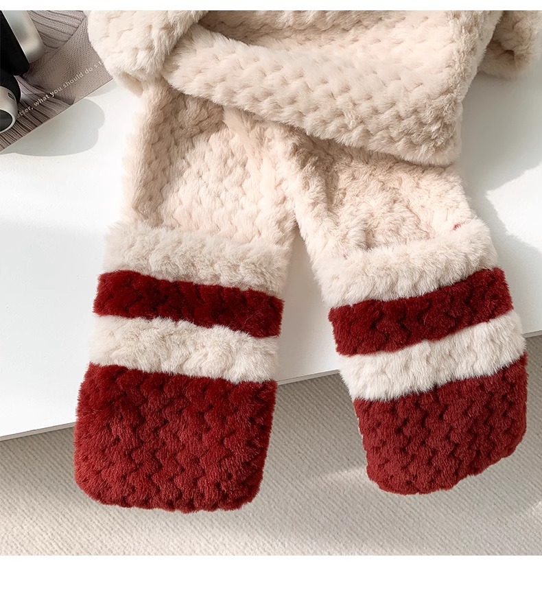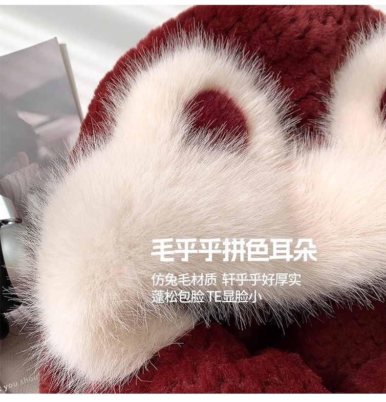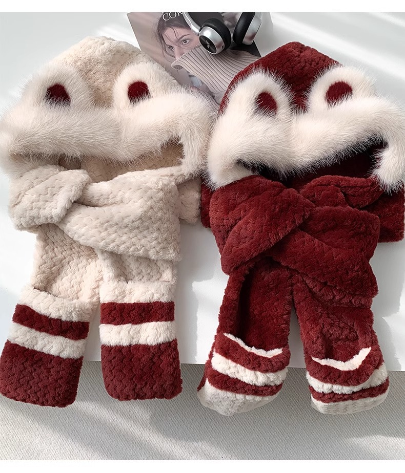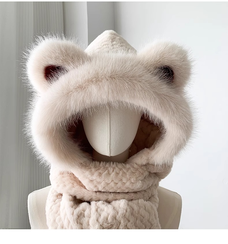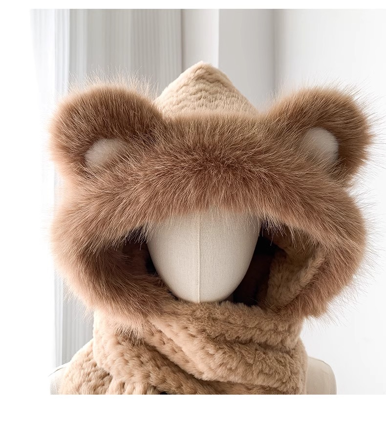 2025년 신형 방한 보온 곰돌이 플러시 모자 스카프 장갑 일체형 여성용 겨울 두꺼운 귀 보호 자전거 모자스토어 가기