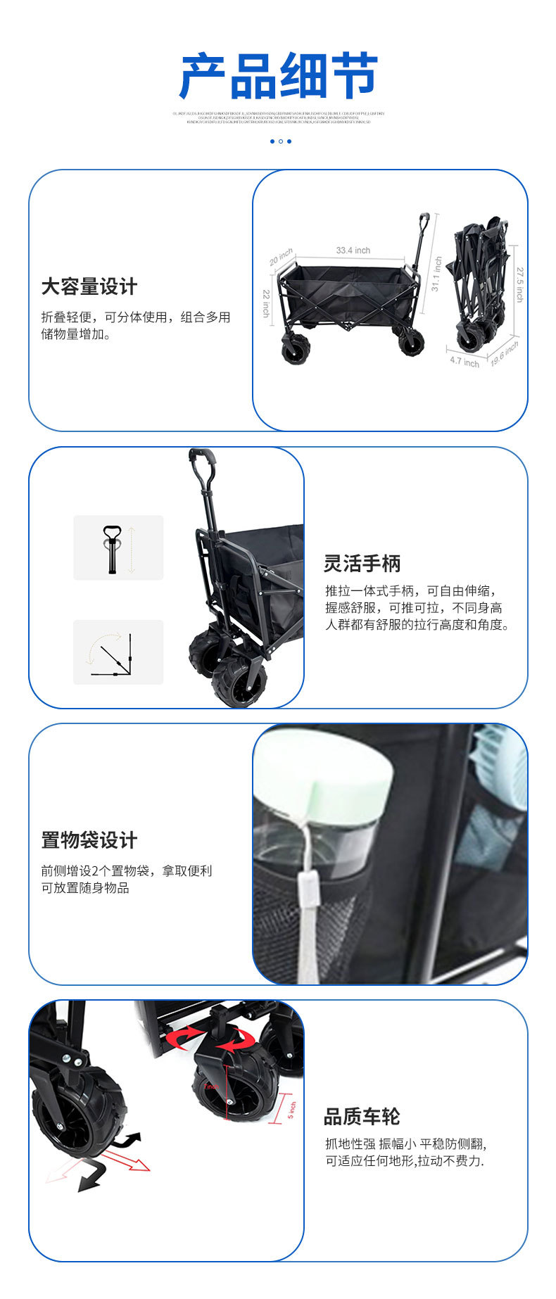 야외 접이식 캠핑카, 피크닉카, 캠핑 야외 트롤리, 경량 와이드 휠 트롤리스토어 가기