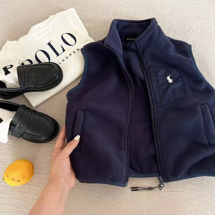 어린 이용 면화 조끼 2024 가을 및 겨울 아기의 단색 도자기 여성용 서양 스타일의 새 소년 격자 무늬 탑스토어 가기