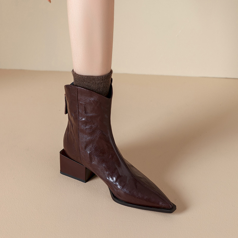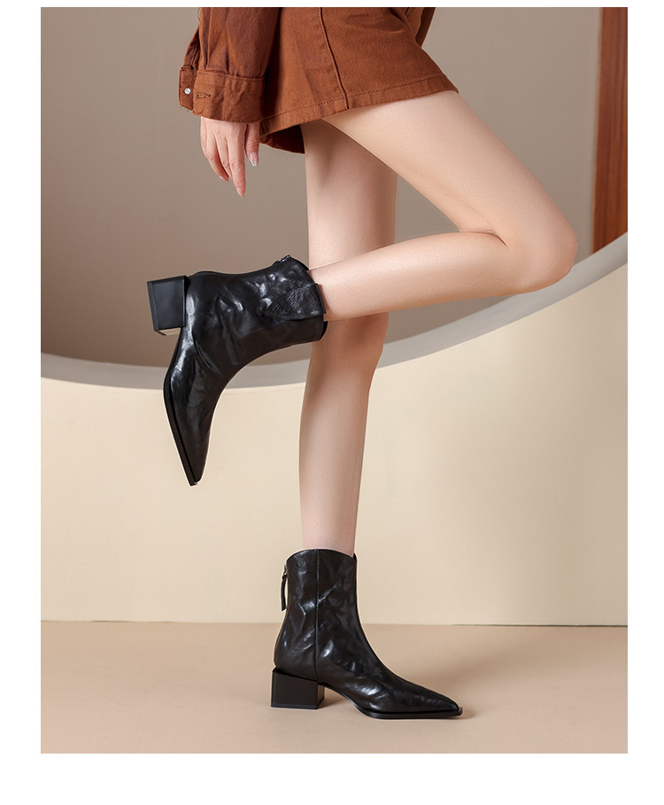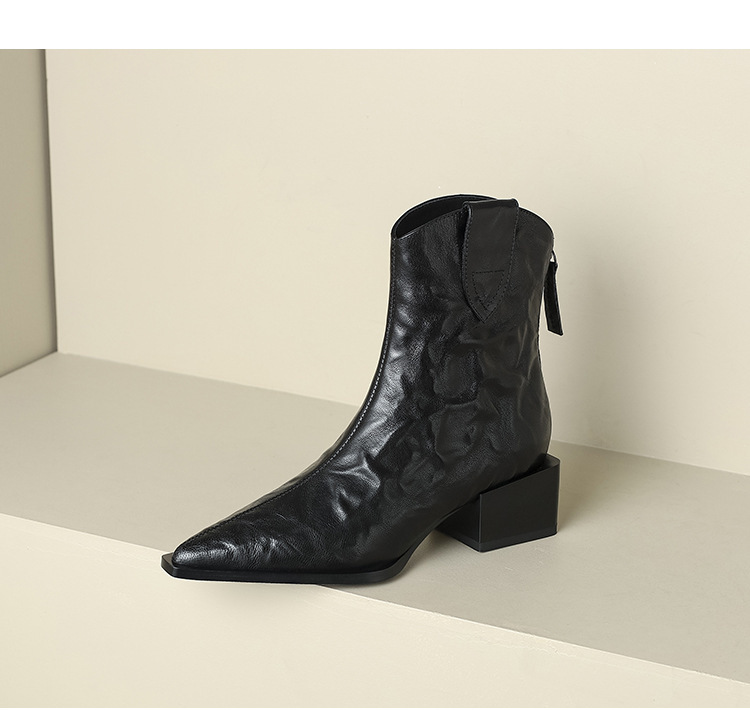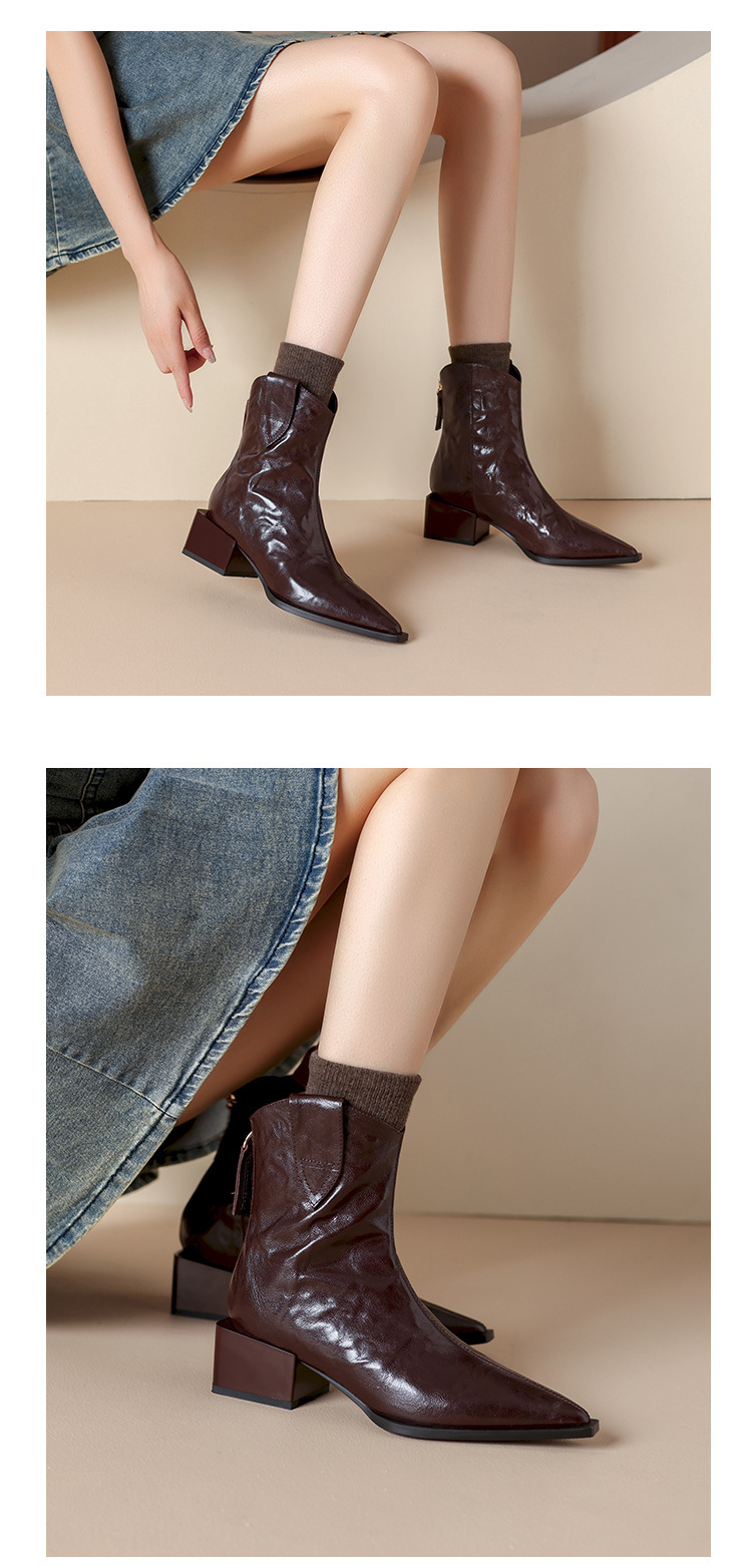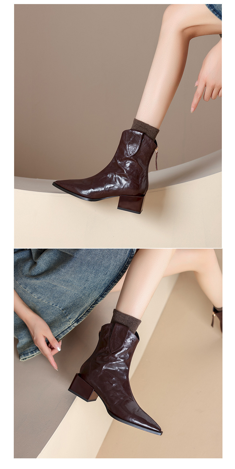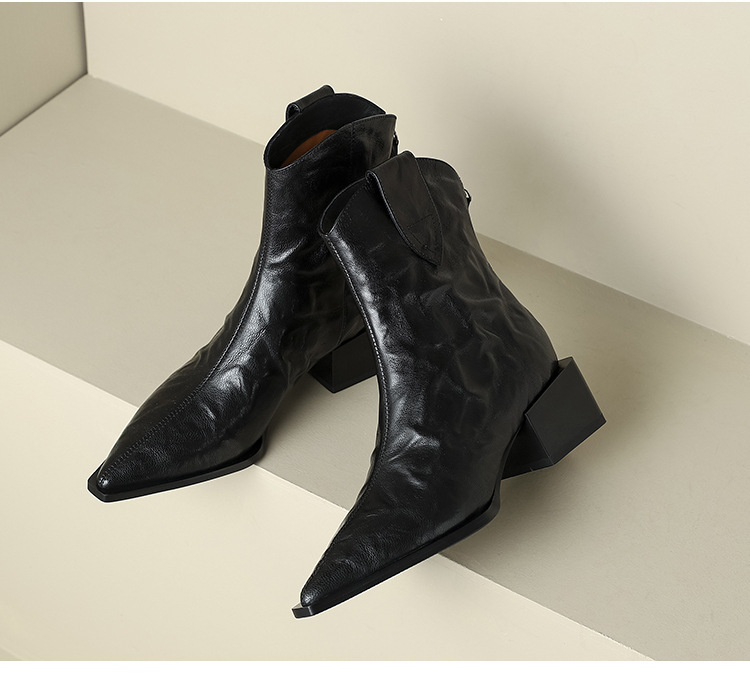 주름 레트로 웨스턴 부츠 두꺼운 힐 패션 발목 부츠 가을과 겨울 2024 새로운 스퀘어 힐 다크 브라운 부츠