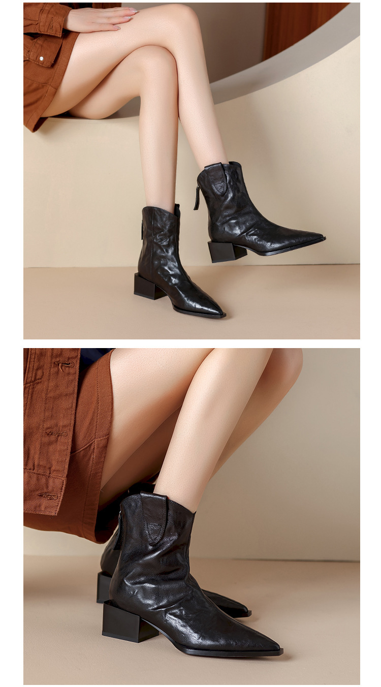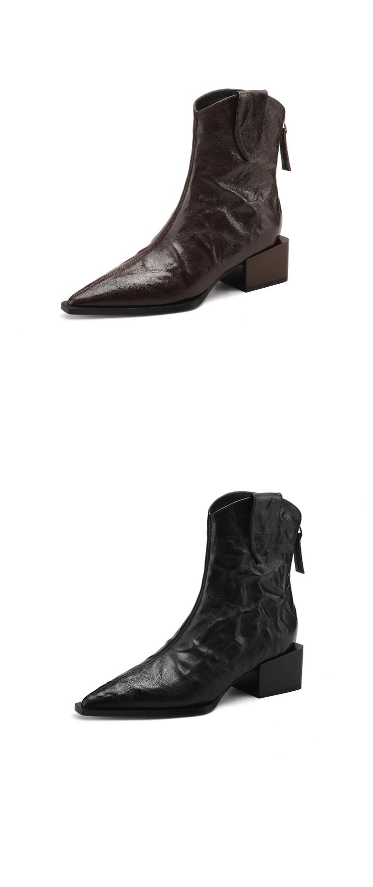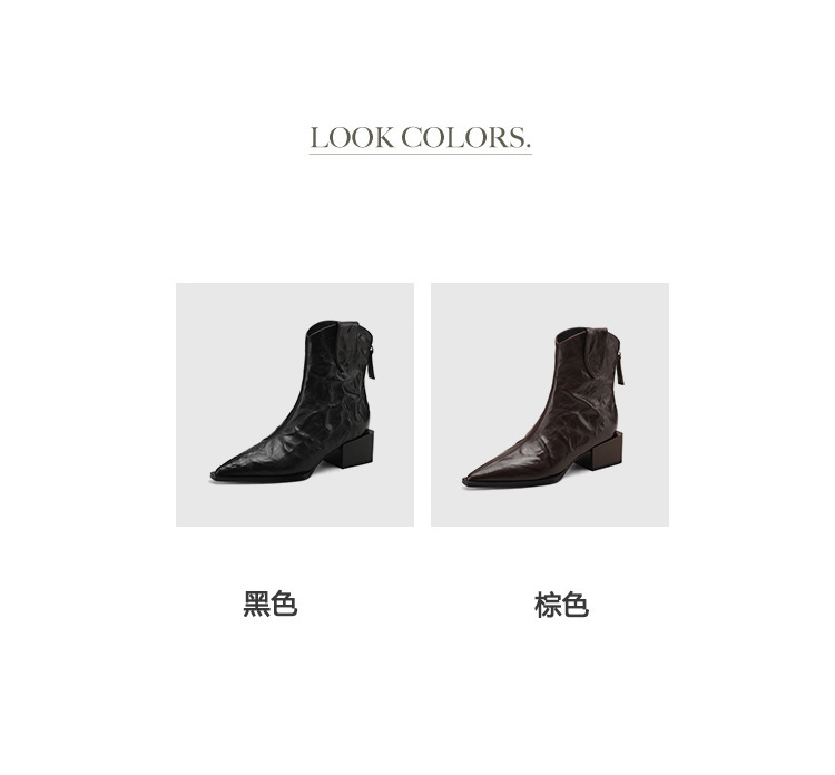 주름 레트로 웨스턴 부츠 두꺼운 힐 패션 발목 부츠 가을과 겨울 2024 새로운 스퀘어 힐 다크 브라운 부츠스토어 가기