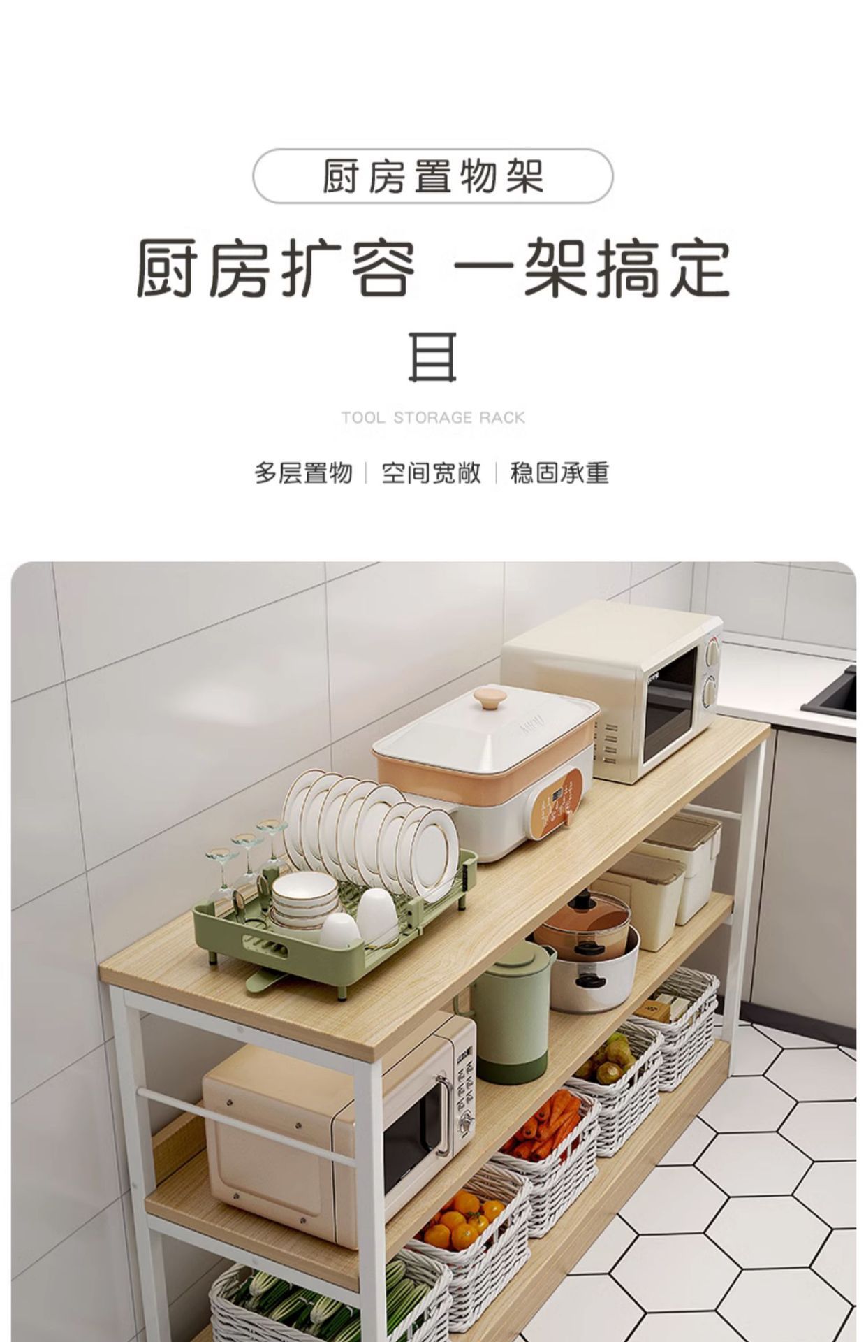 厨房多功能置物架落地多层家用货架微波炉收纳架锅架杂物储物架子