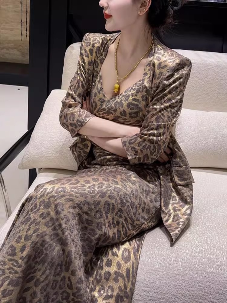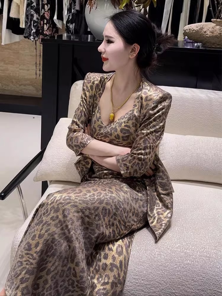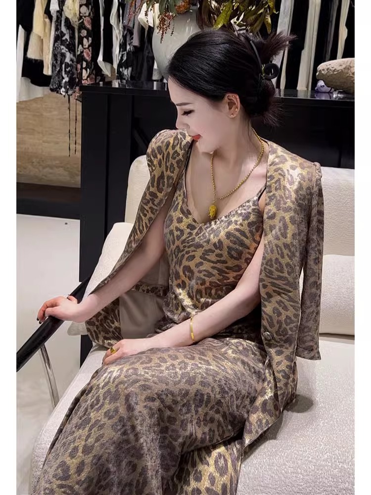 2813 가을 의상 오라 강한 하이 엔드 절묘한 기질 여신 팬 고급 감각 왕실 자매 바람 표범 슬링 원피스스토어 가기