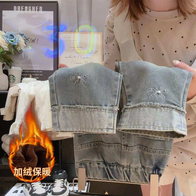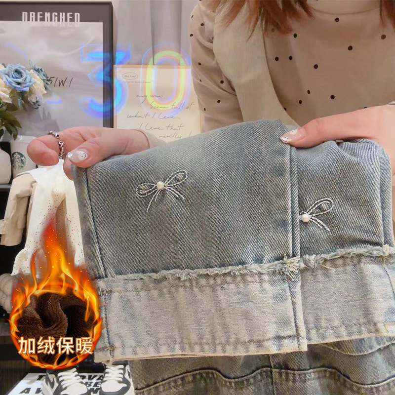[기모/기모 않음] 여자 기모 청바지 가을과 겨울 서양식 활 한국식 올매치 스트레이트 데님스토어 가기
