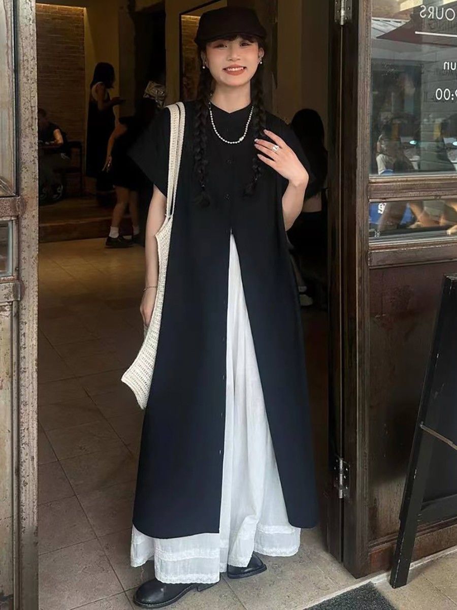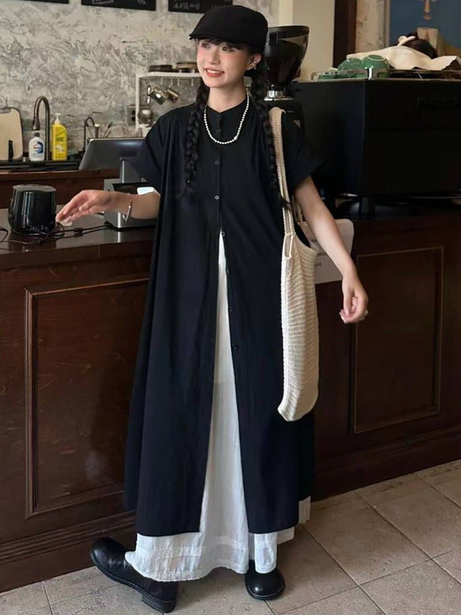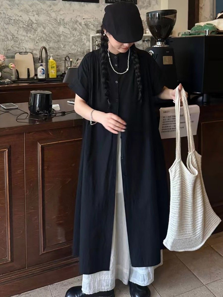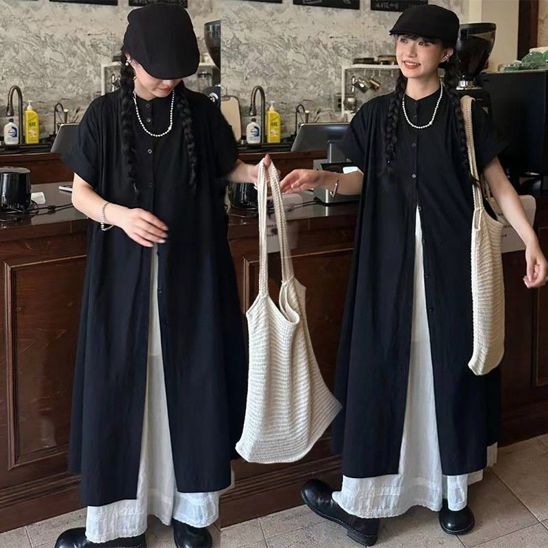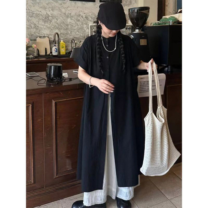 일본 야마모토 스타일 긴 검은 셔츠 원피스 여름 2024 새로운 스타일 작은 남자 디자인 센스 원피스스토어 가기