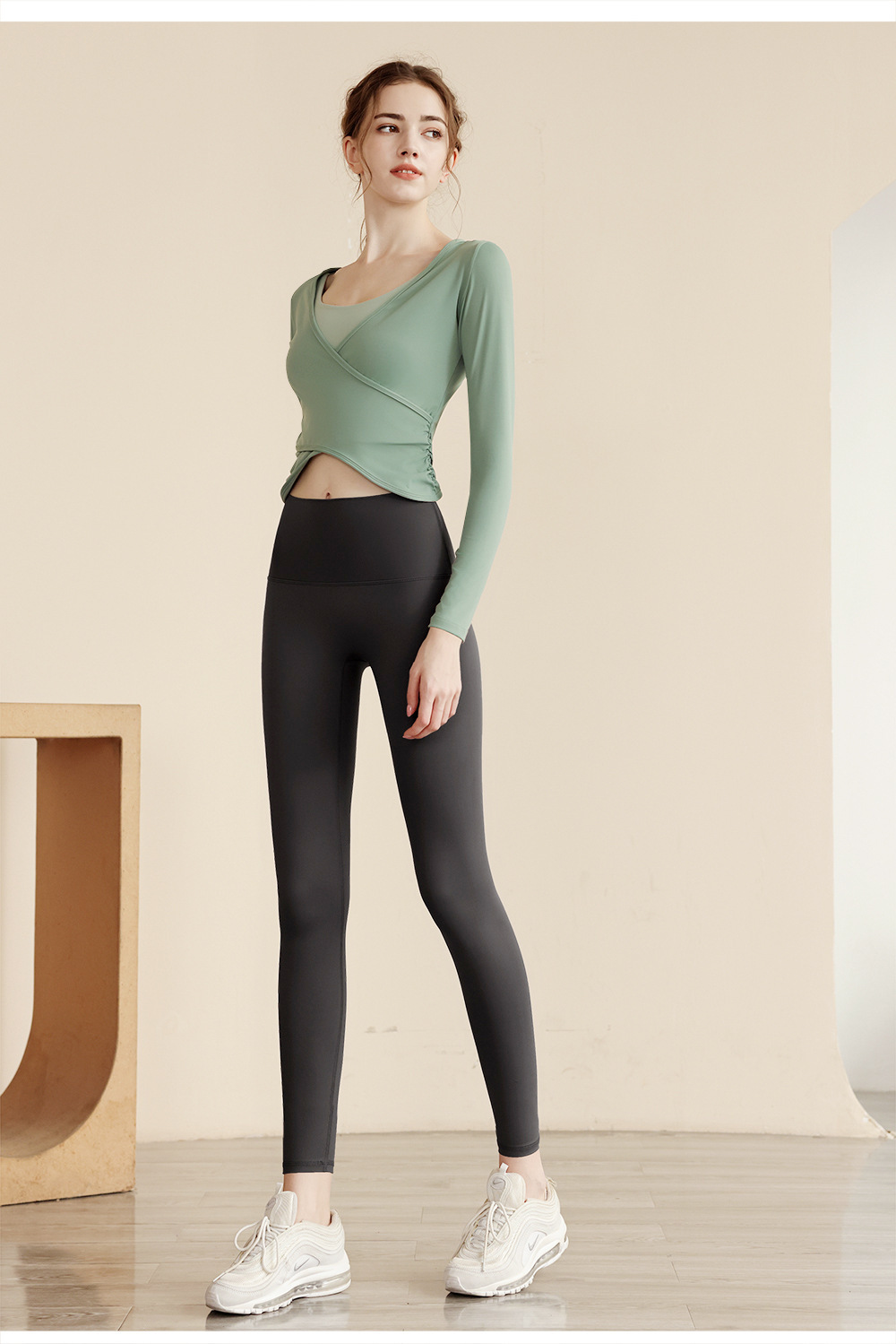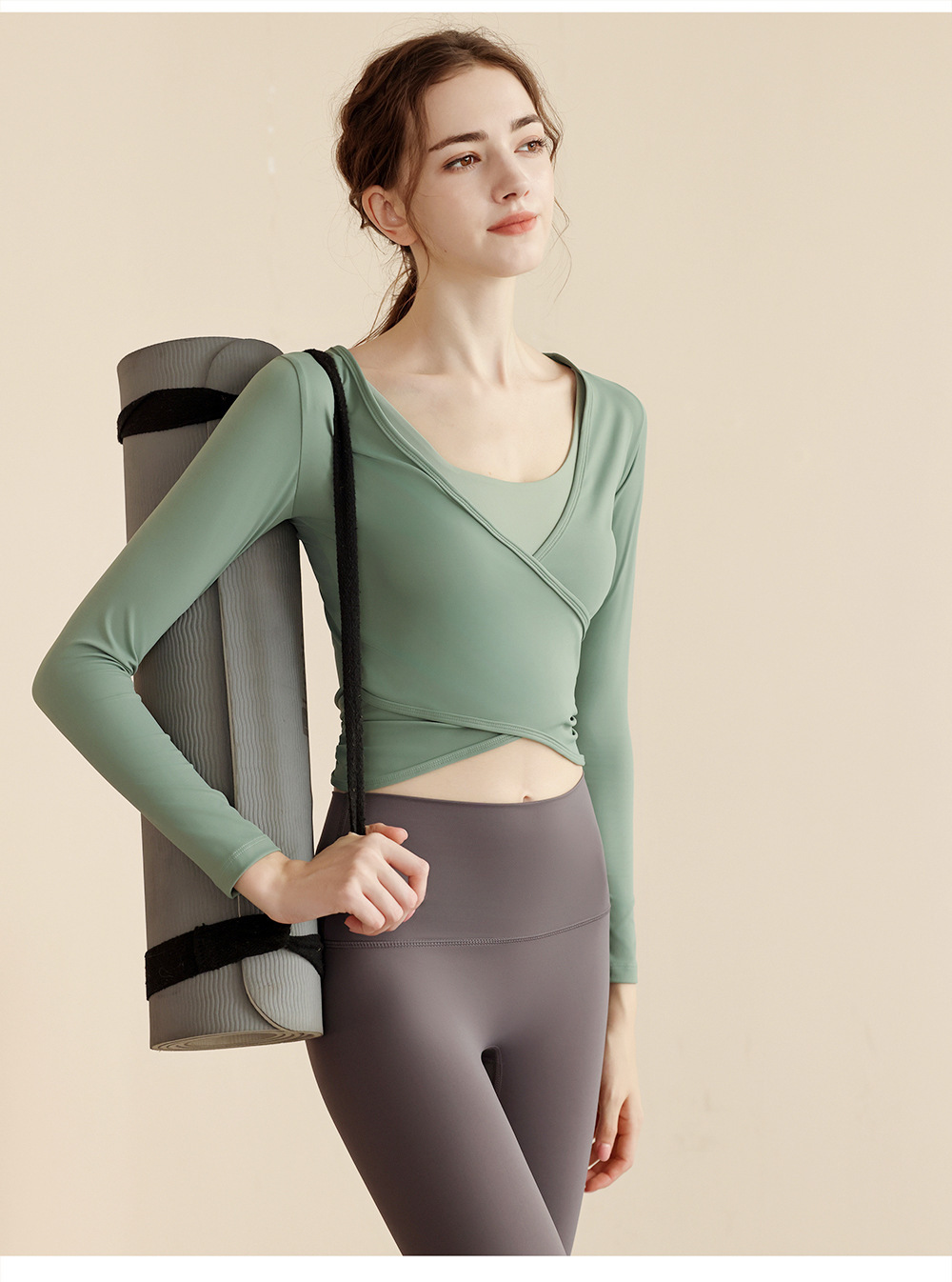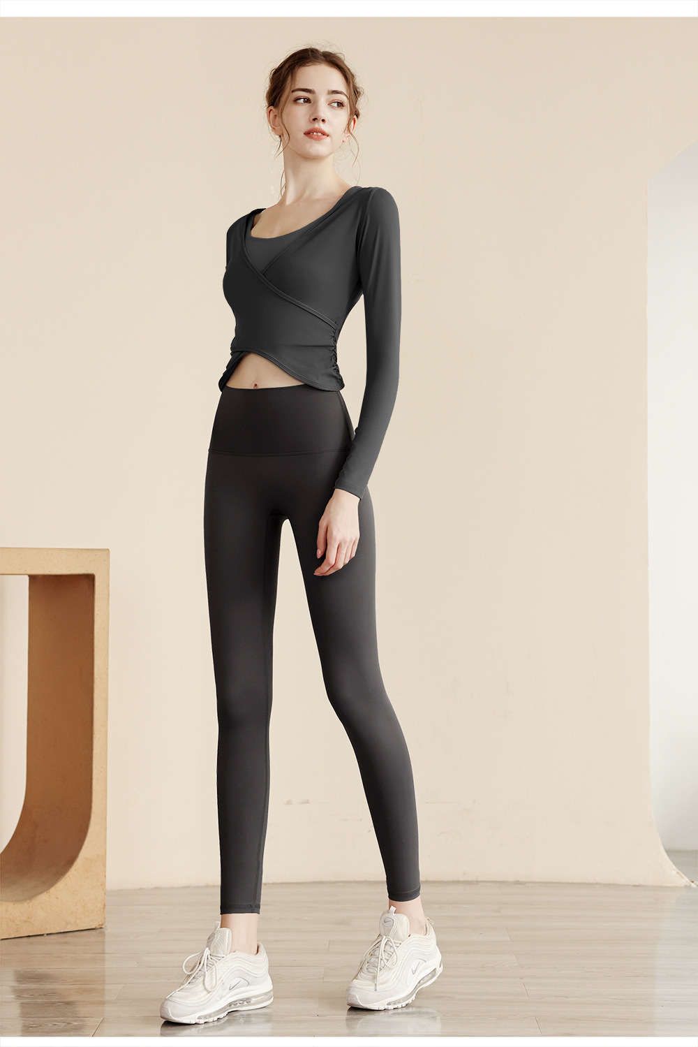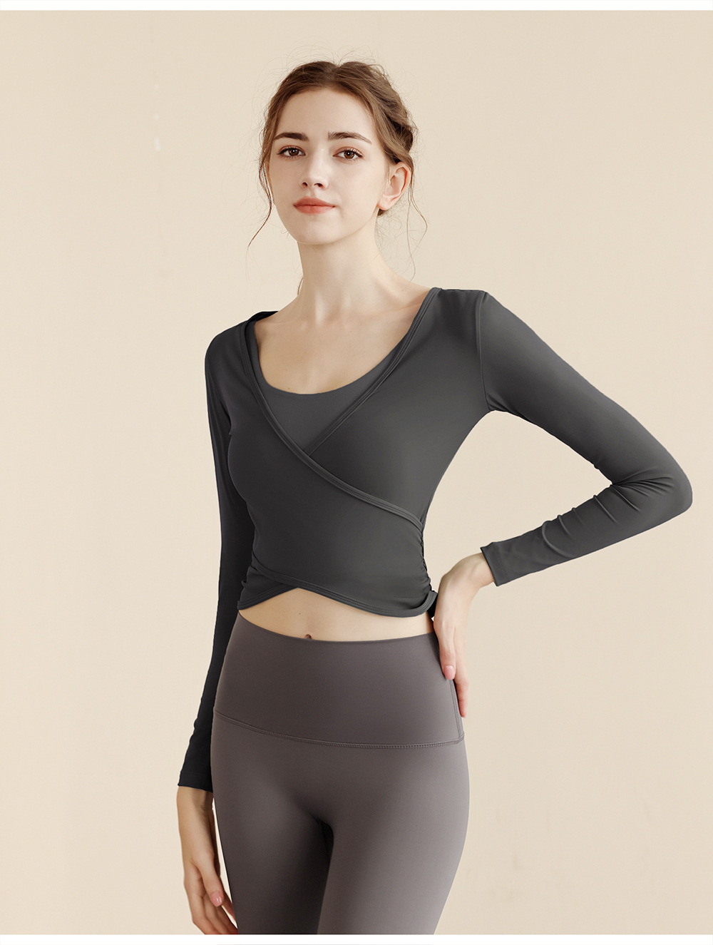 가을 벌거 벗은 요가 의류 여성용 타이트 웨이스트 슬림 핏 러닝 스포츠 탑 긴팔 슬림 핏 댄스 아우터 피트니스 의류스토어 가기