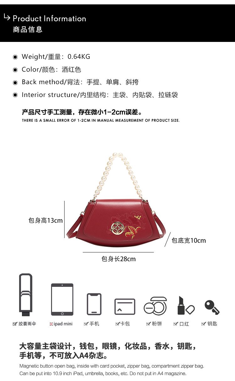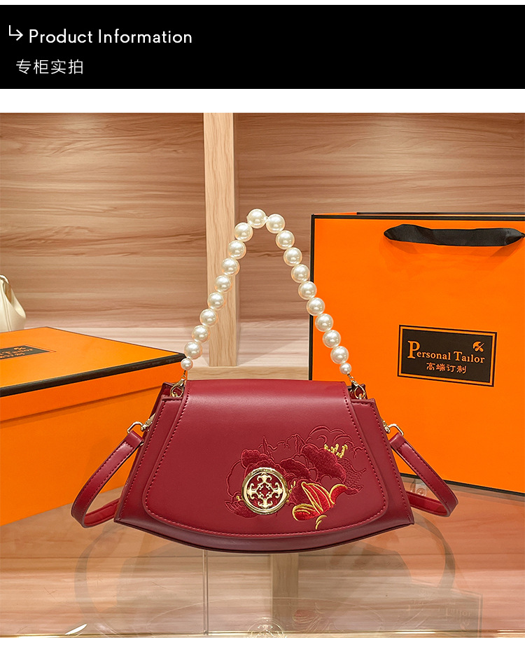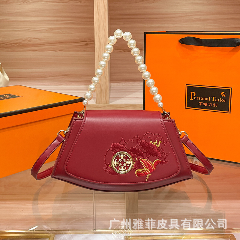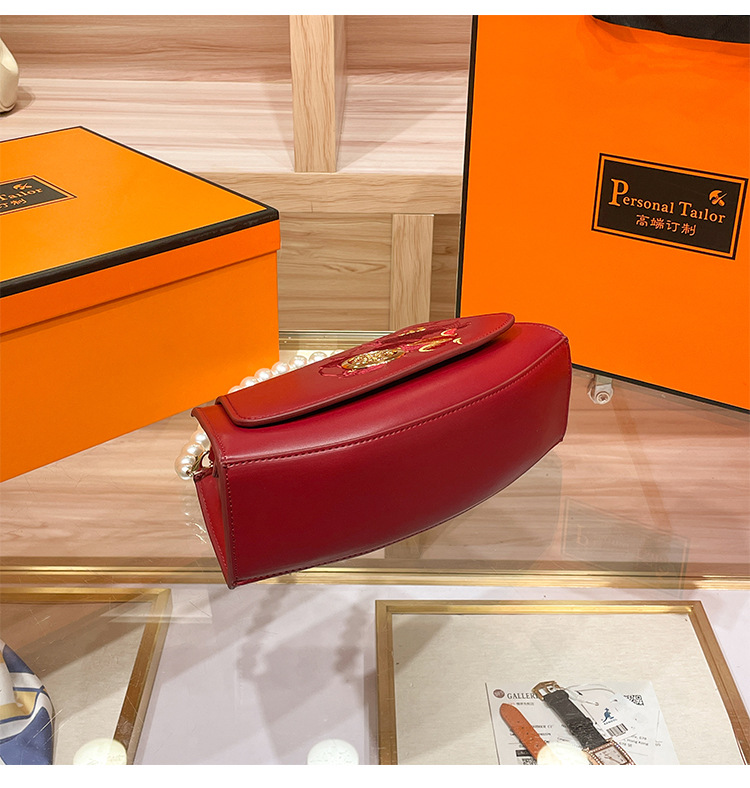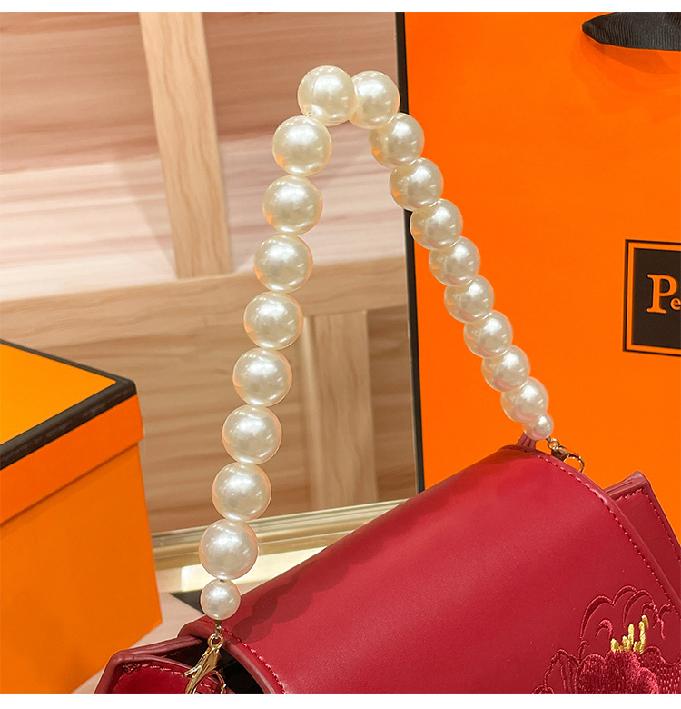 2024 새로운 빨간 가방 진주 작은 광장 가방 어깨 크로스 바디 핸드백 패션 유행 가방 새로운 중국 스타일스토어 가기