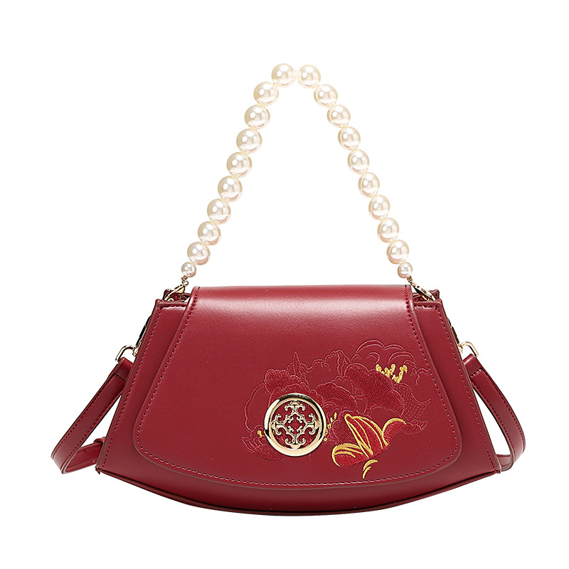 2024 새로운 빨간 가방 진주 작은 광장 가방 어깨 크로스 바디 핸드백 패션 유행 가방 새로운 중국 스타일