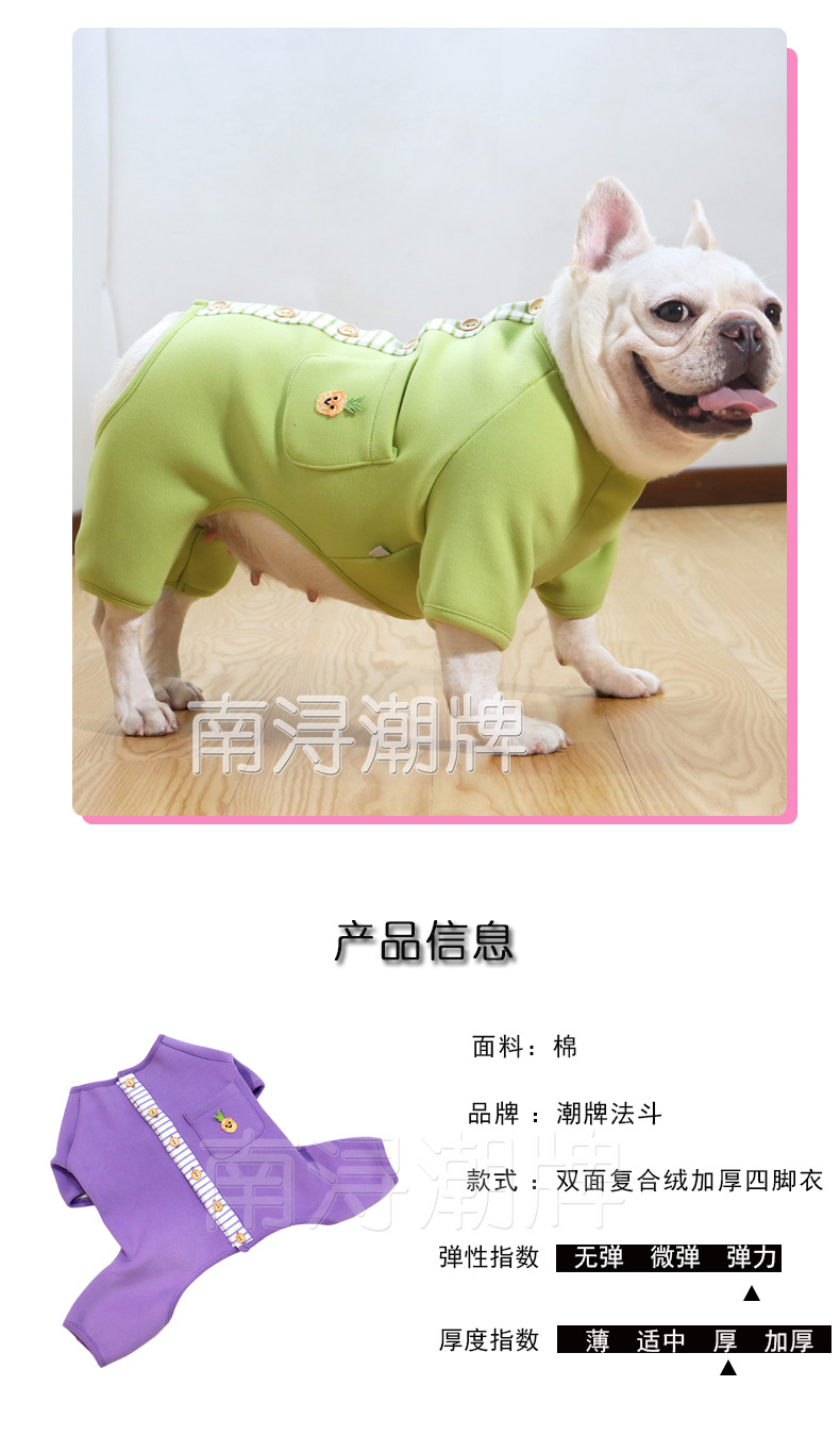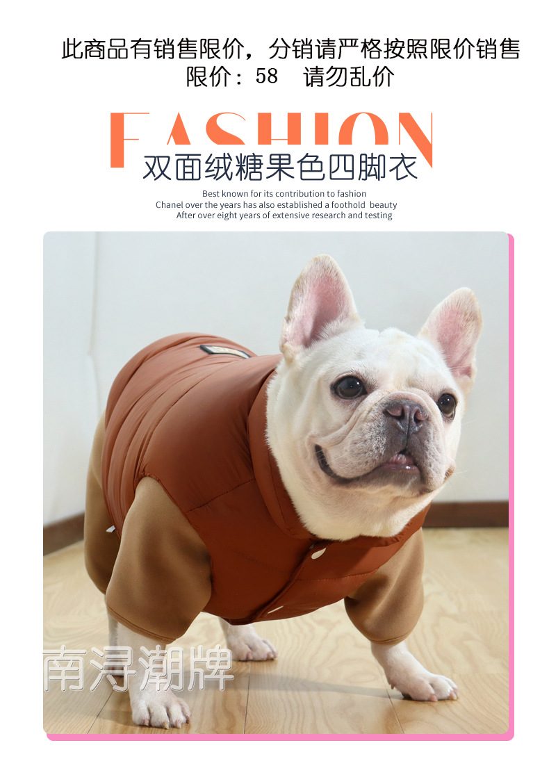 프랑스 파이팅 개 4 발 옷 통통한 개 바디 퍼그 개 두꺼운 더블 레이어 벨벳 개 옷 스트레치 캔디 컬러 겨울