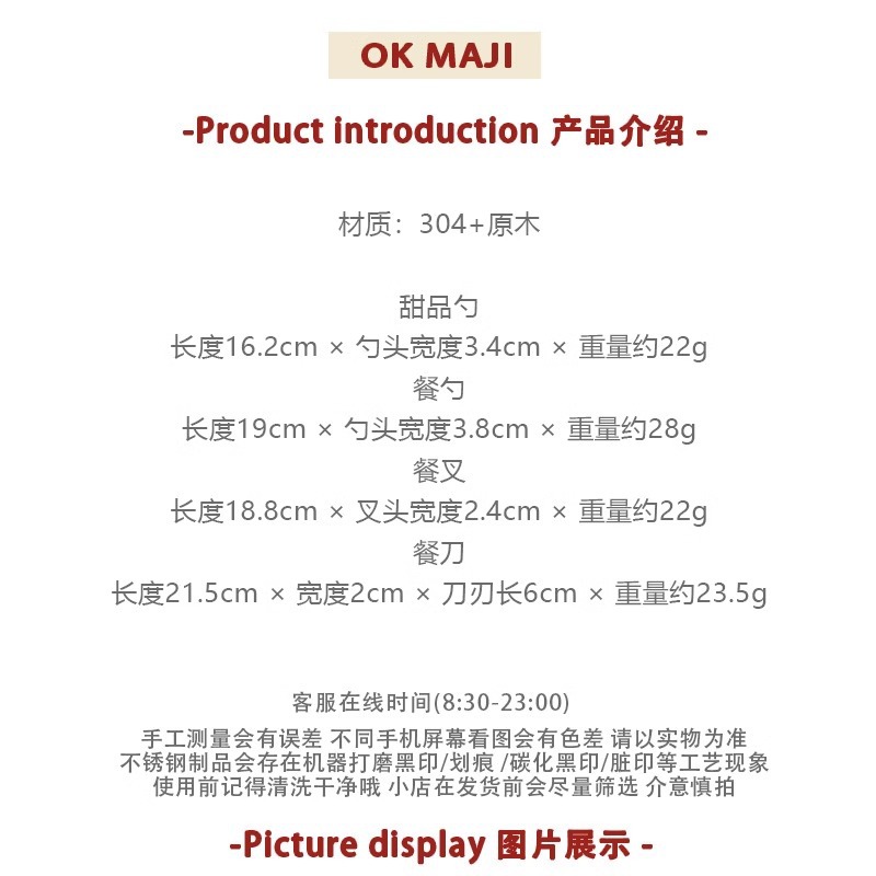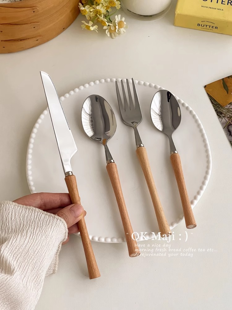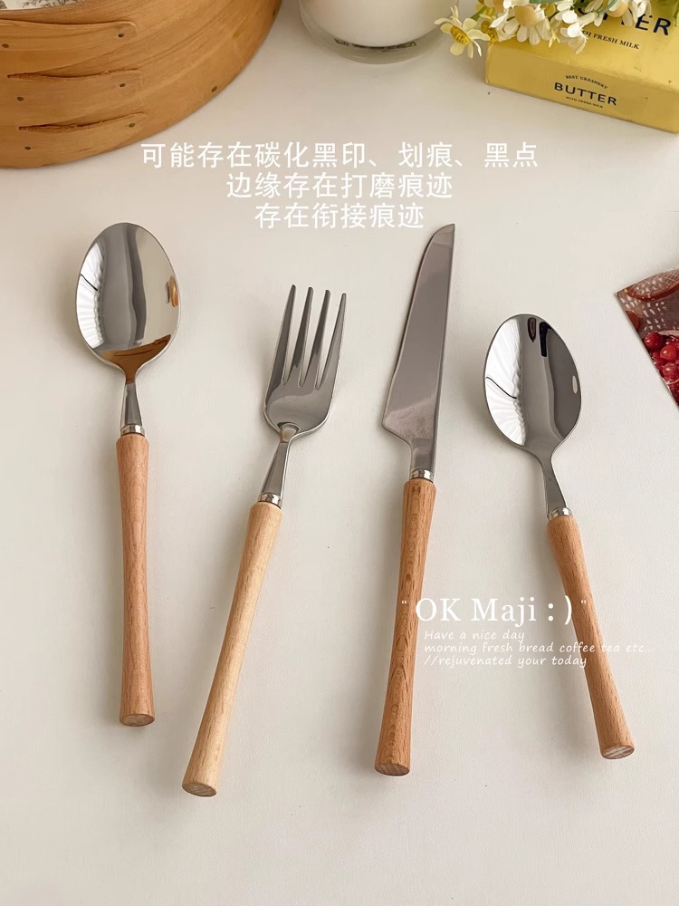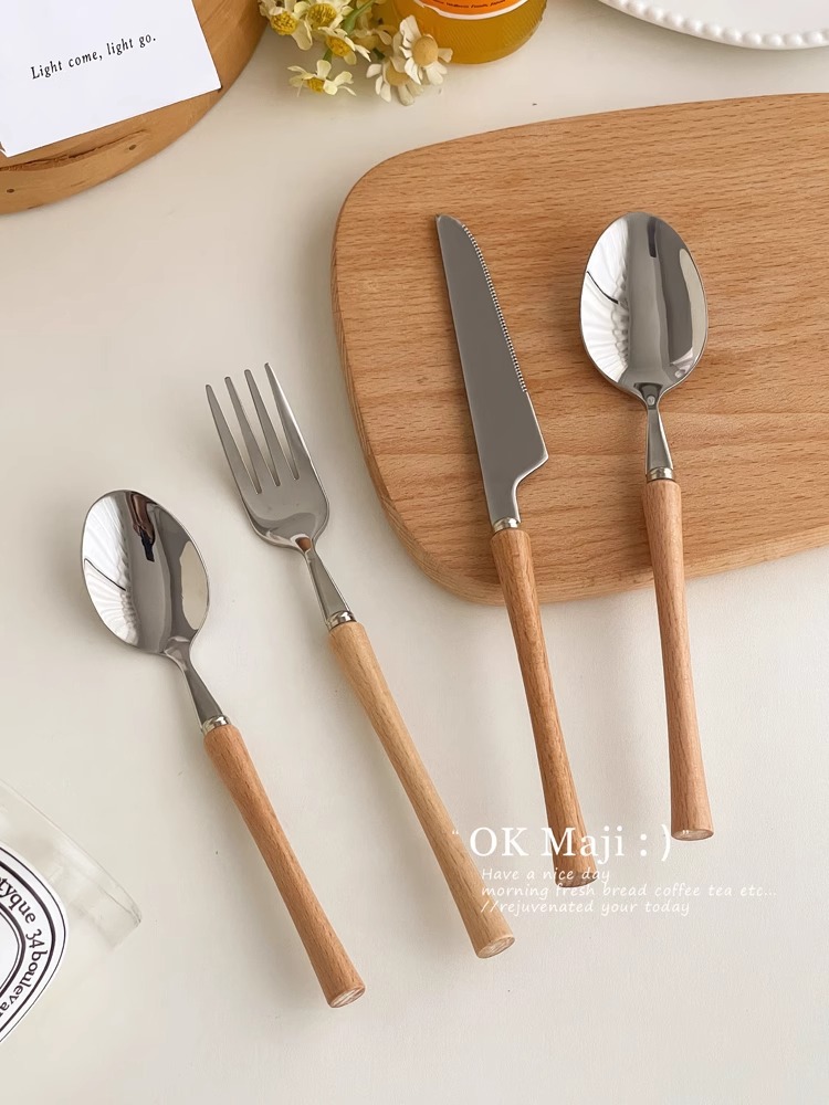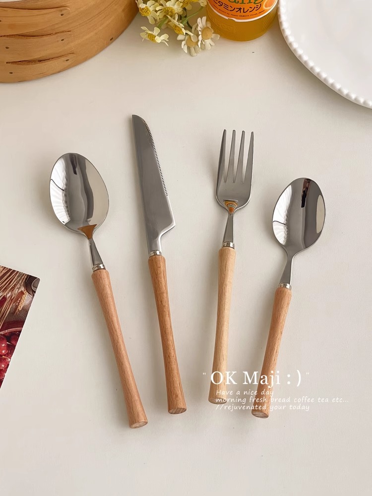 304 스테인레스 스틸 나이프와 포크 고급 나무 손잡이 칼, 포크 및 스푼 3 피스 세트 서양 식품 식기 세트 칼, 포크 및 스푼 세트스토어 가기