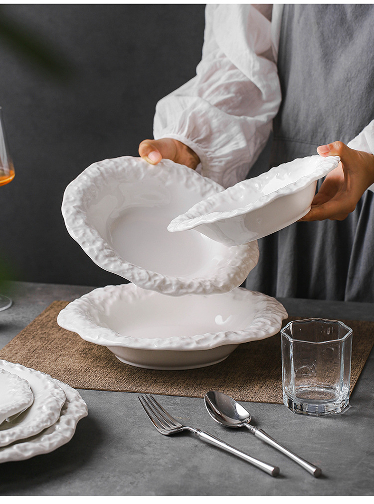 크리 에이 티브 락 에지 플레이트 세라믹 플랫 플레이트 얕은 플레이트 세트 플레이트 고급 호텔 레스토랑 식기 디너 플레이트