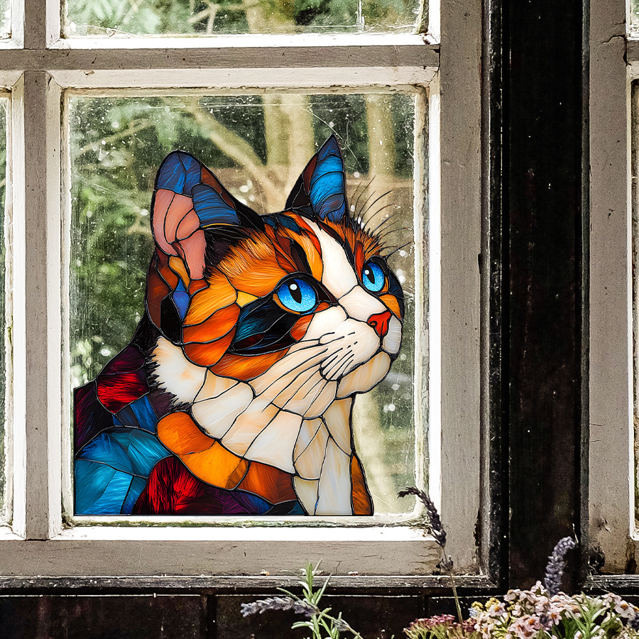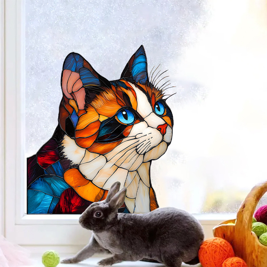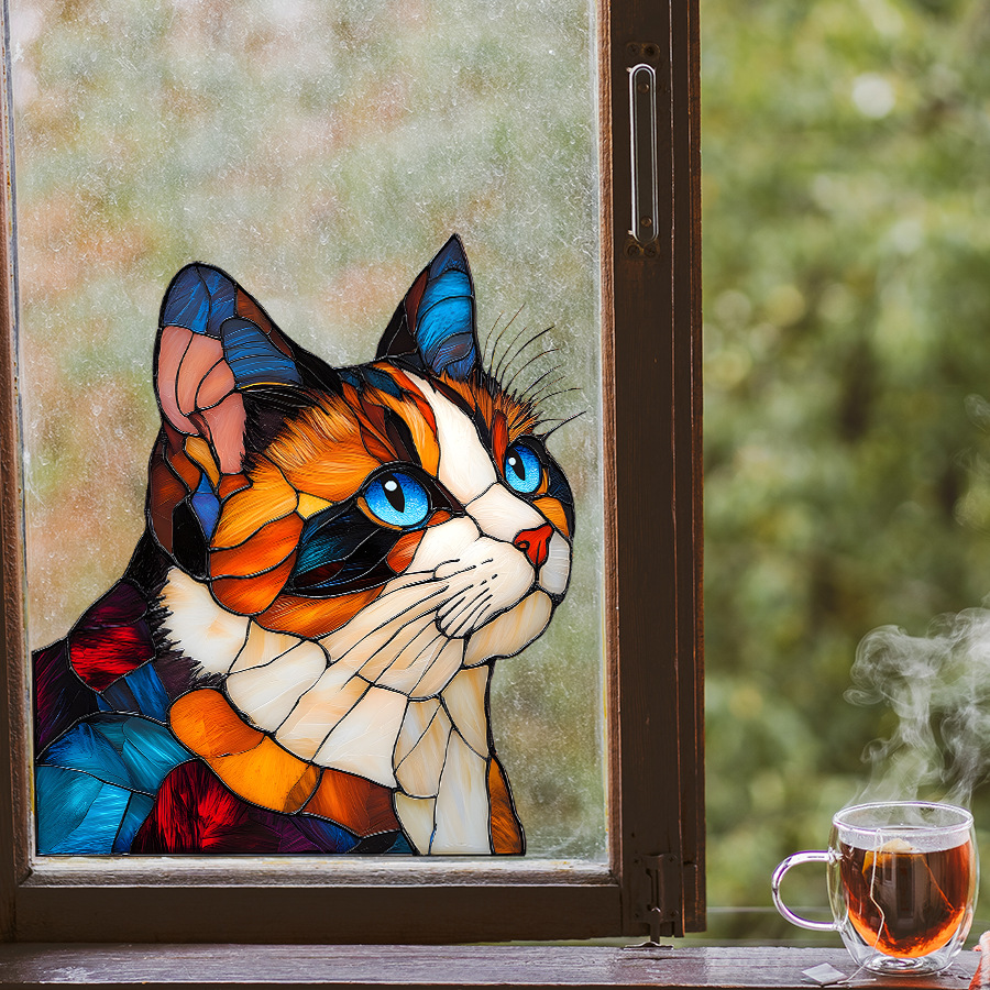 만화 컬러 유리 고양이 자체 접착 창 스티커 양면 시각적 도어 및 창 유리 미화 장식 스티커 BR3100Q스토어 가기
