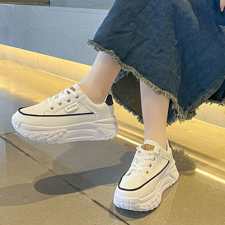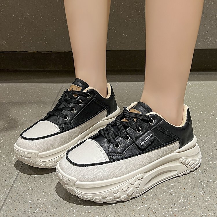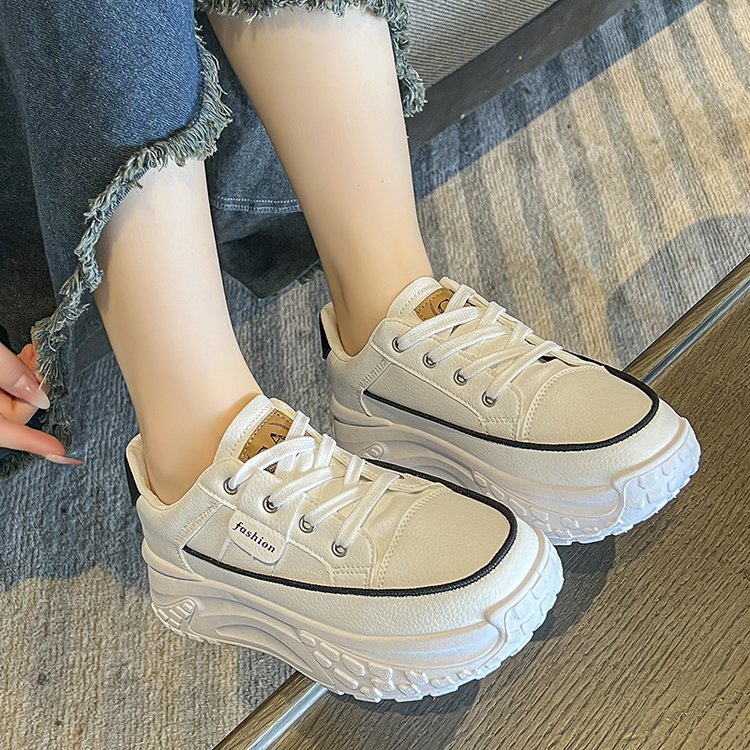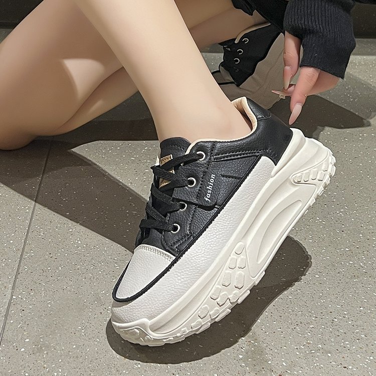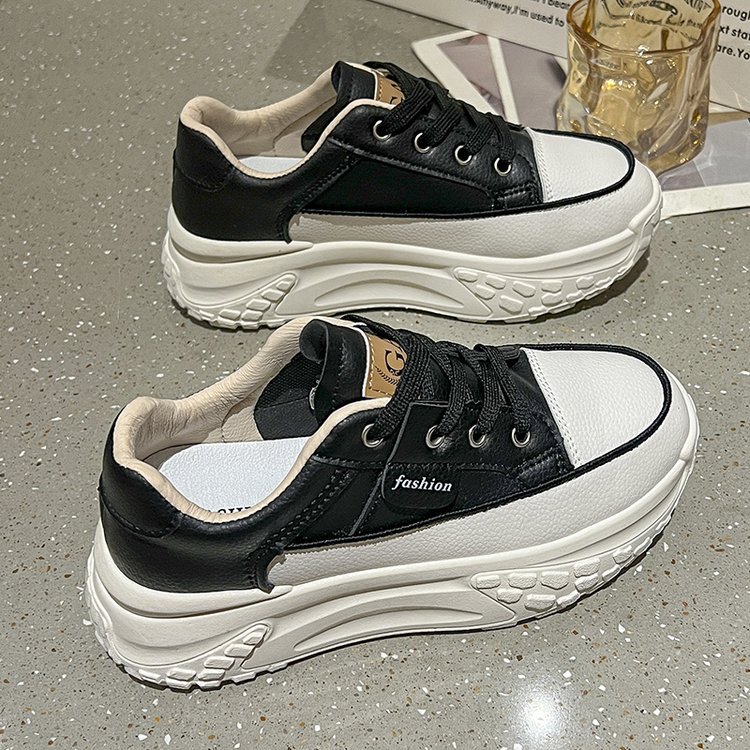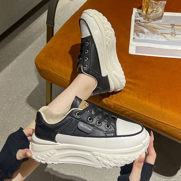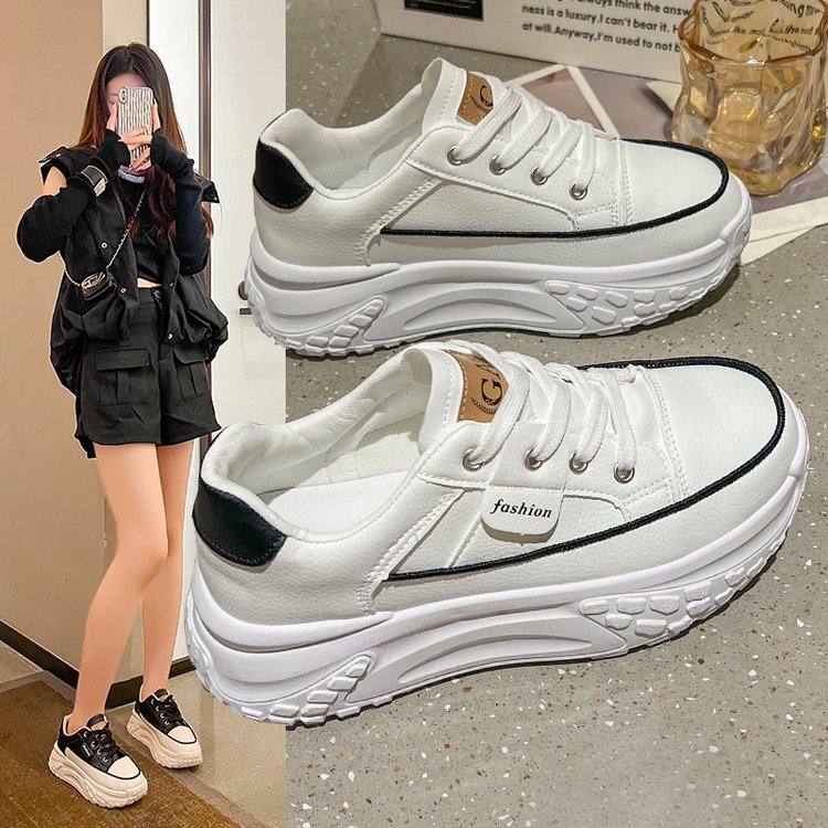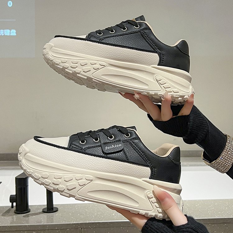 Torre 신발 여성용 Ins 유행 2024 봄과 가을 새로운 올매치 두꺼운 바닥 높이 증가 달리기 캐주얼 가죽 통기성 운동화스토어 가기