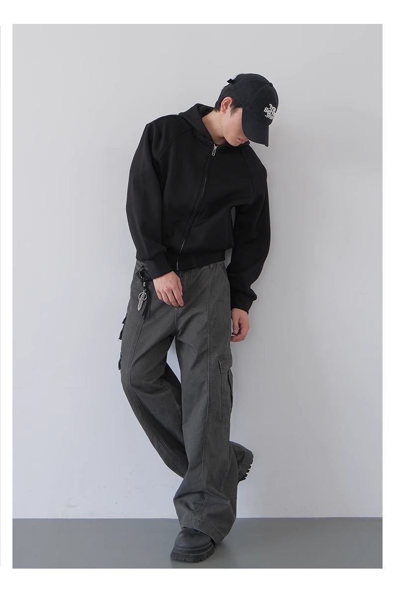 오래된 캐주얼 바지 빈티지 미국 공예 바지 남성 봄과 가을 새로운 느슨한 스트레이트 바지
