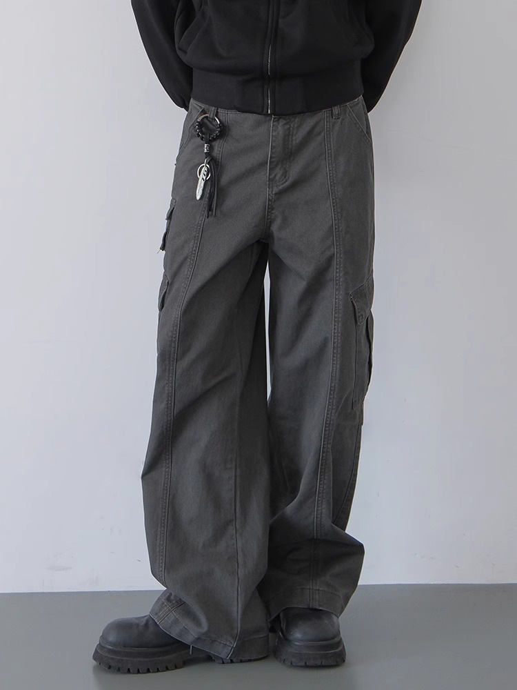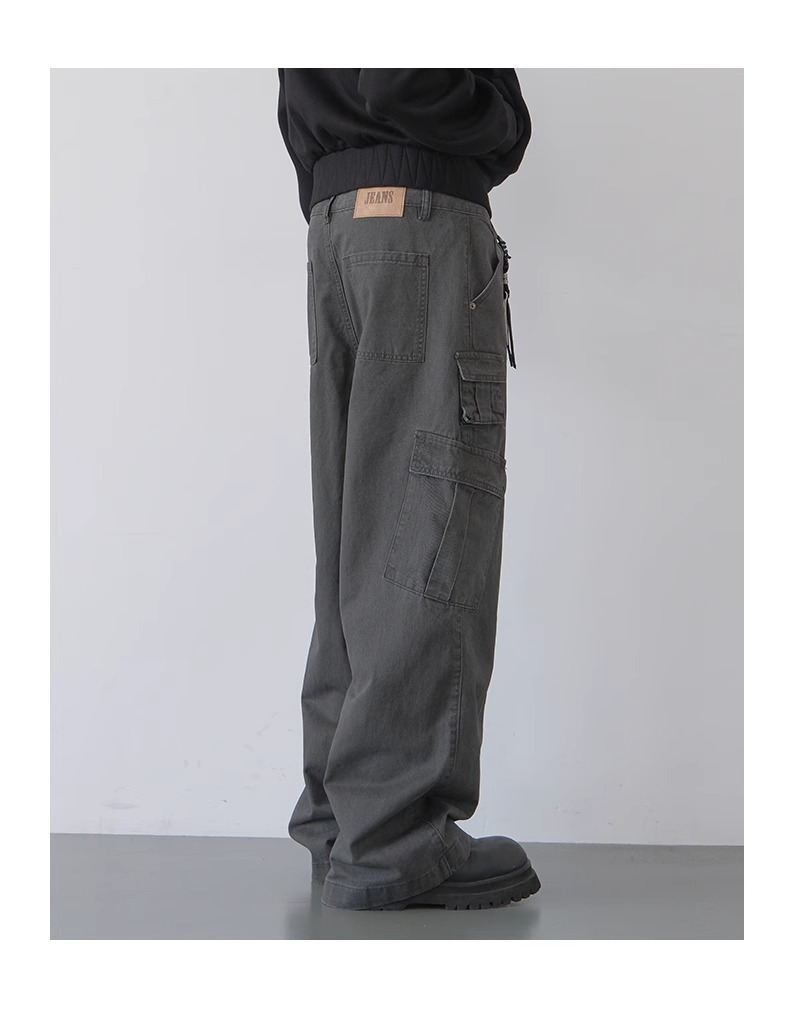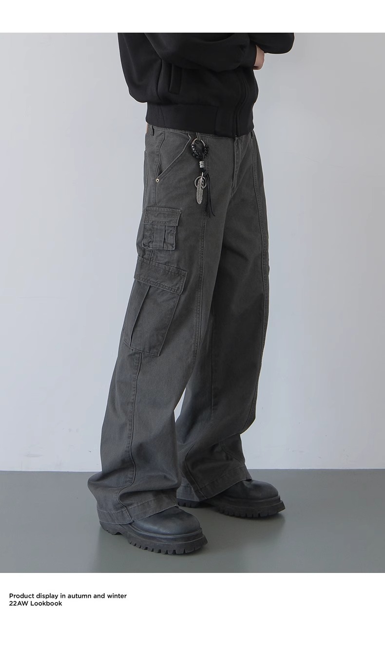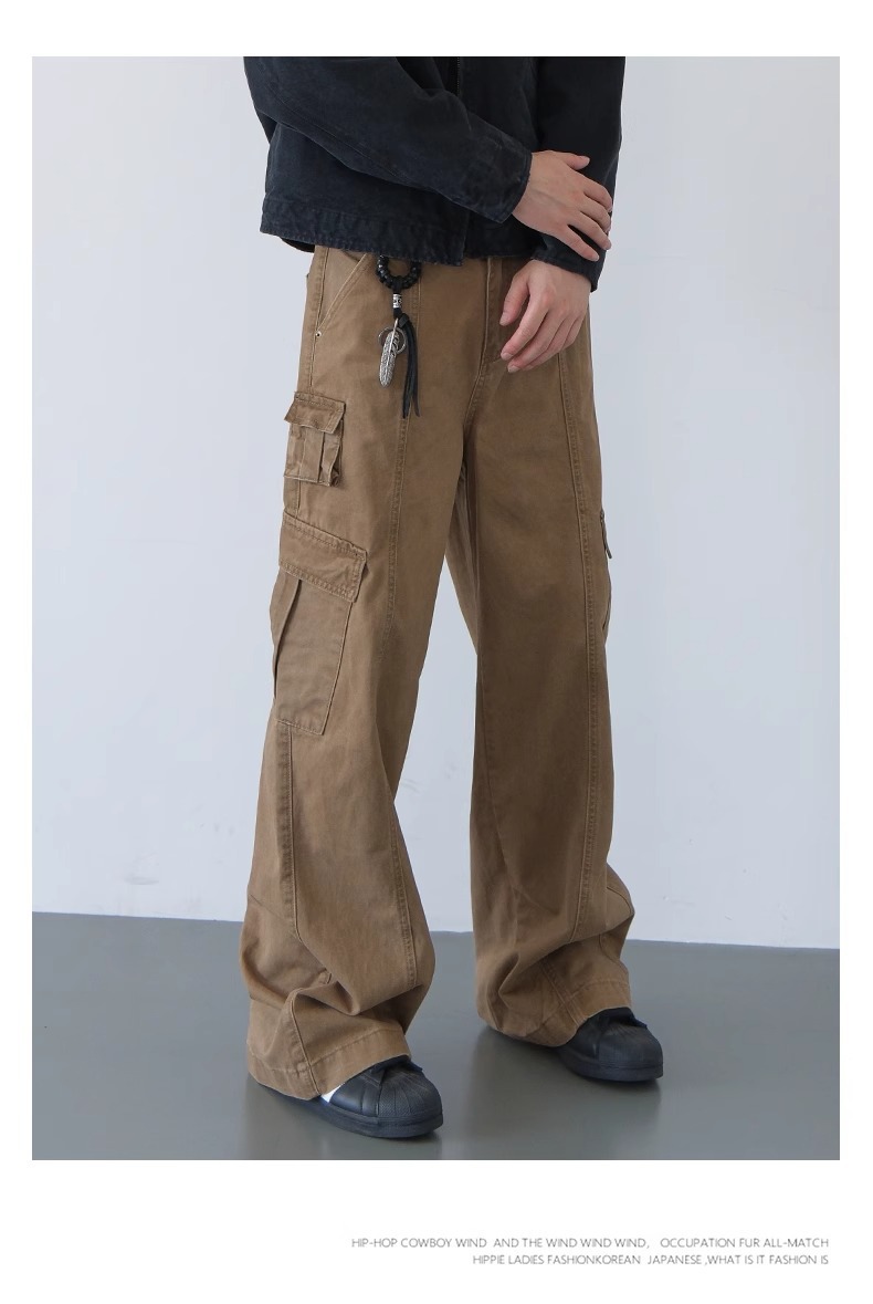 오래된 캐주얼 바지 빈티지 미국 공예 바지 남성 봄과 가을 새로운 느슨한 스트레이트 바지스토어 가기