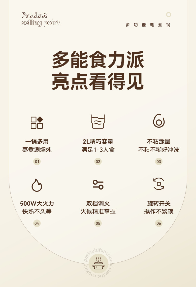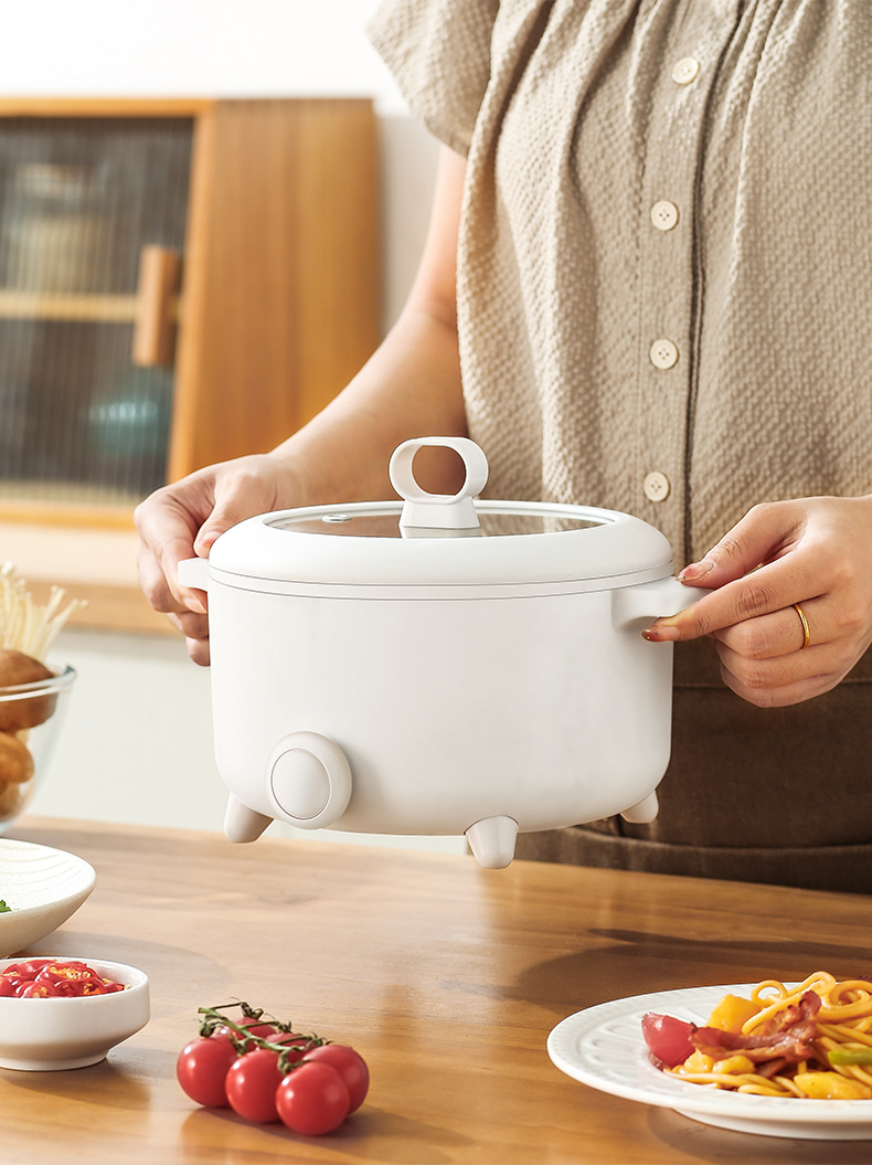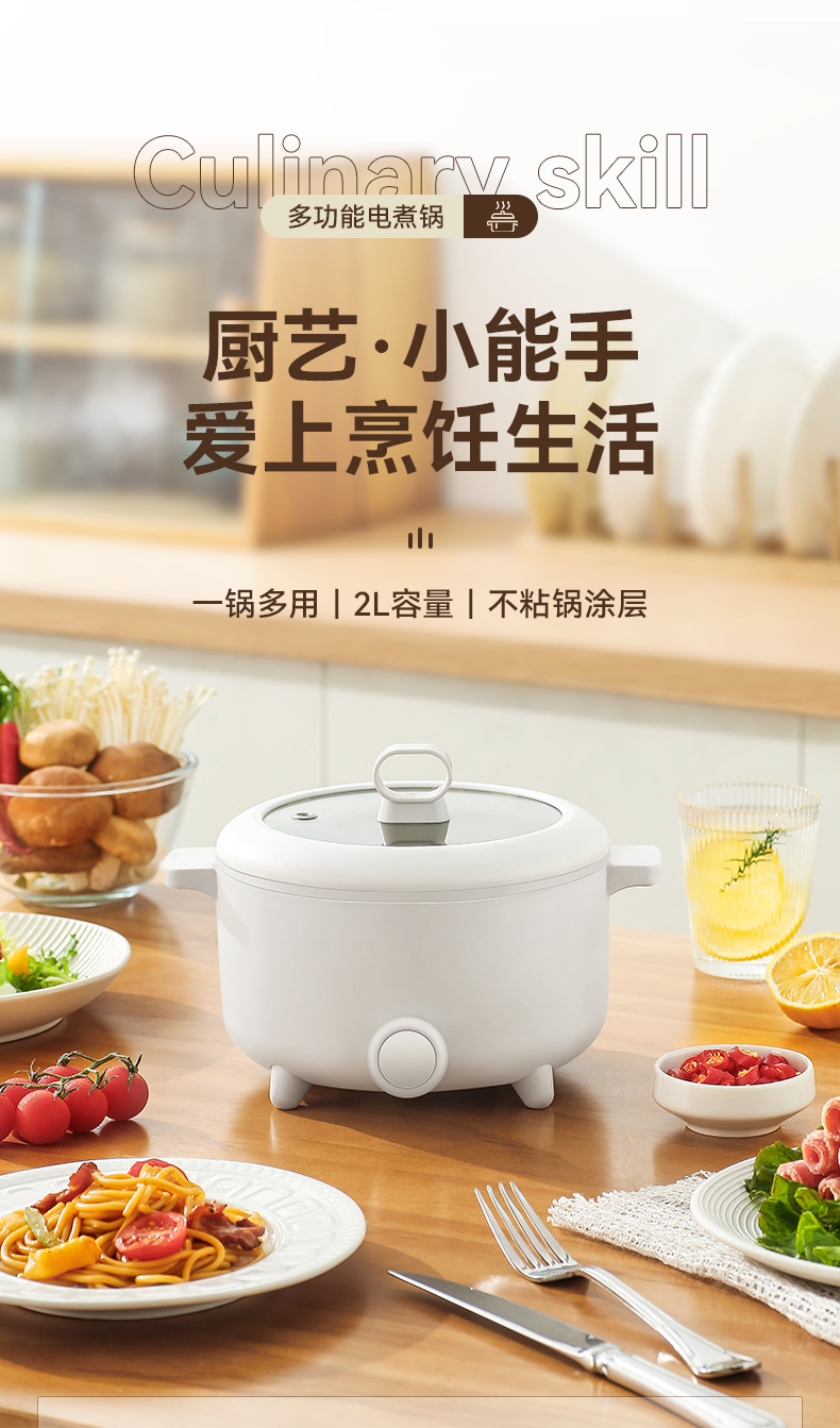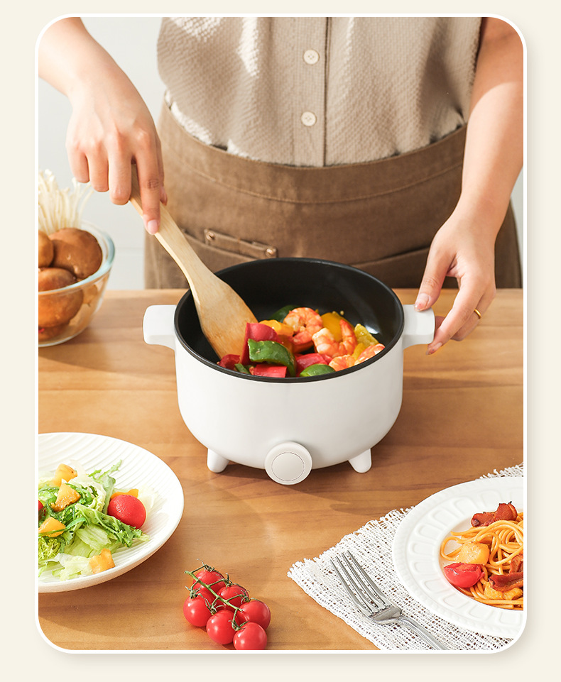 기숙사용 1인용 2L 소형 다기능 가정용 소형 전기 냄비, 찜, 볶음, 요리 일체형 논스틱 미니 전기 냄비