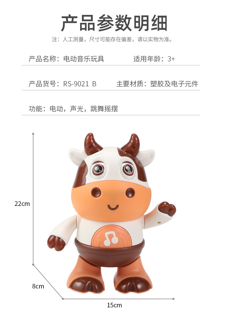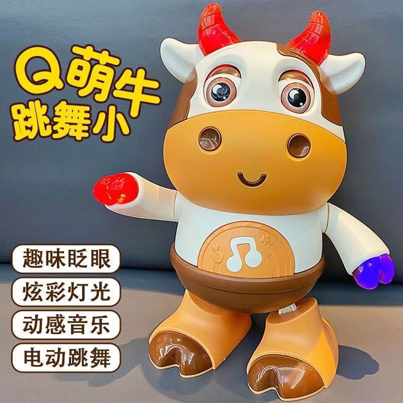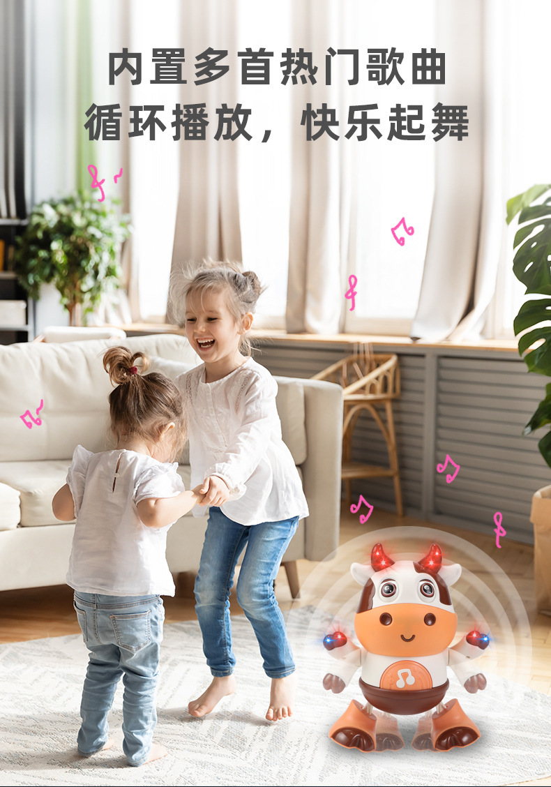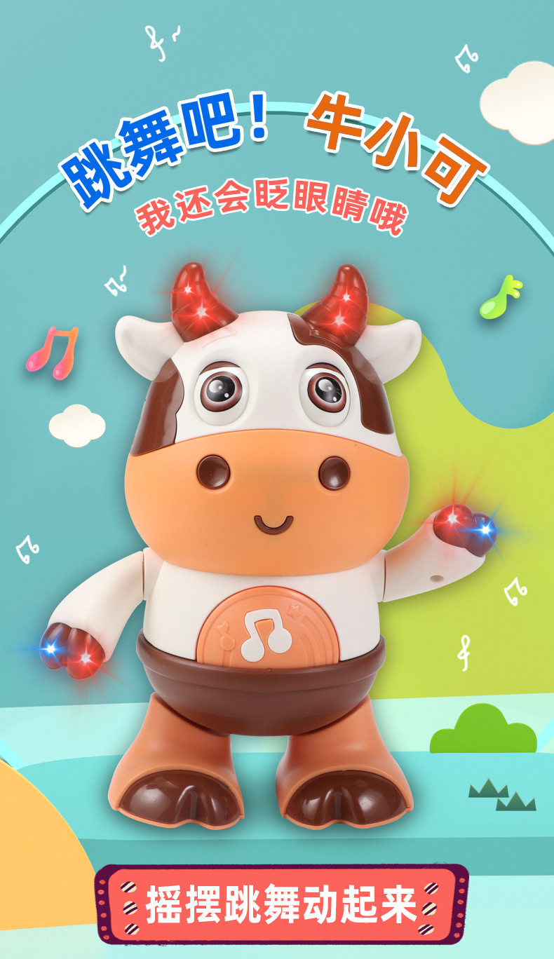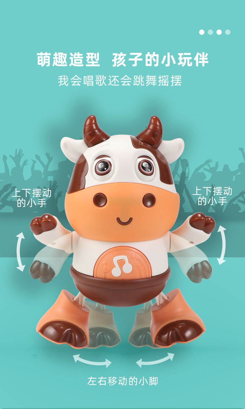 어린이 전기 춤 작은 귀여운 암소 장난감은 가벼운 음악 스윙으로 노래 할 수 있습니다 걷는 교육 로봇 교차 국경스토어 가기