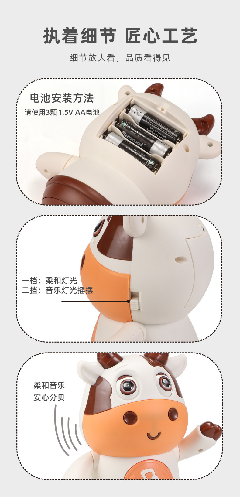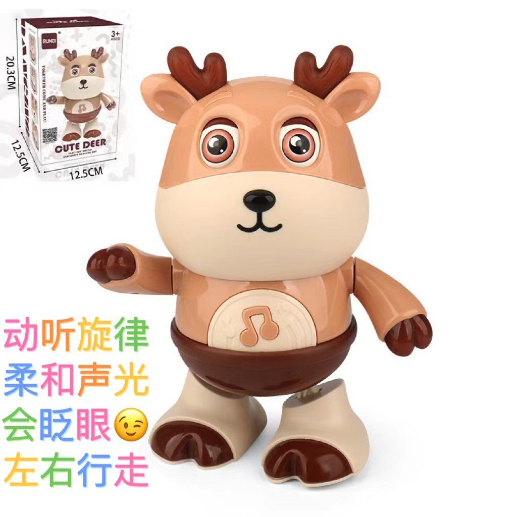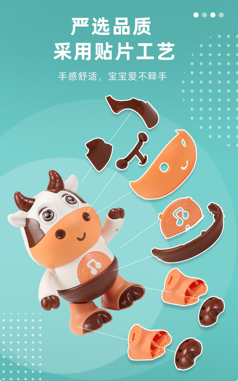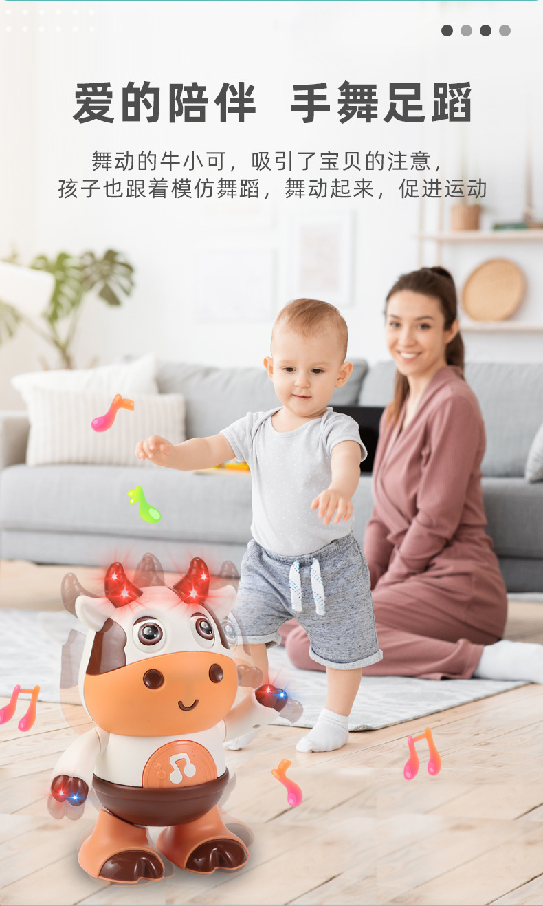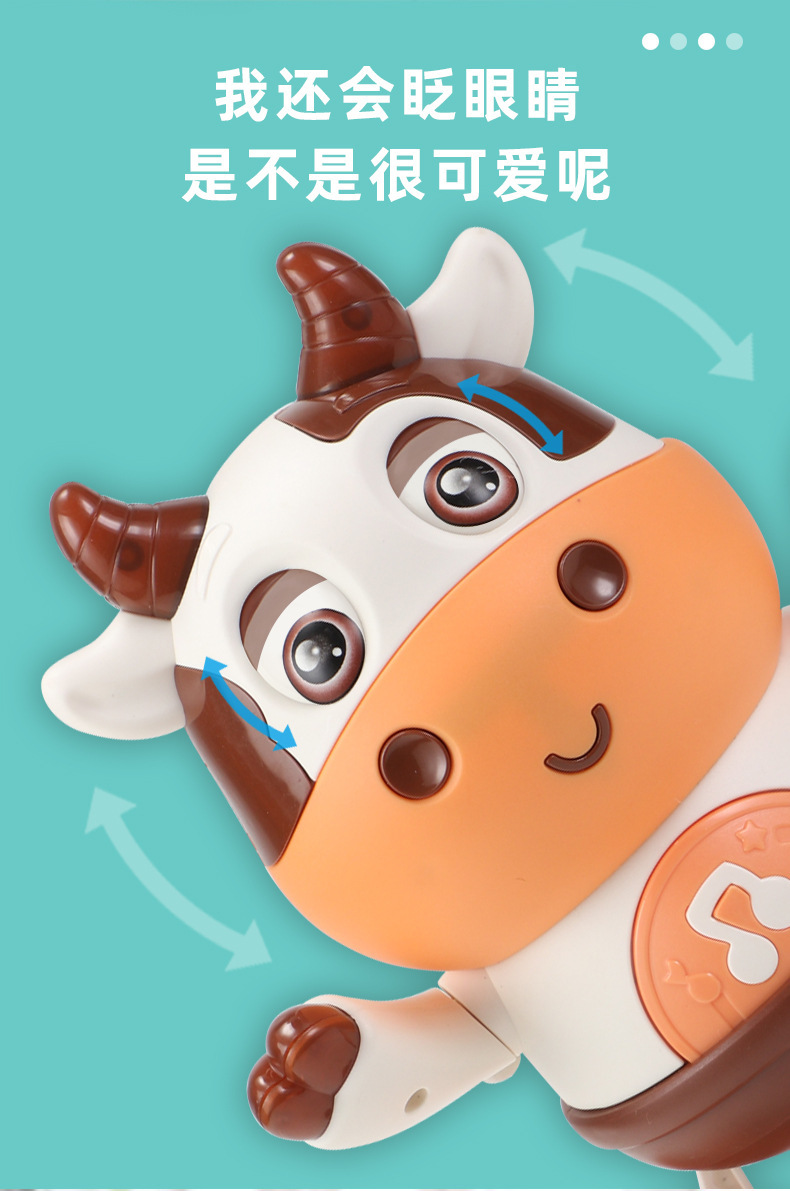 어린이 전기 춤 작은 귀여운 암소 장난감은 가벼운 음악 스윙으로 노래 할 수 있습니다 걷는 교육 로봇 교차 국경스토어 가기