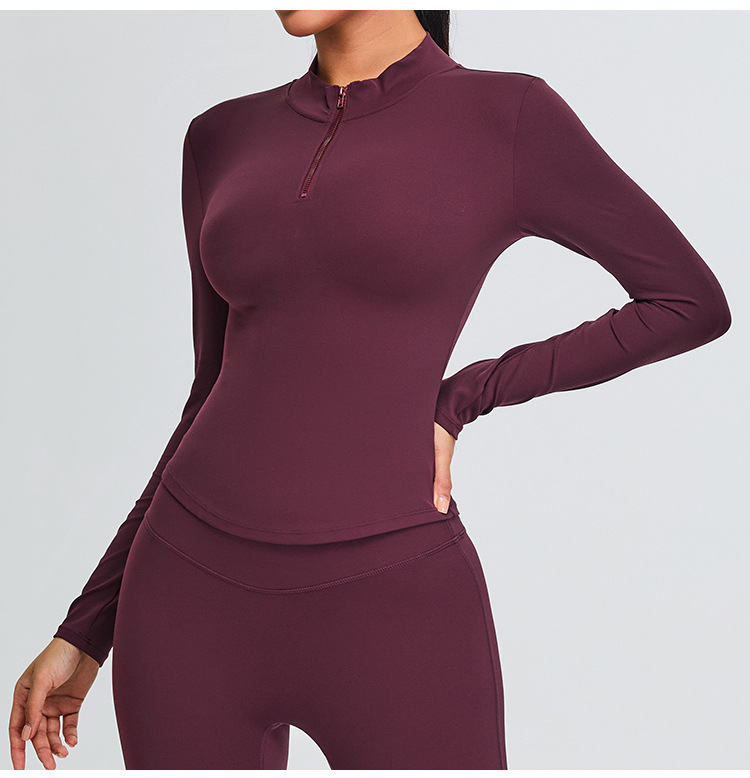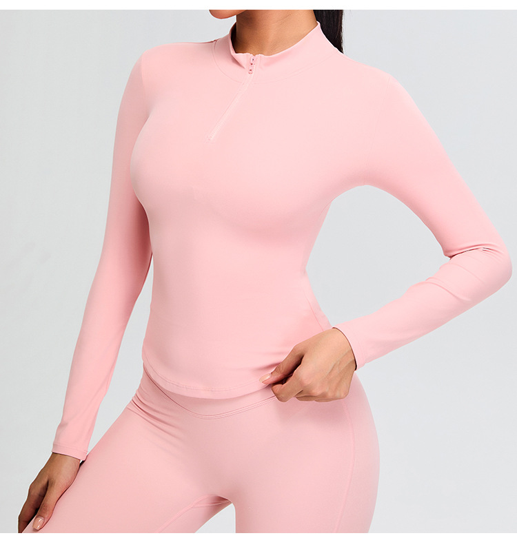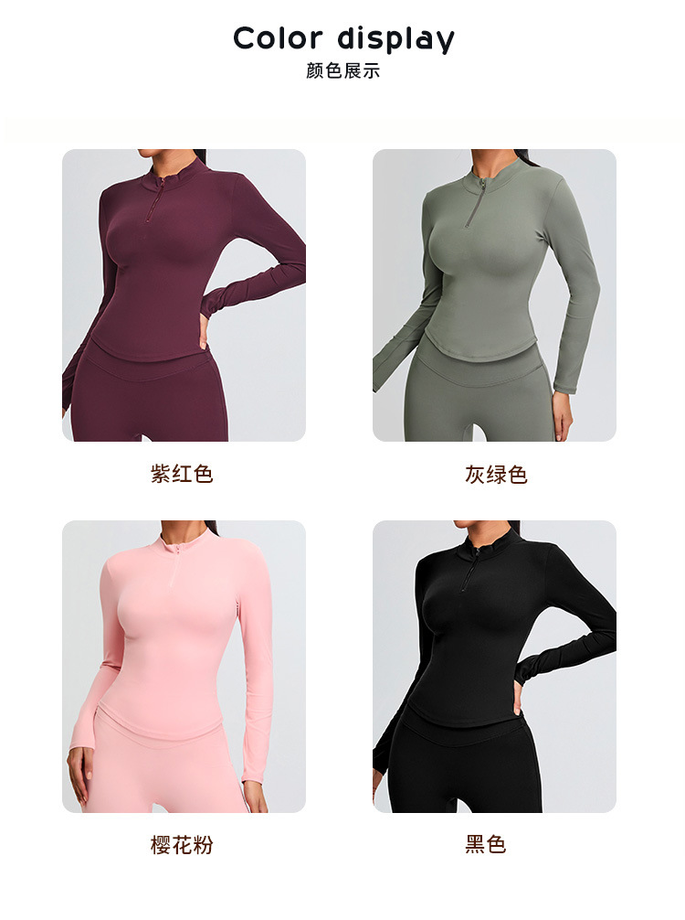 가을과 겨울 반 지퍼 요가 옷 긴팔 여성 전문 달리기 훈련 스포츠 탑 티셔츠 허리 탄성 피트니스 옷스토어 가기
