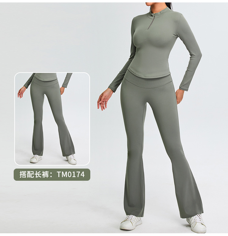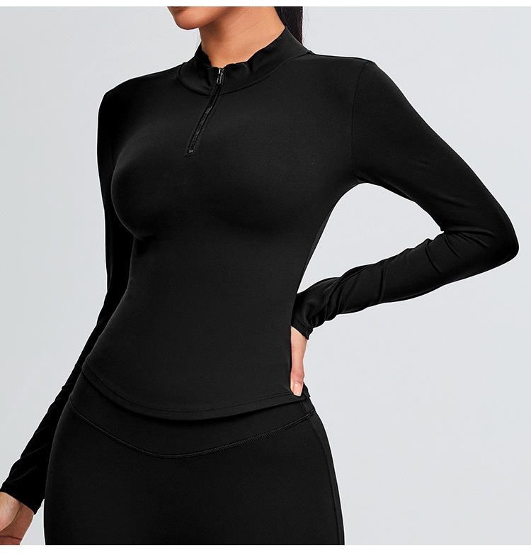 가을과 겨울 반 지퍼 요가 옷 긴팔 여성 전문 달리기 훈련 스포츠 탑 티셔츠 허리 탄성 피트니스 옷