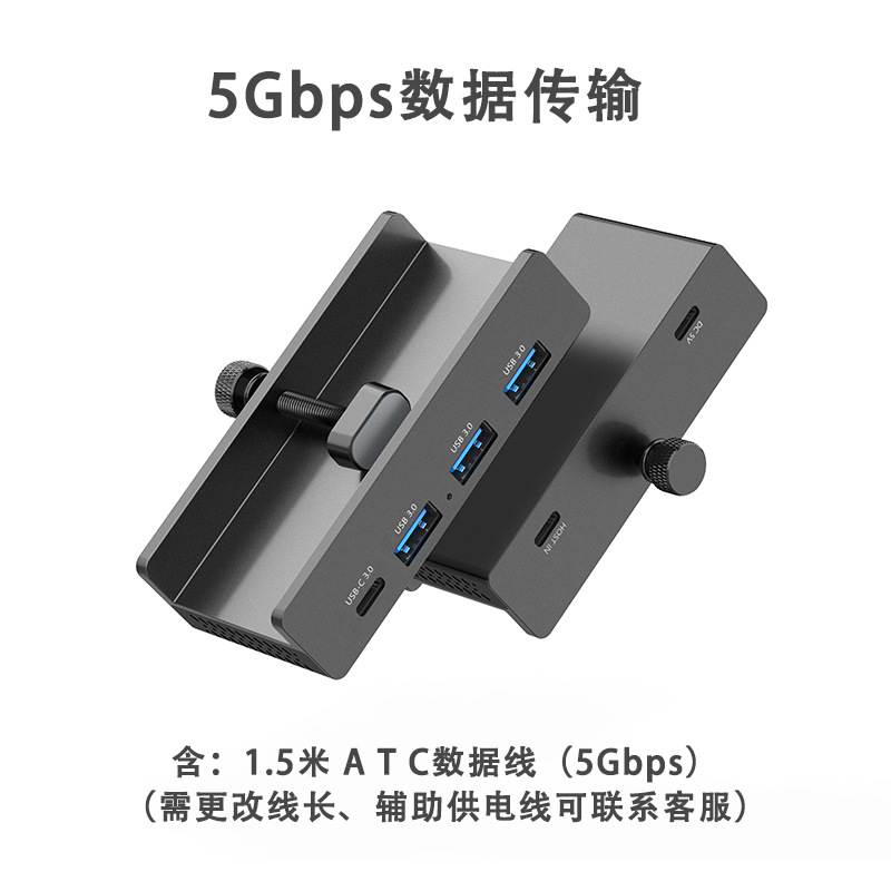 국경을 넘는 최고의 선택 USB3.0 허브 TypeC 확장 다기능 알루미늄 합금 클립형 확장 도크