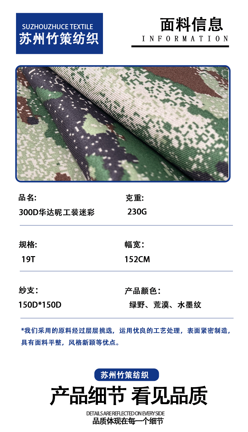 300D 개버딘 위장 직물 작업복 직물 식탁보 두꺼운 겨울과 여름 군사 훈련 의류 직물 의자 커버 내마모성 커튼스토어 가기