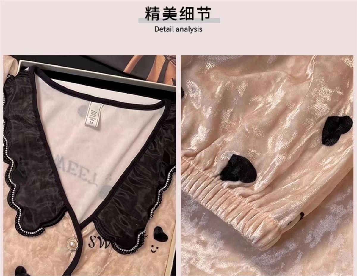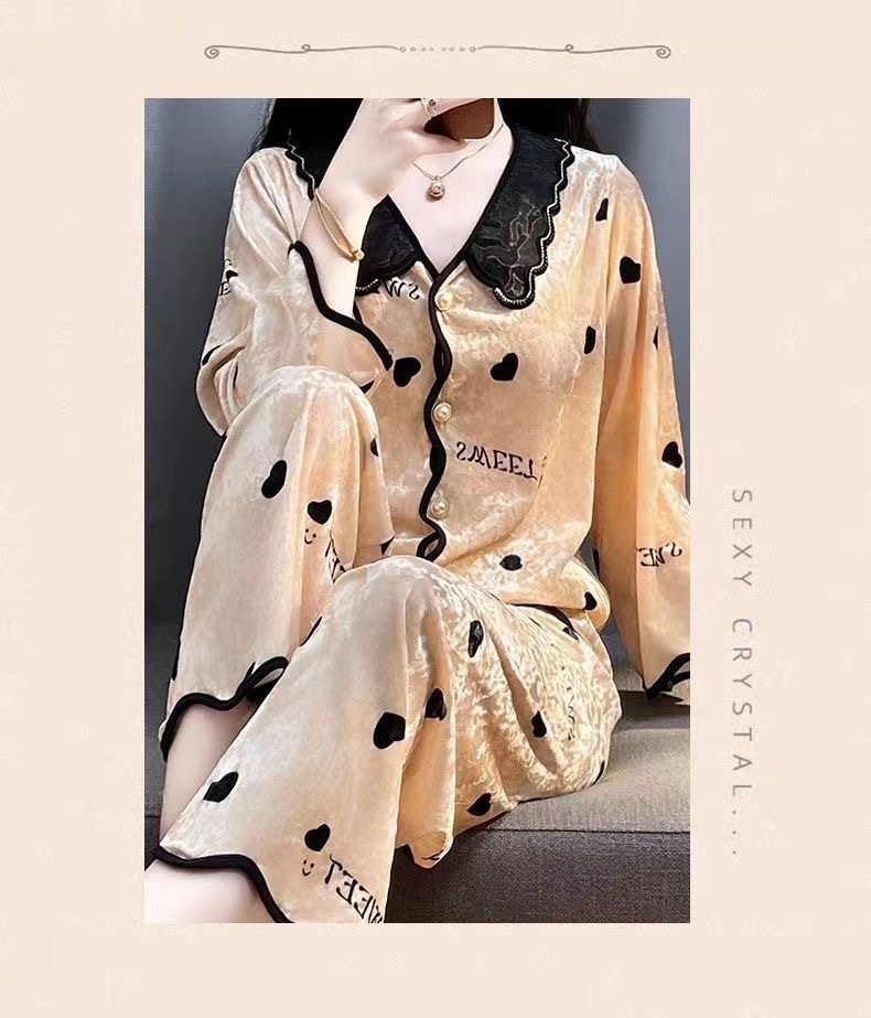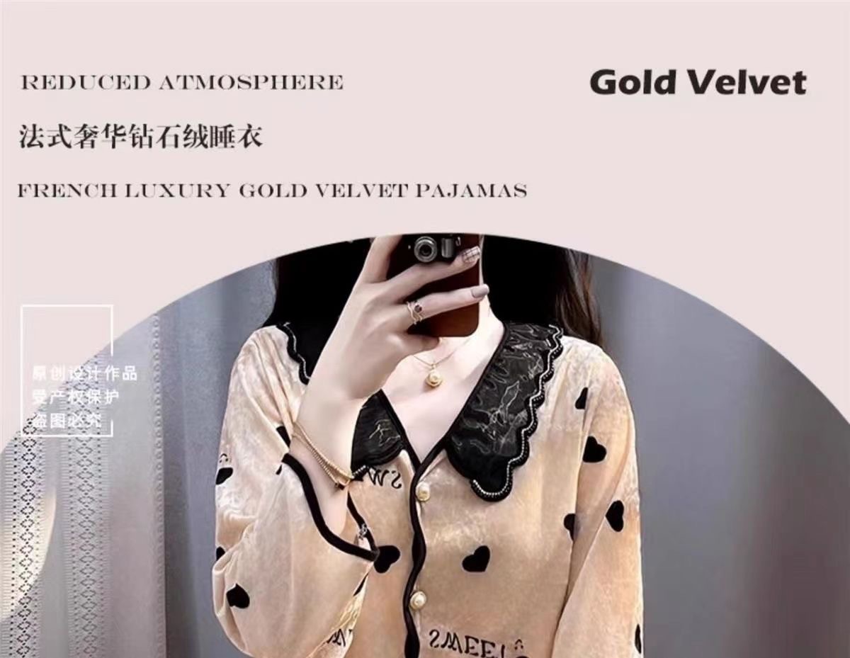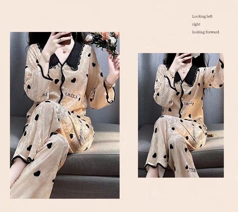 여자 봄과 가을 2024 새로운 인터넷 인기 긴 소매 플러스 사이즈 겨울 홈 의류 가슴 패드와 황금 벨벳 파자마 세트스토어 가기
