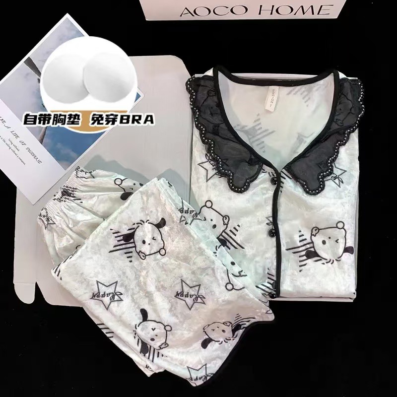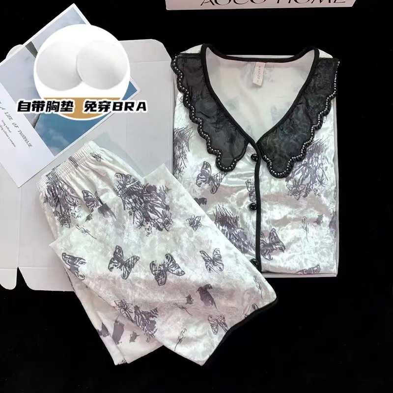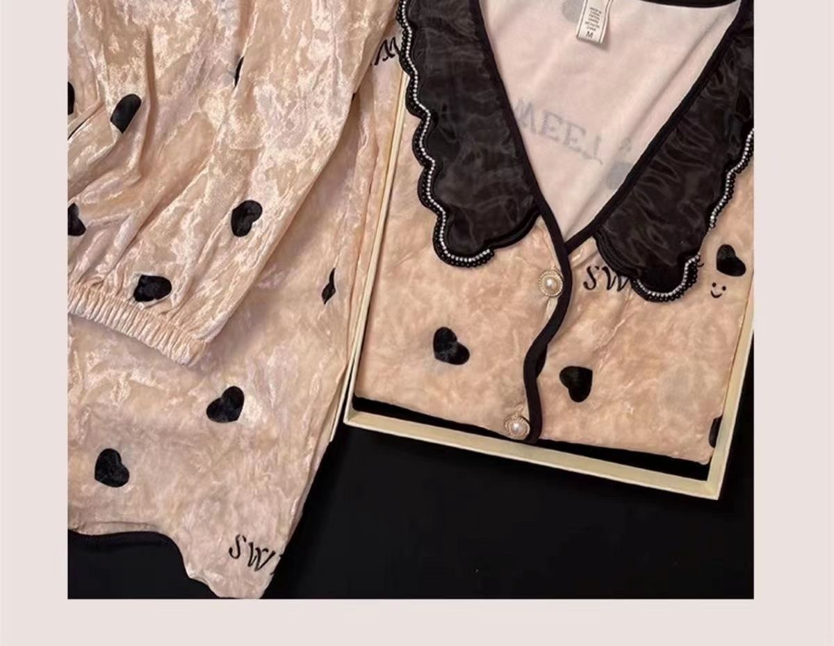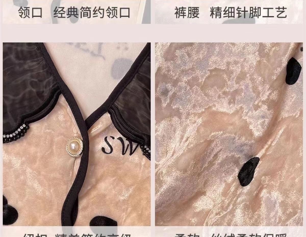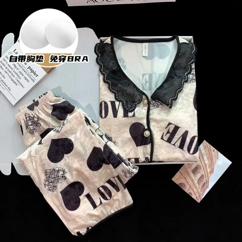 여자 봄과 가을 2024 새로운 인터넷 인기 긴 소매 플러스 사이즈 겨울 홈 의류 가슴 패드와 황금 벨벳 파자마 세트스토어 가기