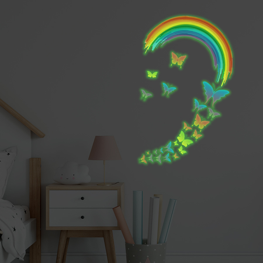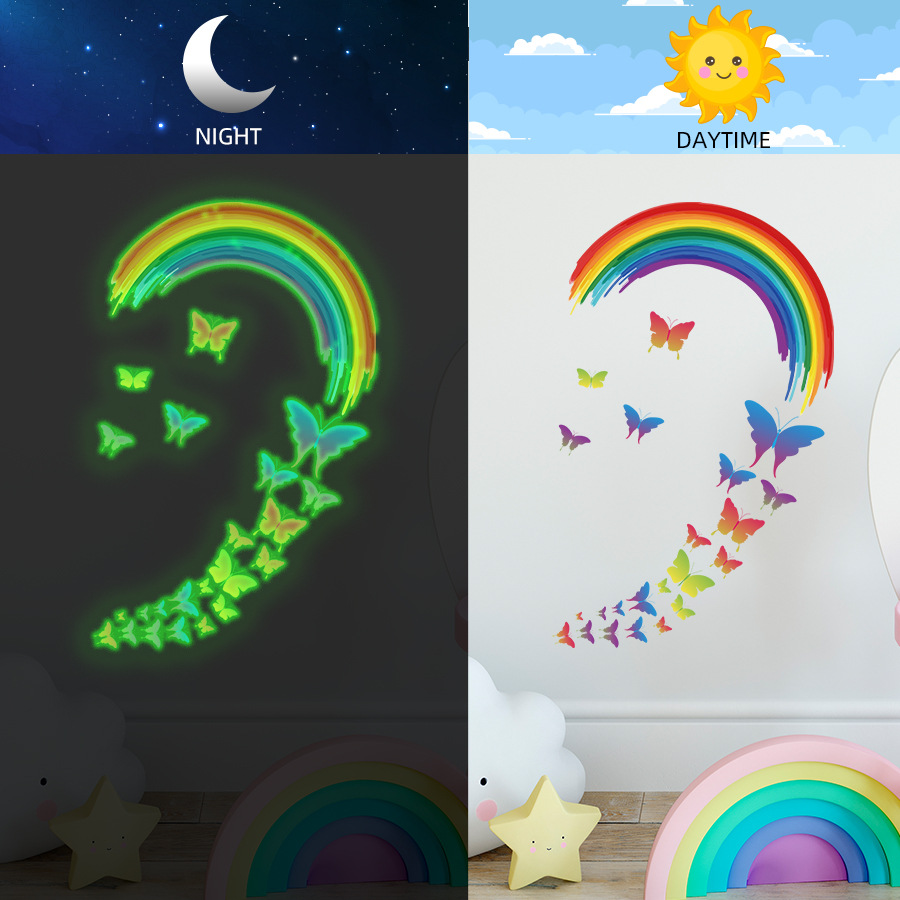 빛나는 만화 나비 무지개 자기 접착 벽 스티커 Ins 거실 침실 어린이 방 장식 스티커 BR-YG027C