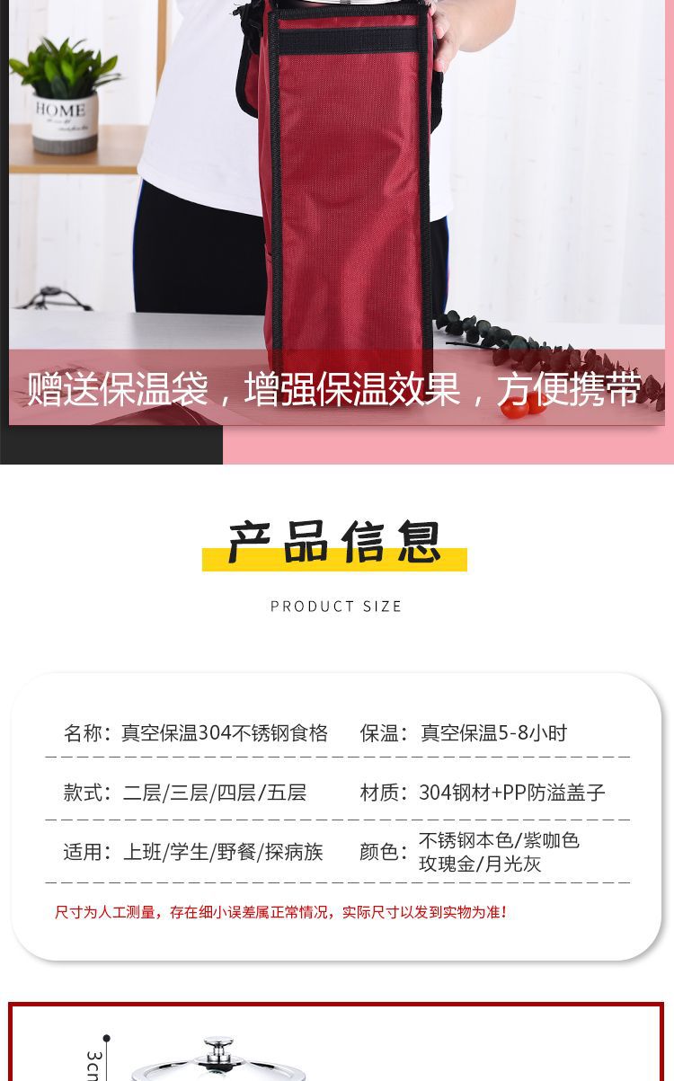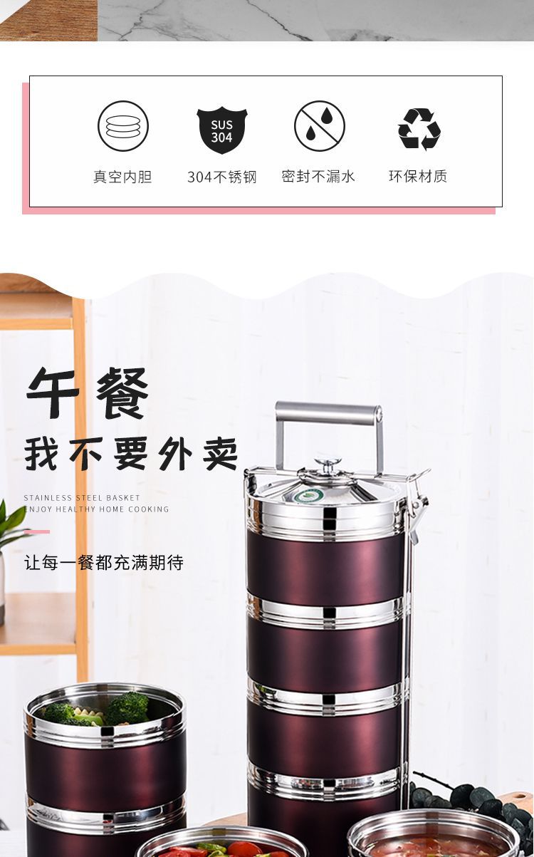 304 스테인레스 스틸 진공 단열 도시락 다층 절연 배럴 밀봉 누출 방지 학생 사무실 노동자 도시락스토어 가기
