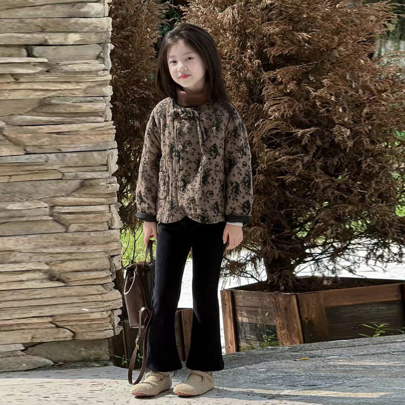 도매 크림 아이 소녀 마이크로 플레어 바지 가을과 겨울 어린이 기모 캐주얼 바지 소녀 아기 검은 긴 바지스토어 가기