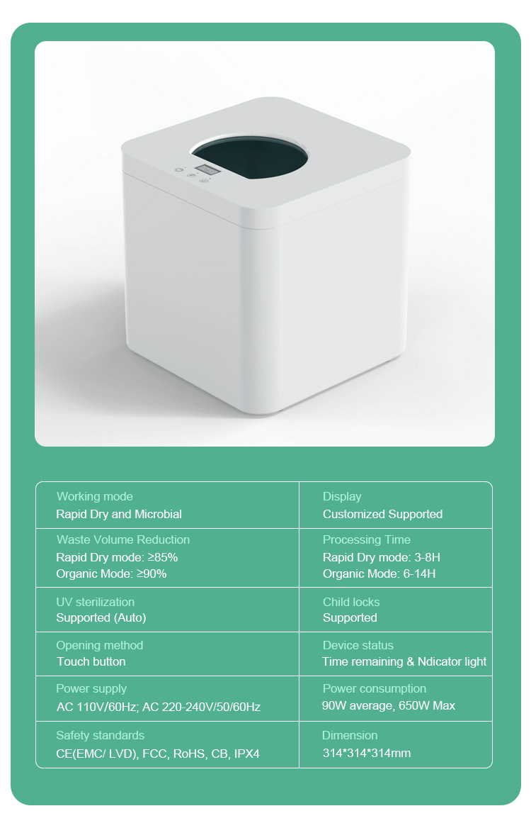 신형 5.2L 가정용 음식물 쓰레기 처리기 가정용 건조 음식 퇴비화 기계 저소음