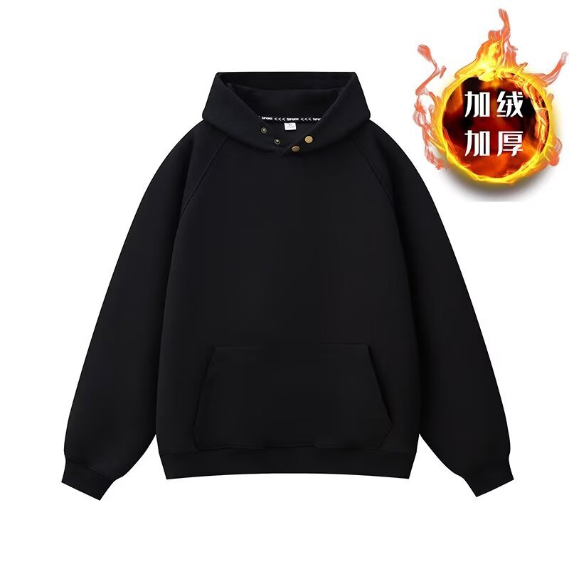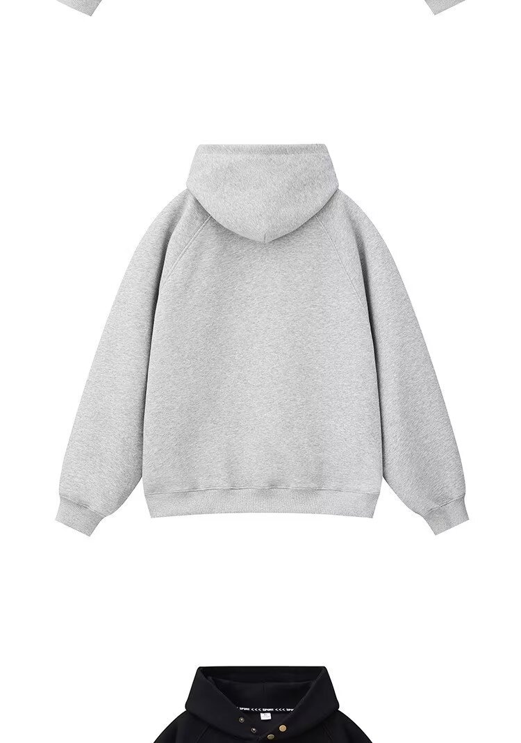 가을과 겨울 패션 브랜드 미국식 더블 압력 버튼 후드 스웨터 남성용 솔리드 컬러 헤비 루즈 탑 남성용 플리스 재킷