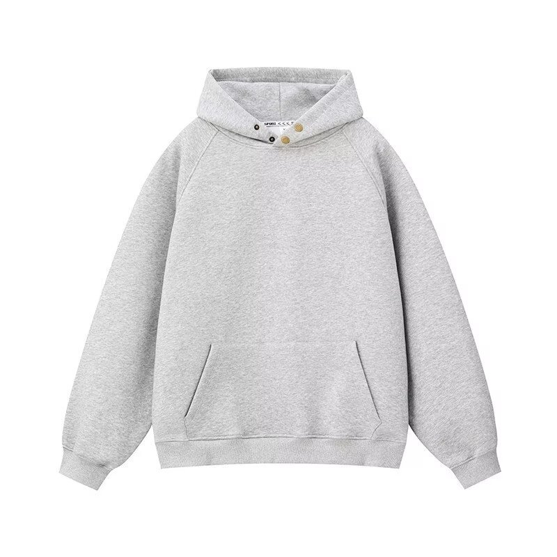가을과 겨울 패션 브랜드 미국식 더블 압력 버튼 후드 스웨터 남성용 솔리드 컬러 헤비 루즈 탑 남성용 플리스 재킷스토어 가기