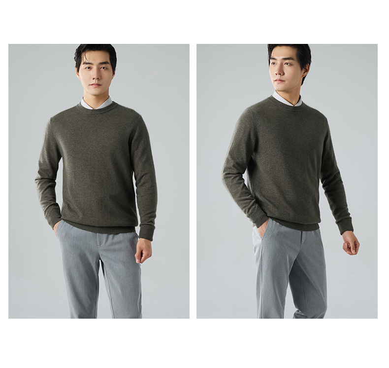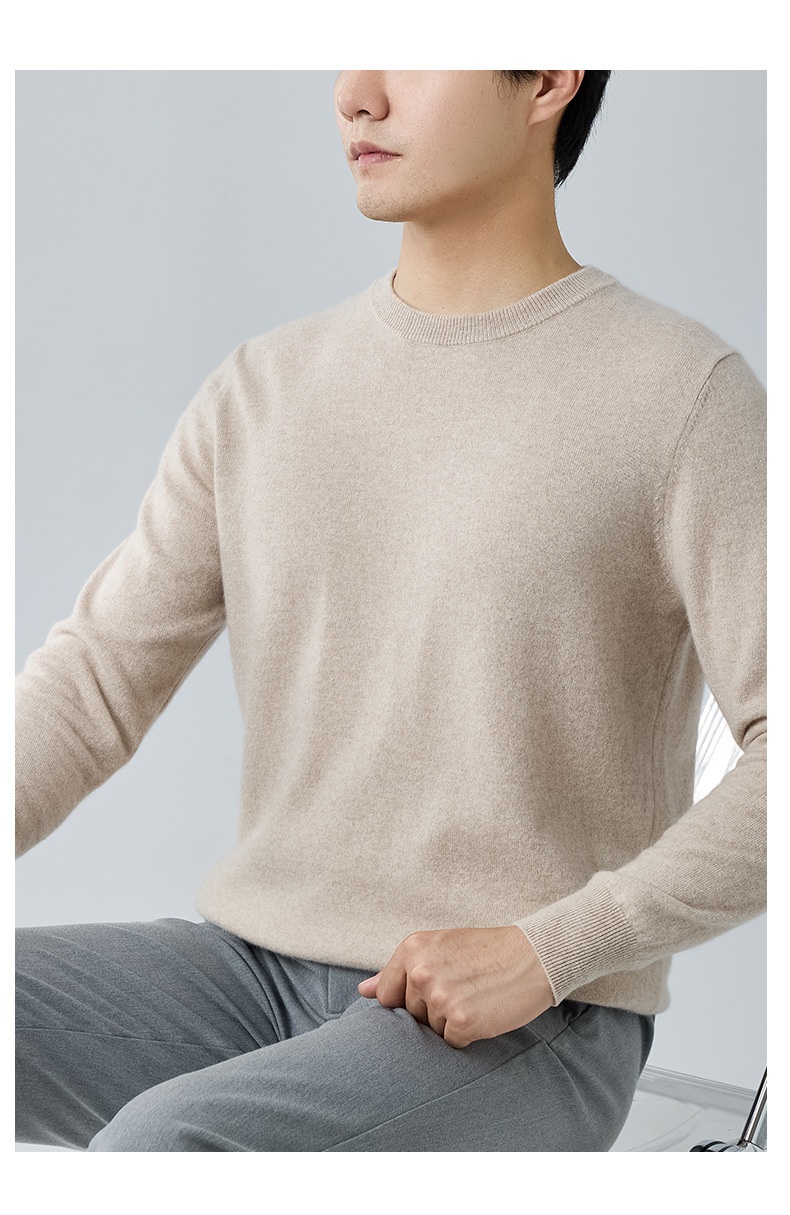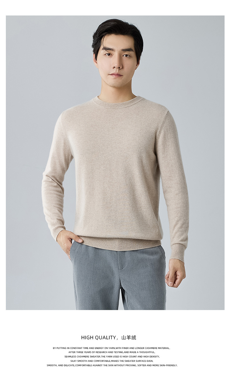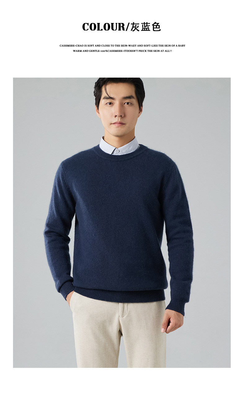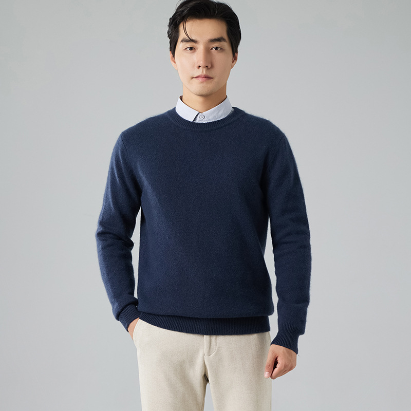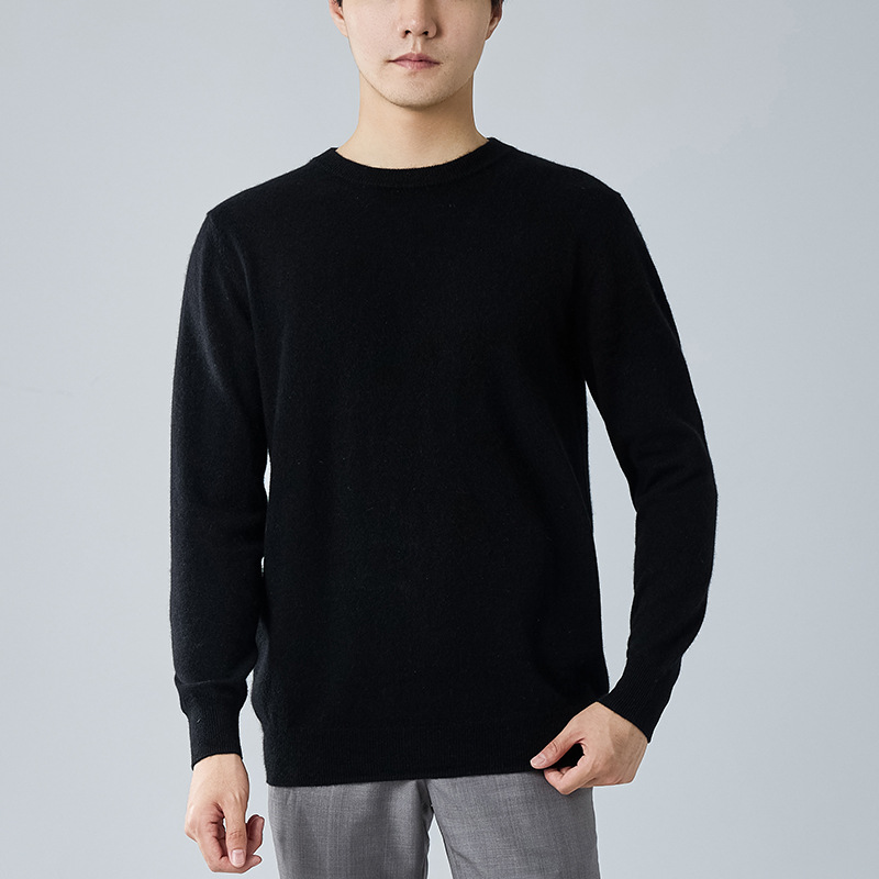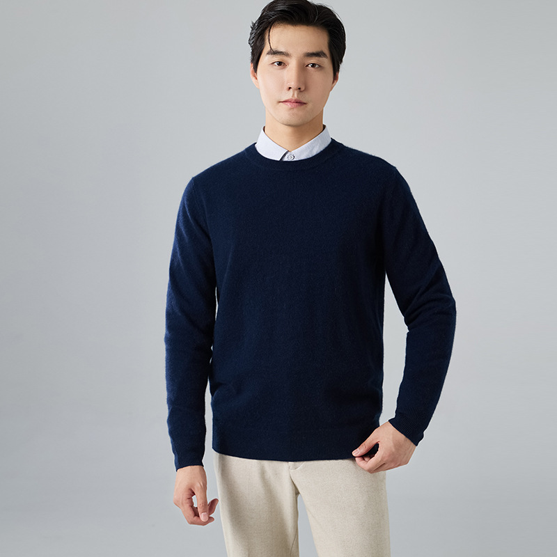 2024 새로운 가을과 겨울 새로운 올 매치 두꺼운 캐시미어 스웨터 남자 크루 넥 스웨터 솔리드 컬러 긴 소매 니트베이스 셔츠