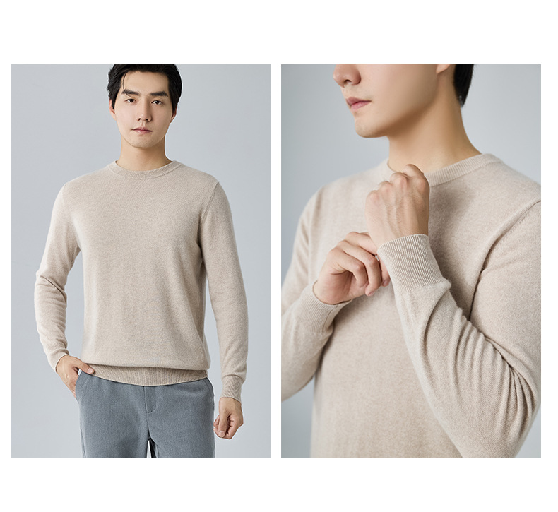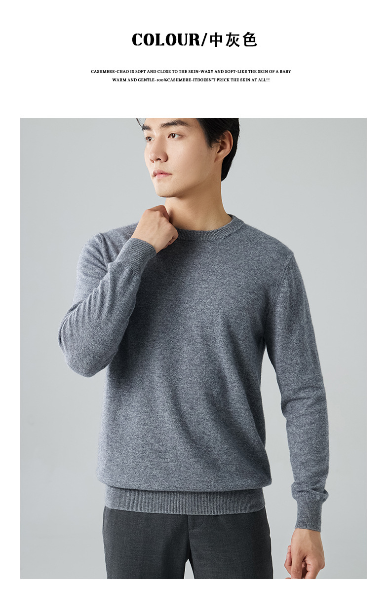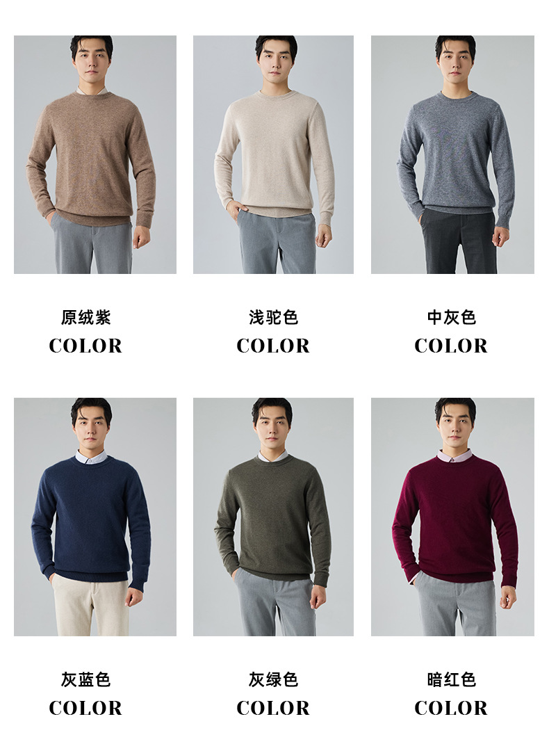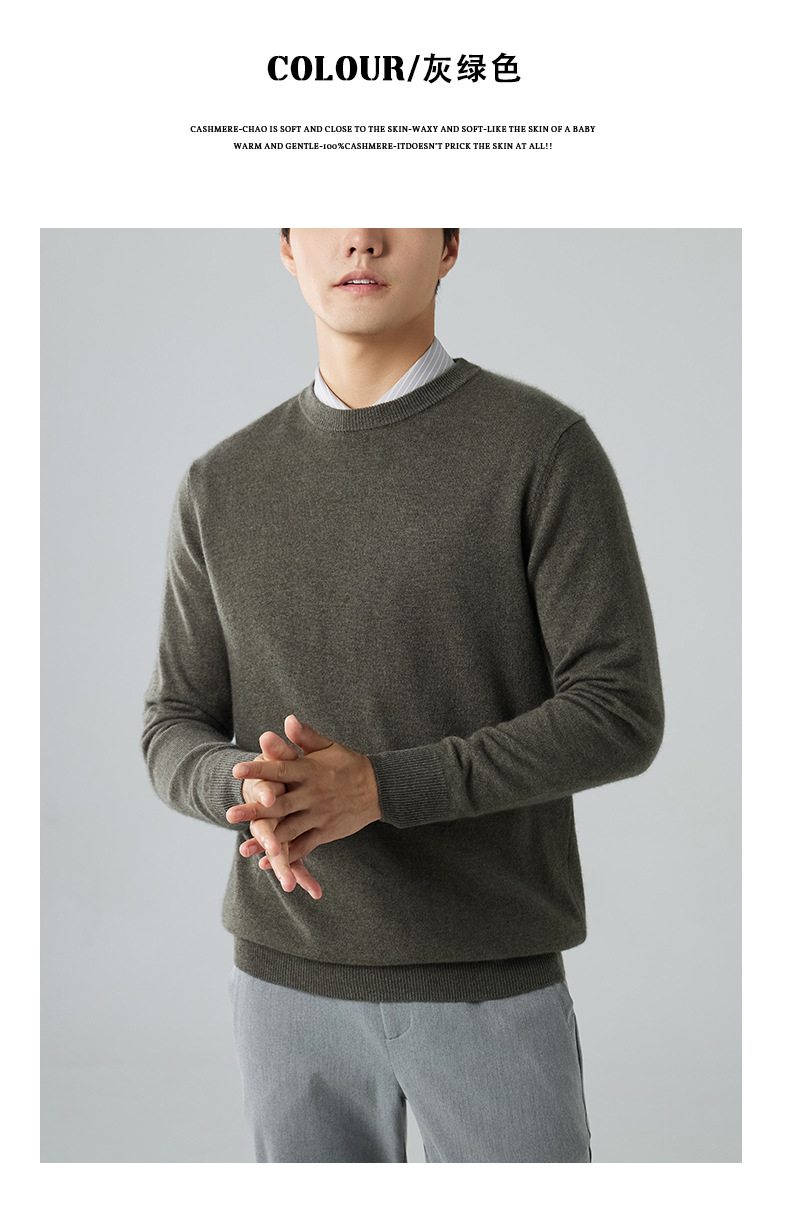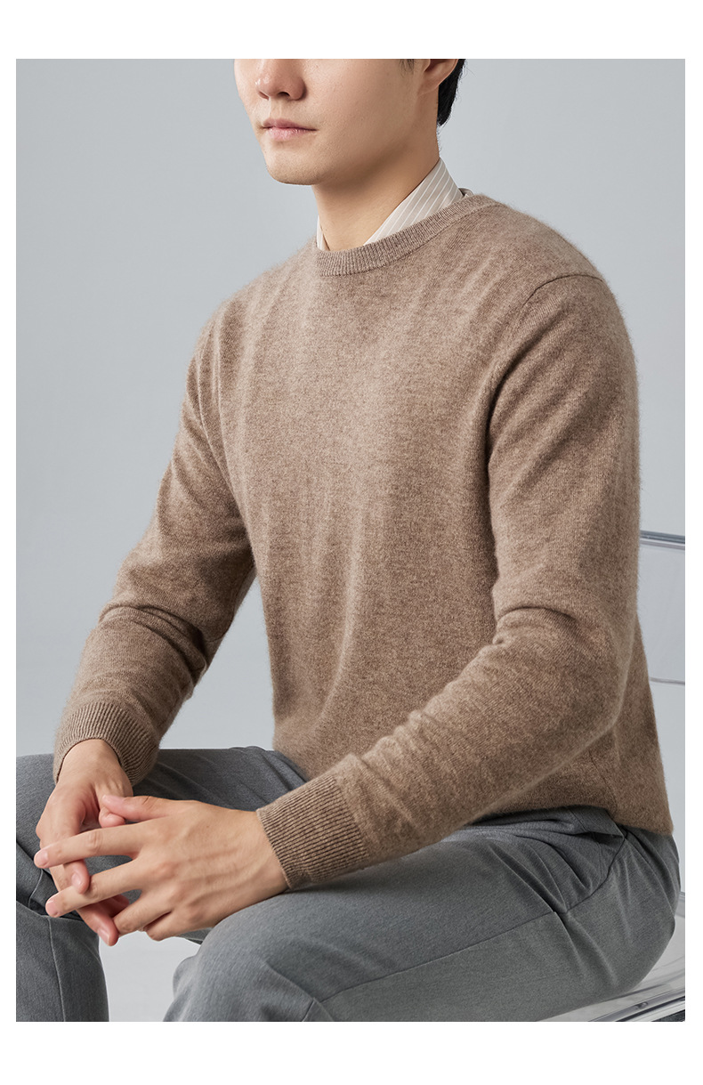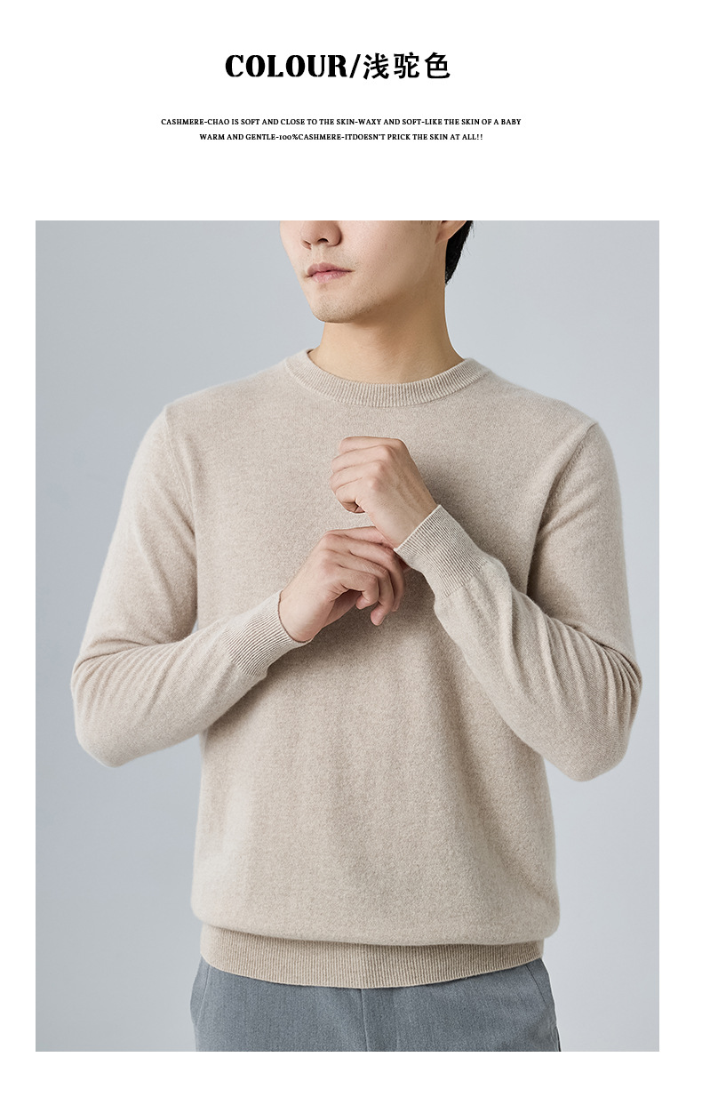 2024 새로운 가을과 겨울 새로운 올 매치 두꺼운 캐시미어 스웨터 남자 크루 넥 스웨터 솔리드 컬러 긴 소매 니트베이스 셔츠