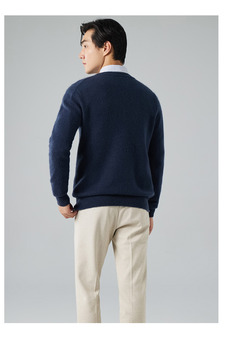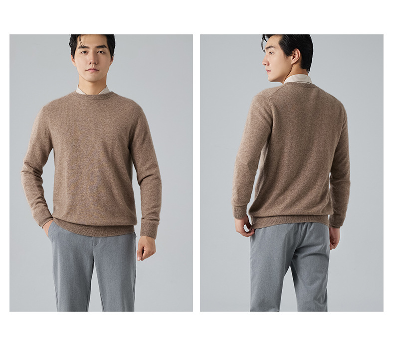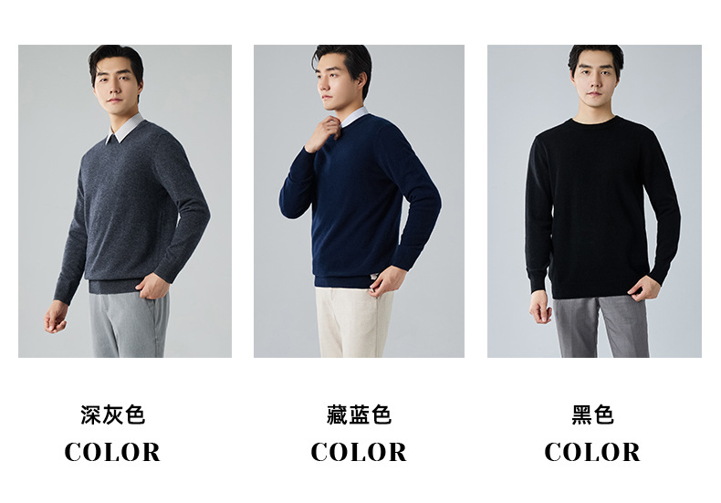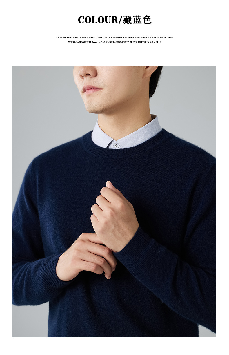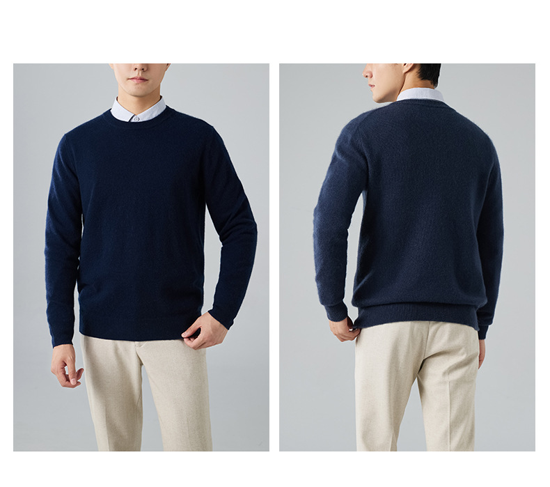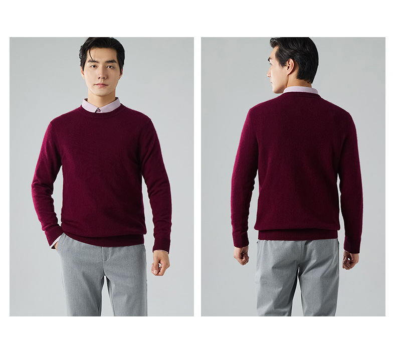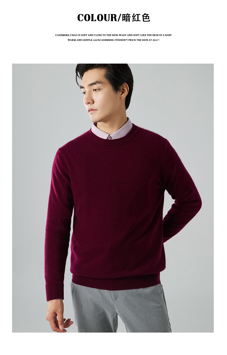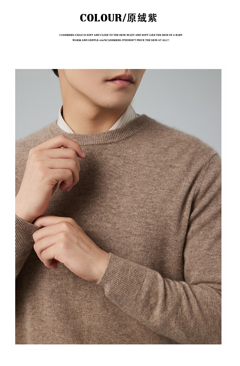 2024 새로운 가을과 겨울 새로운 올 매치 두꺼운 캐시미어 스웨터 남자 크루 넥 스웨터 솔리드 컬러 긴 소매 니트베이스 셔츠