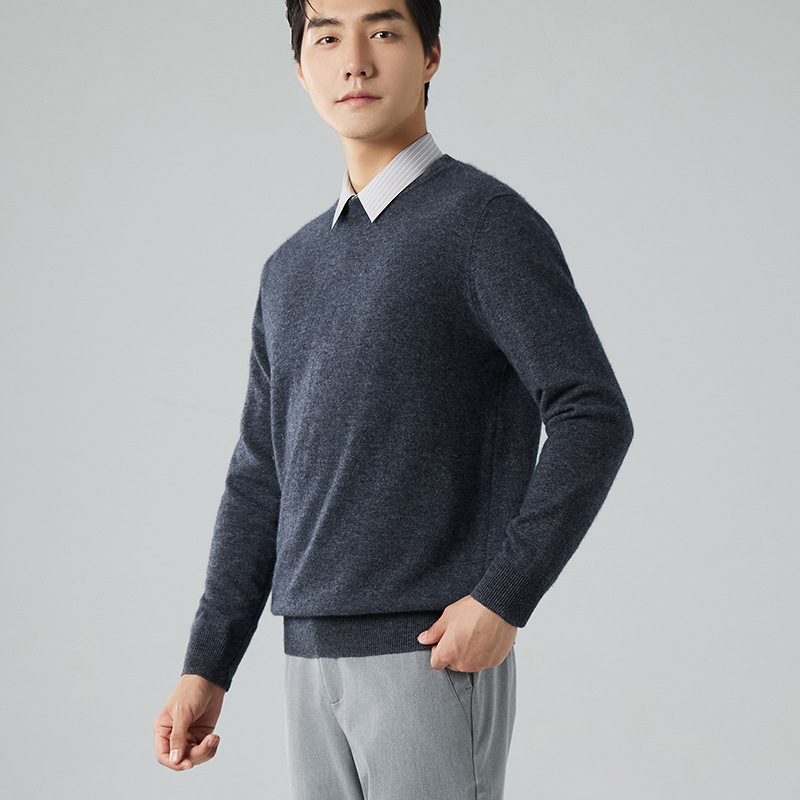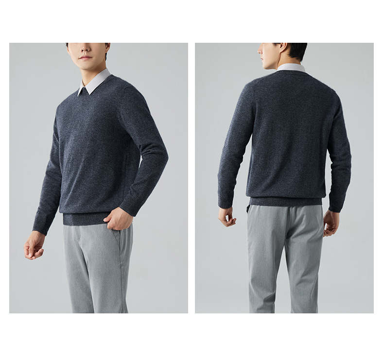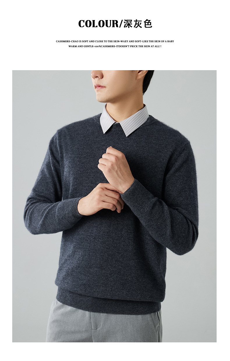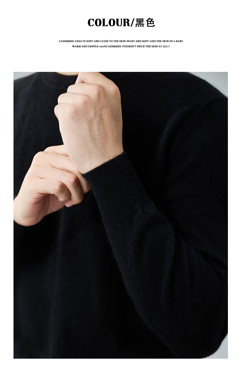 2024 새로운 가을과 겨울 새로운 올 매치 두꺼운 캐시미어 스웨터 남자 크루 넥 스웨터 솔리드 컬러 긴 소매 니트베이스 셔츠스토어 가기