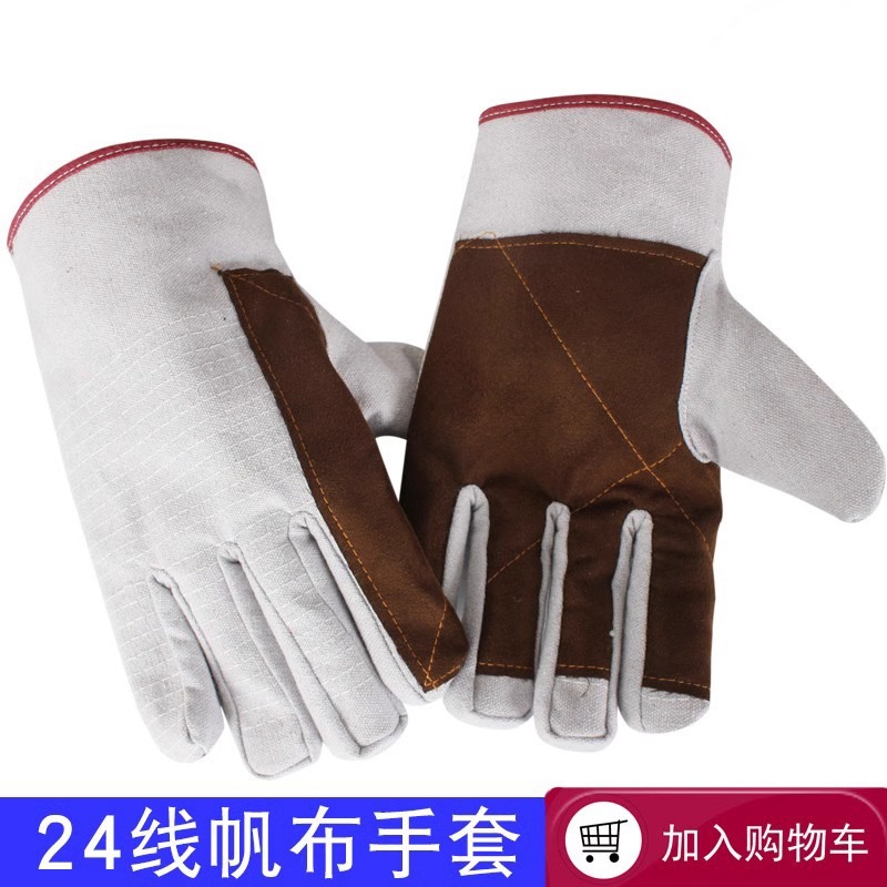 용접 캔버스 장갑 내마모성 작업장 두꺼운 내마모성 더블 레이어 풀 라인 24 라인 더블 레이어 캔버스 장갑