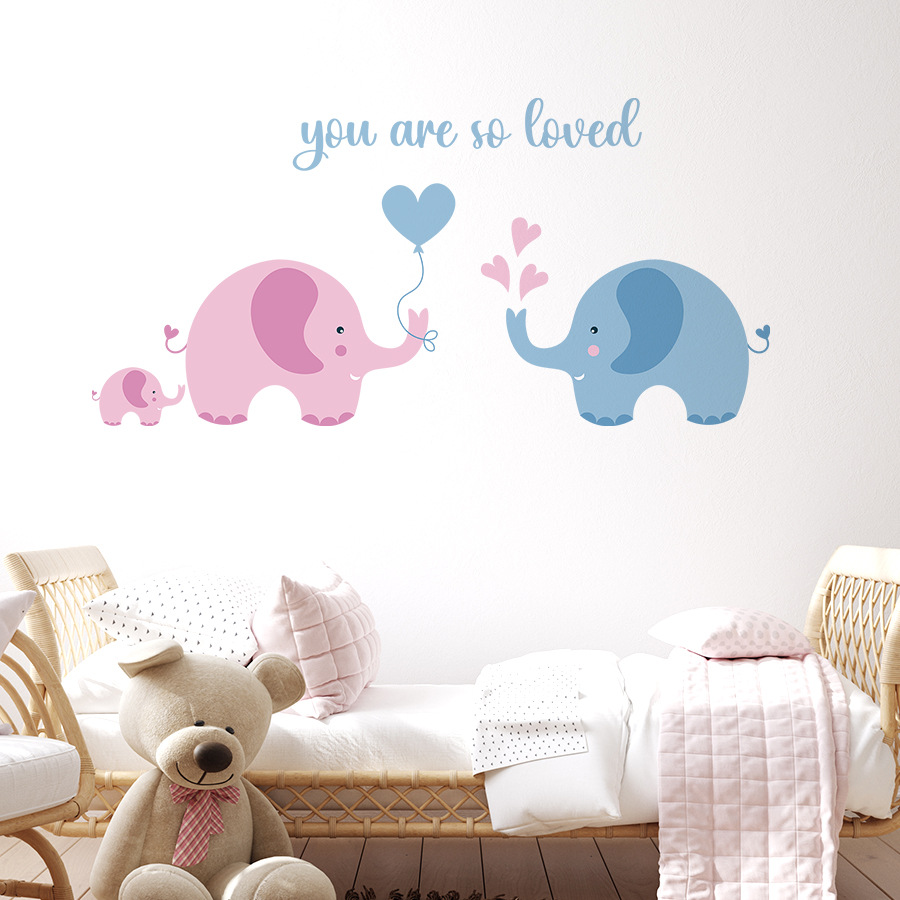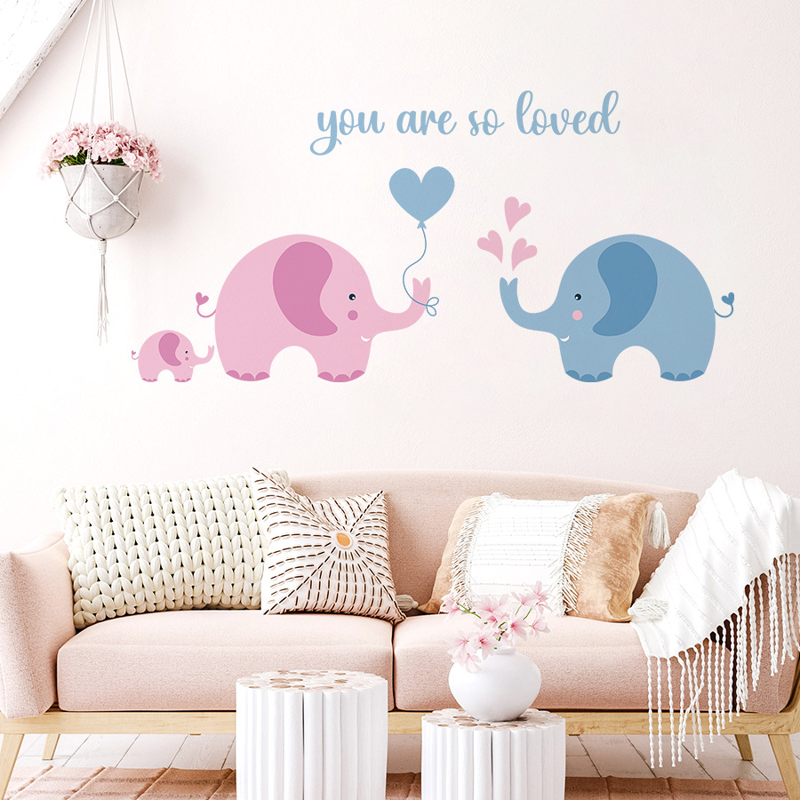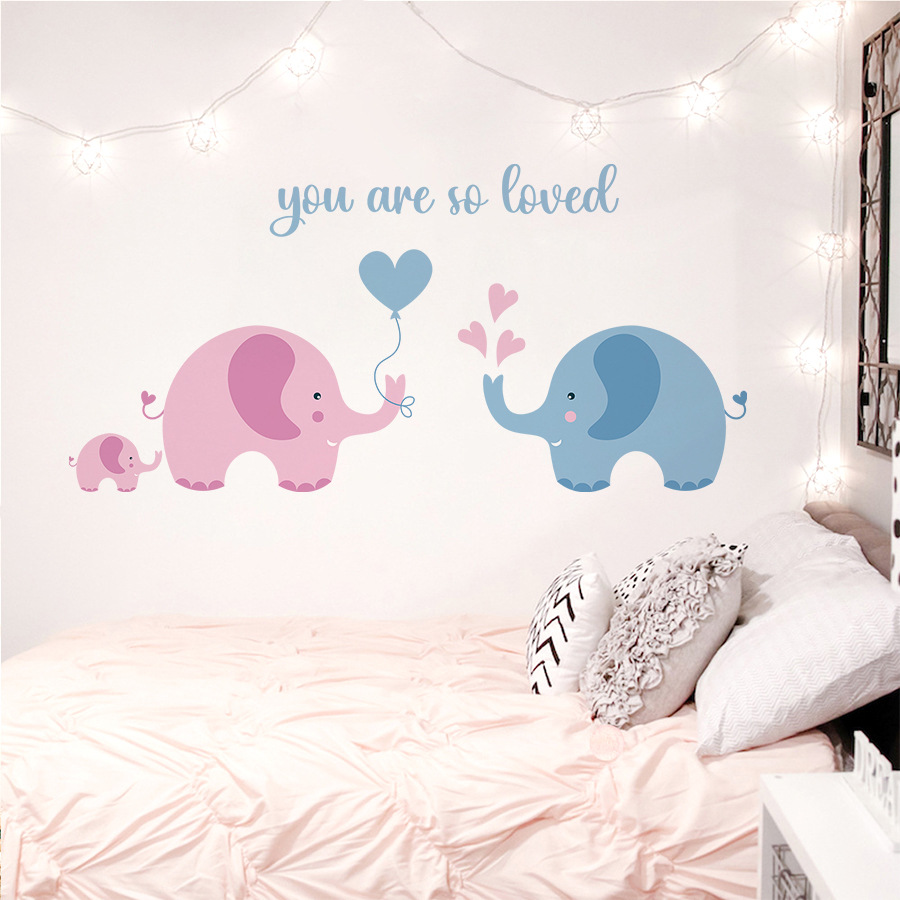 만화 Q 귀여운 아기 코끼리 소녀 스타일 어린이 방 장식 스티커 ZN3147E 자체 접착 벽 스티커