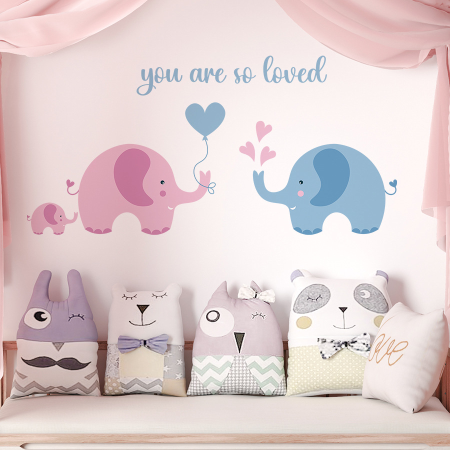 만화 Q 귀여운 아기 코끼리 소녀 스타일 어린이 방 장식 스티커 ZN3147E 자체 접착 벽 스티커스토어 가기
