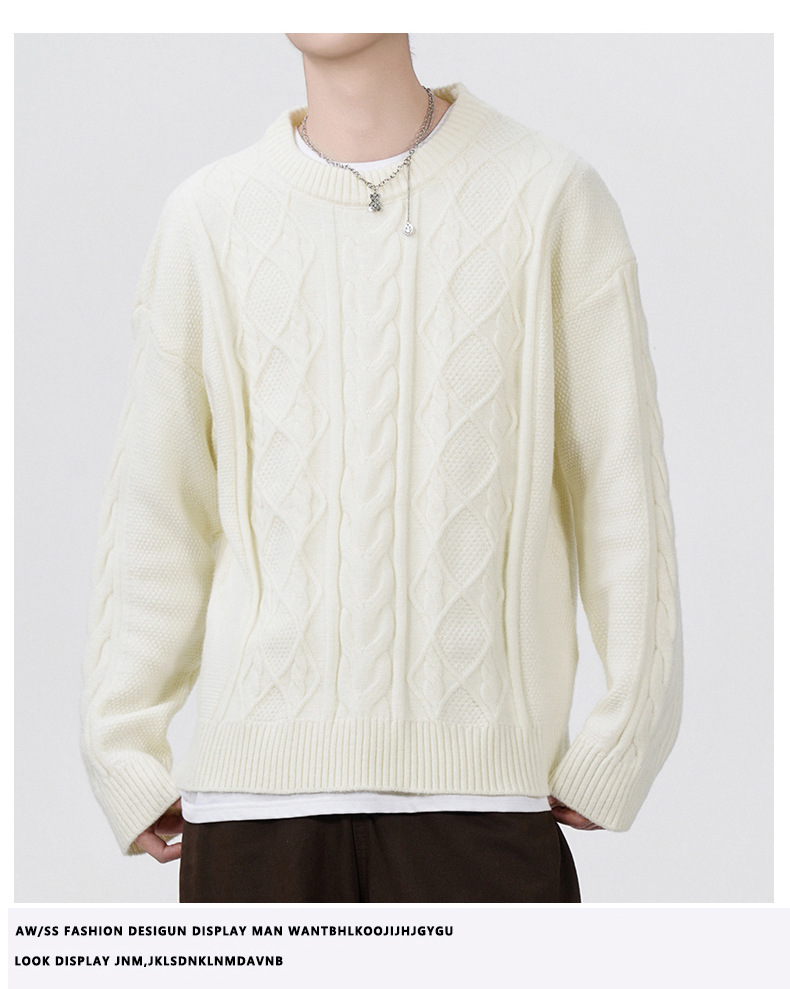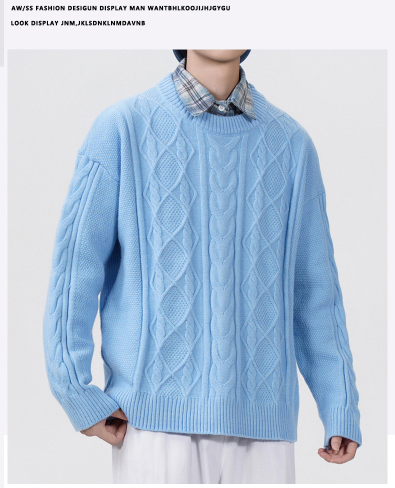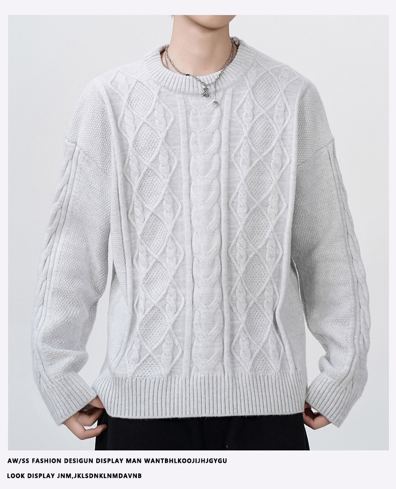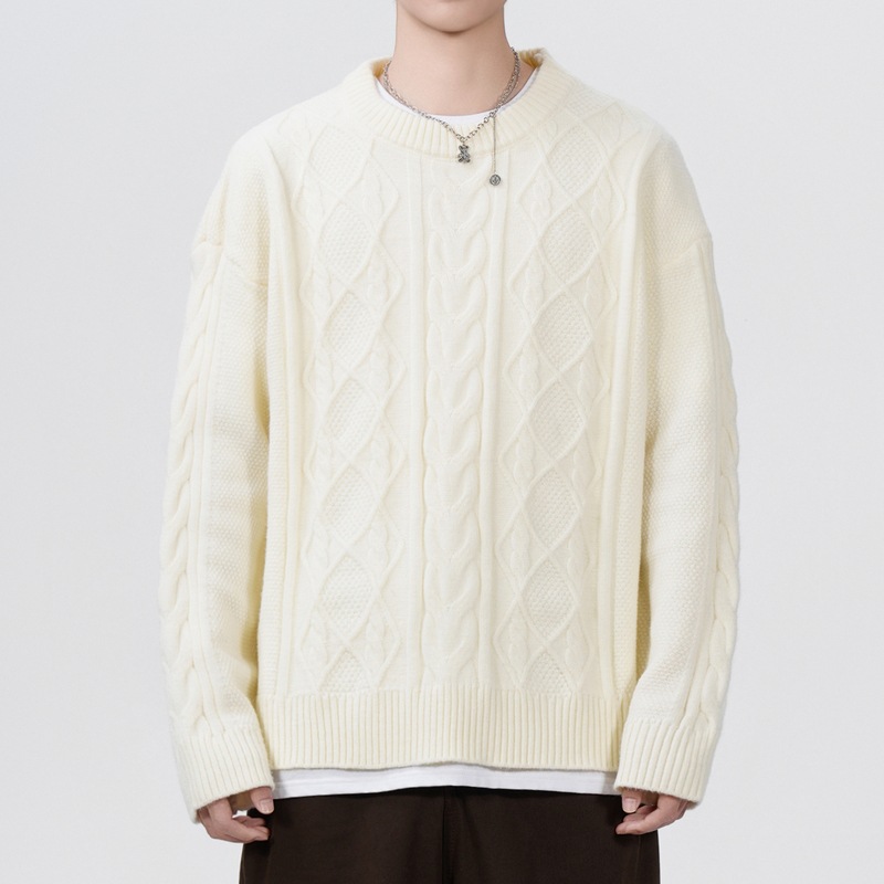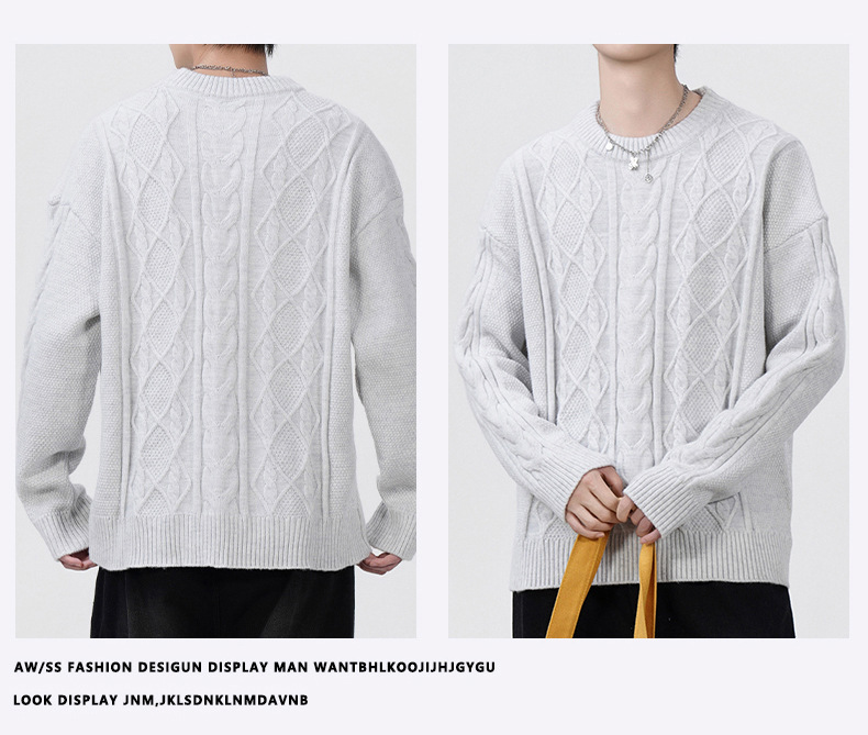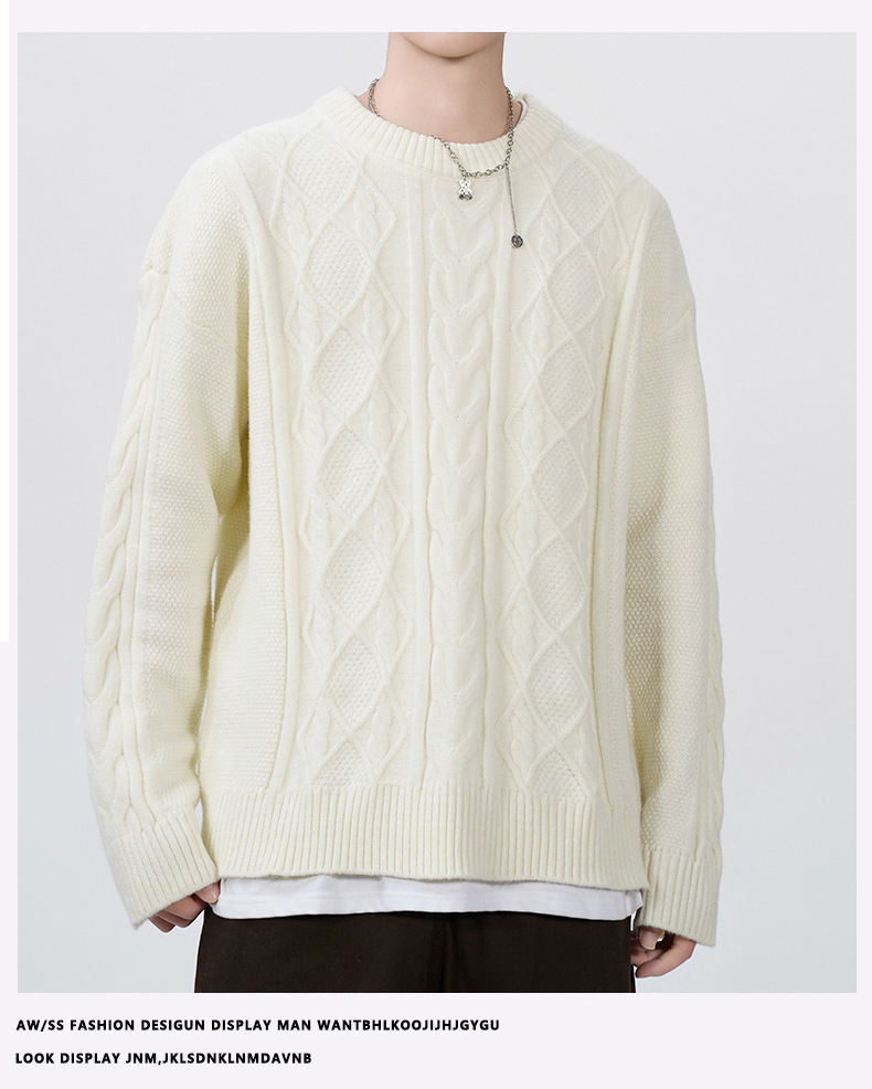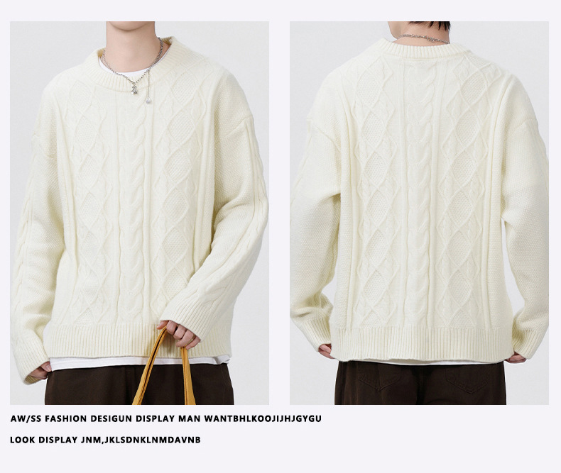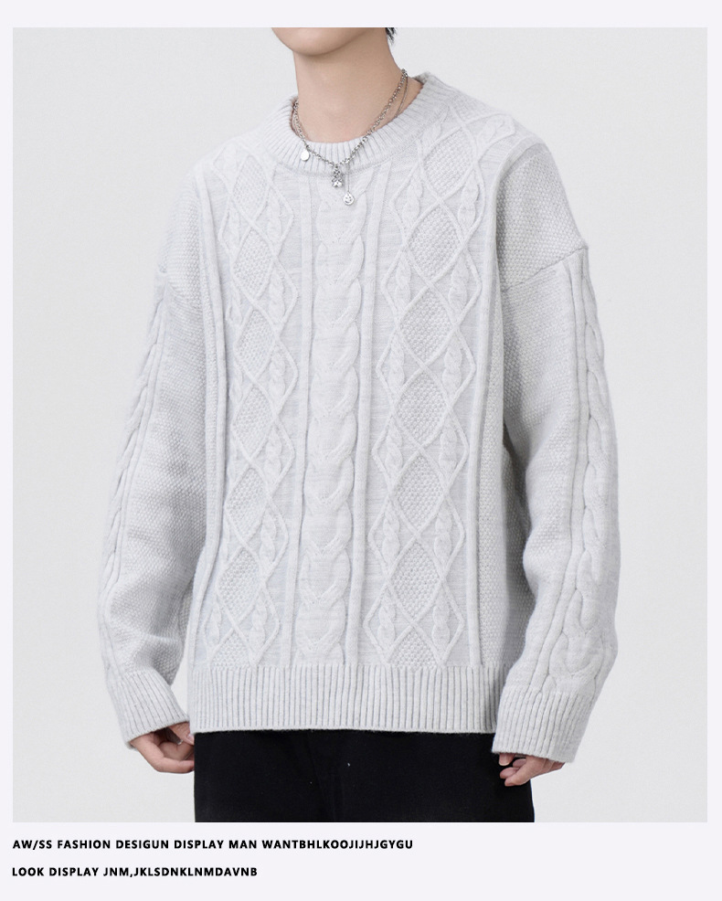 남성 의류 도매 가을과 겨울 새로운 느슨한 둥근 목 트위스트 꽃 스웨터 남성용 두꺼운 단색 느슨한 니트 스웨터 조수스토어 가기