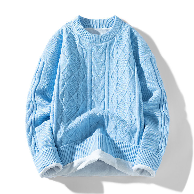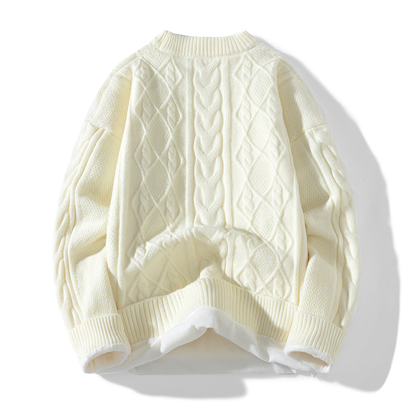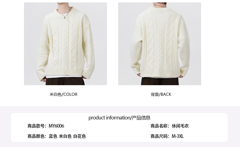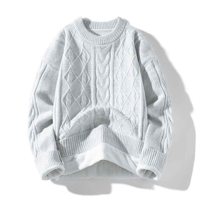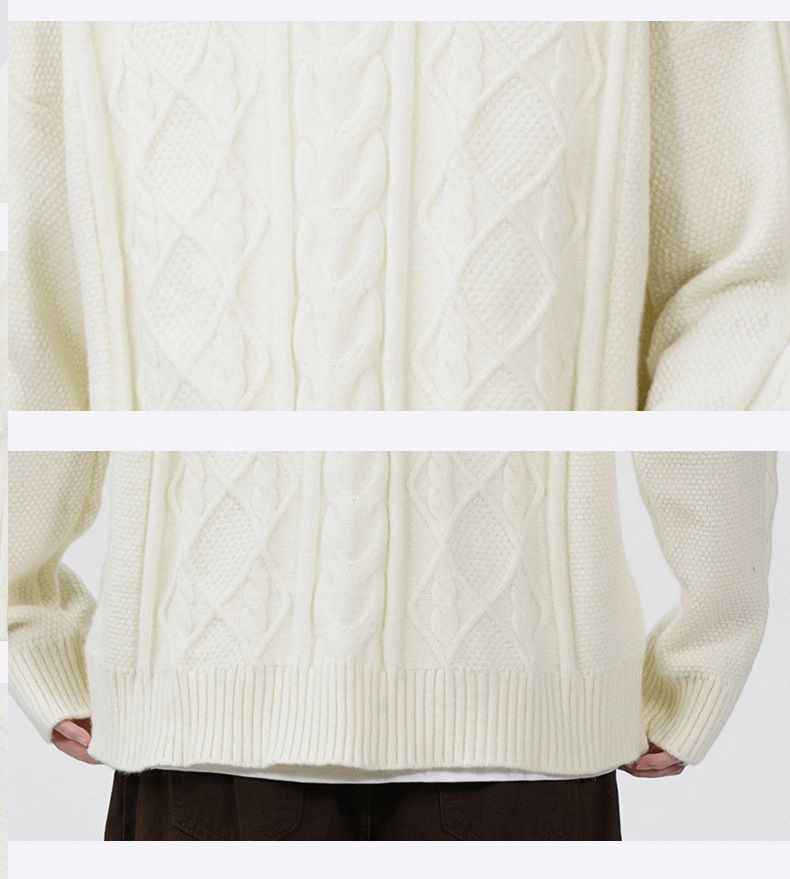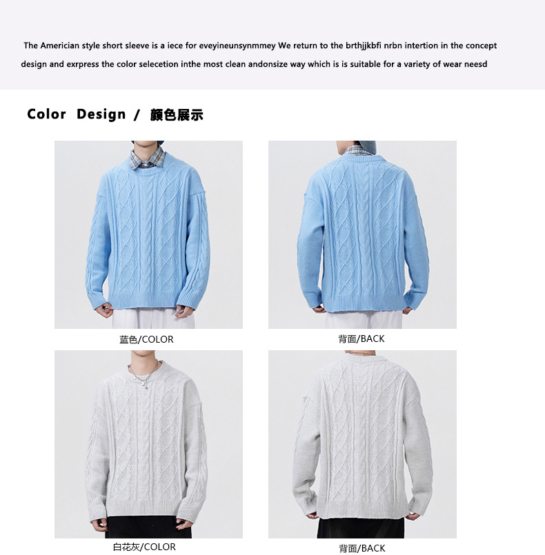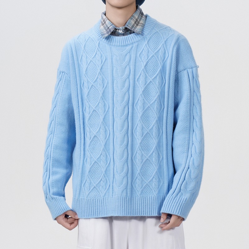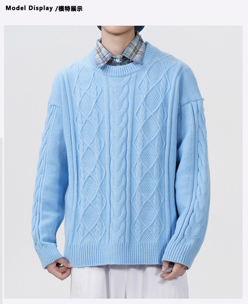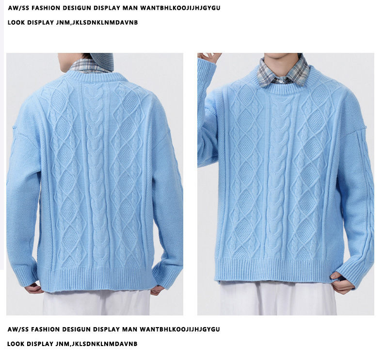남성 의류 도매 가을과 겨울 새로운 느슨한 둥근 목 트위스트 꽃 스웨터 남성용 두꺼운 단색 느슨한 니트 스웨터 조수스토어 가기
