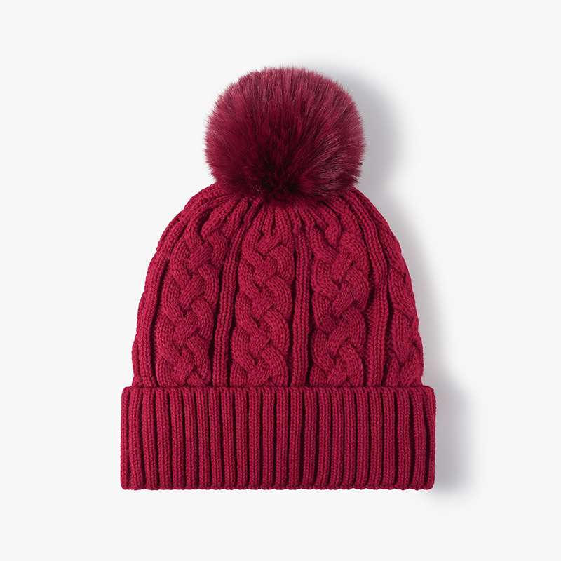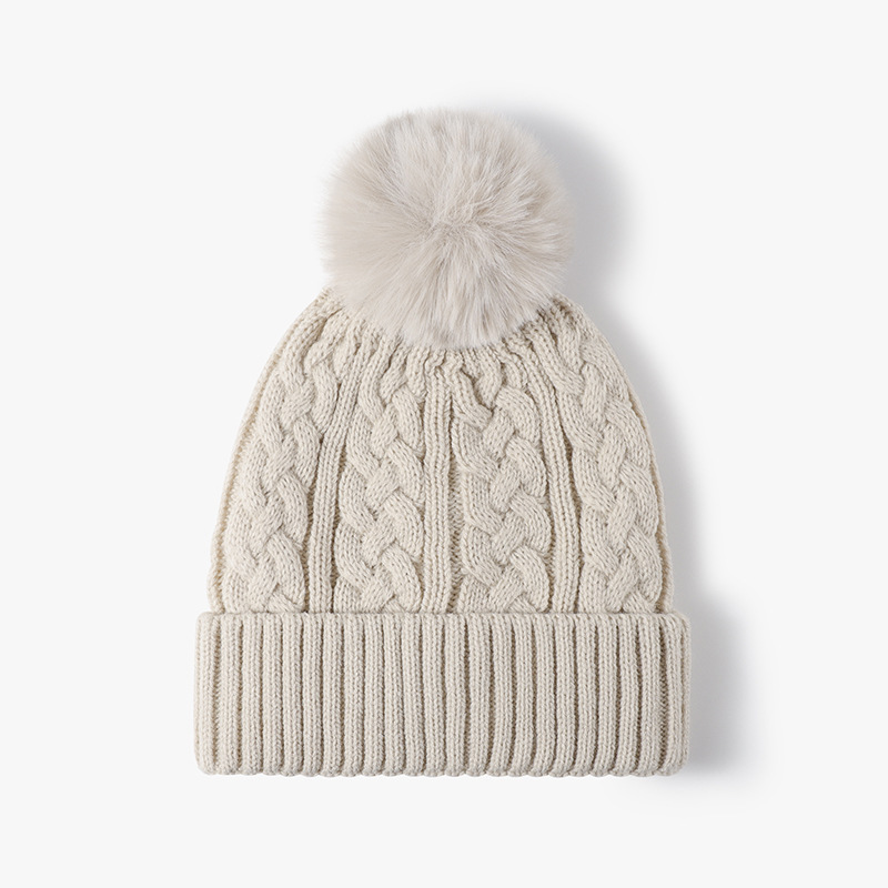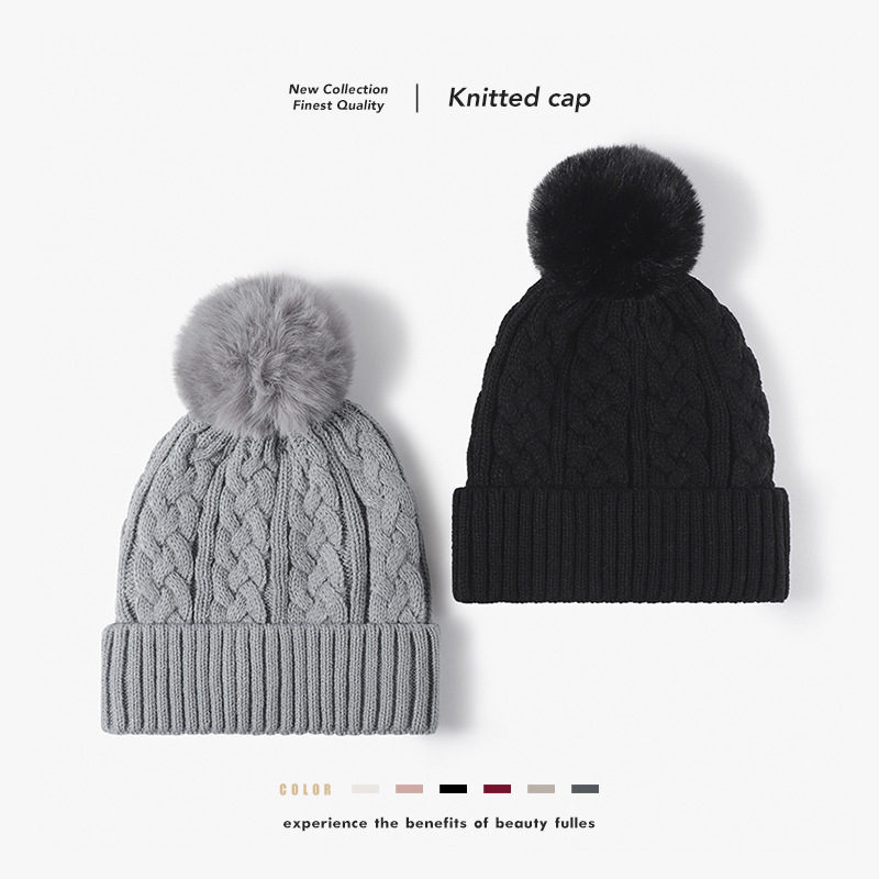 여자 겨울 리브 비너리스 모자 크로스 모자 두꺼운 니트 폼폼 소프트 따뜻한 모자 니트 모자 스키 모자